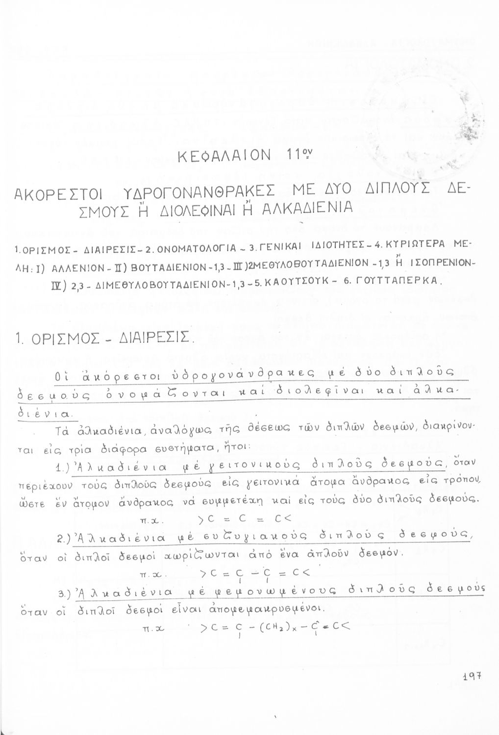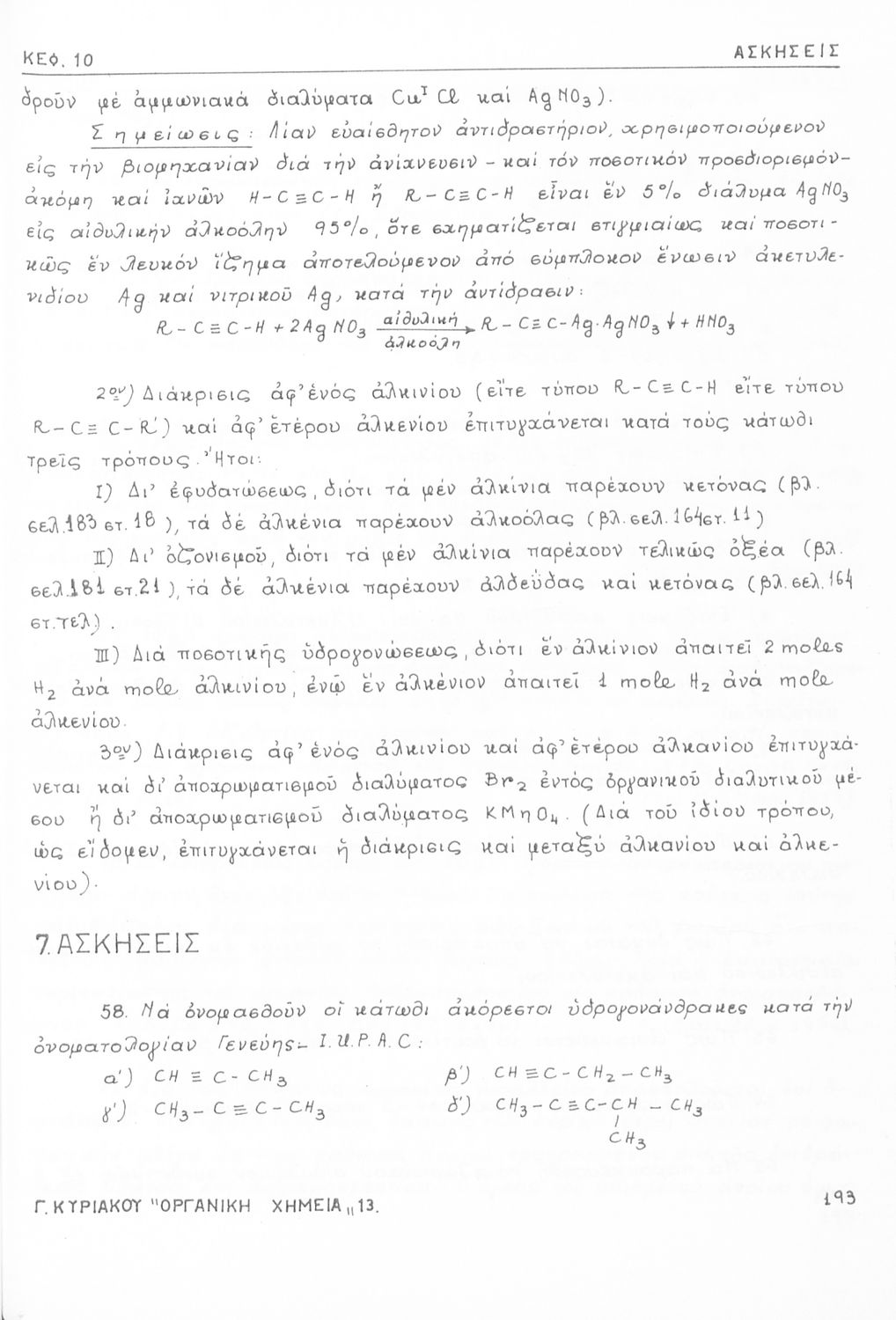 Σχολικό εγχειρίδιο για τις τάξεις του Γυμνασίου και τις Ανώτατες Σχολές για το μάθημα της Χημείας. Το εγχειρίδιο περιλαμβάνει εισαγωγικά γενικές γνώσεις της οργανικής χημείας, την σύνταξη των οργανικών ενώσεων, τις καύσιμες ύλες, αλκοόλες, υδρογονάνθρακες, αρωματικά οξέα, τα αλκαλοειδή, τα εντομοκτόνα κ.α.