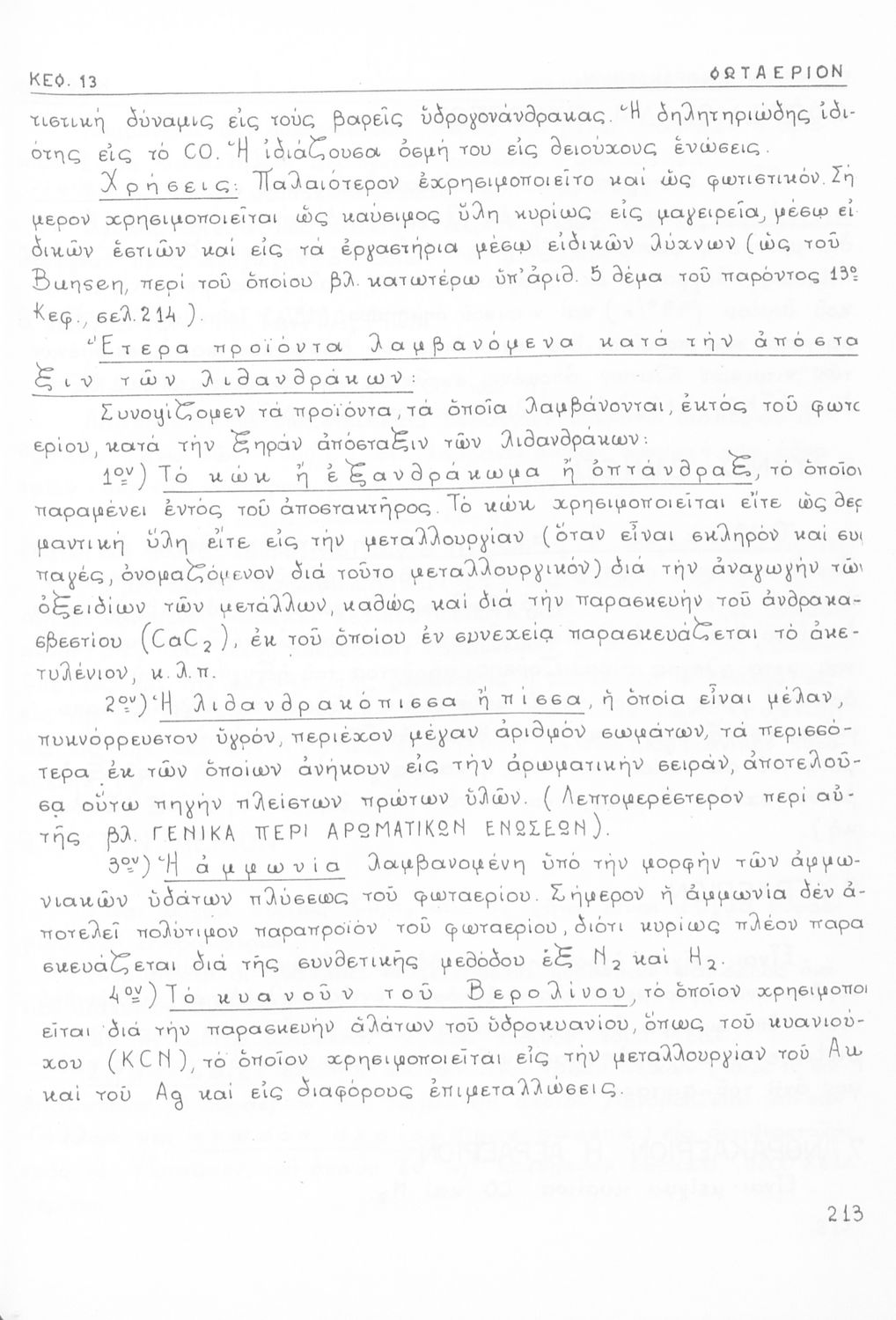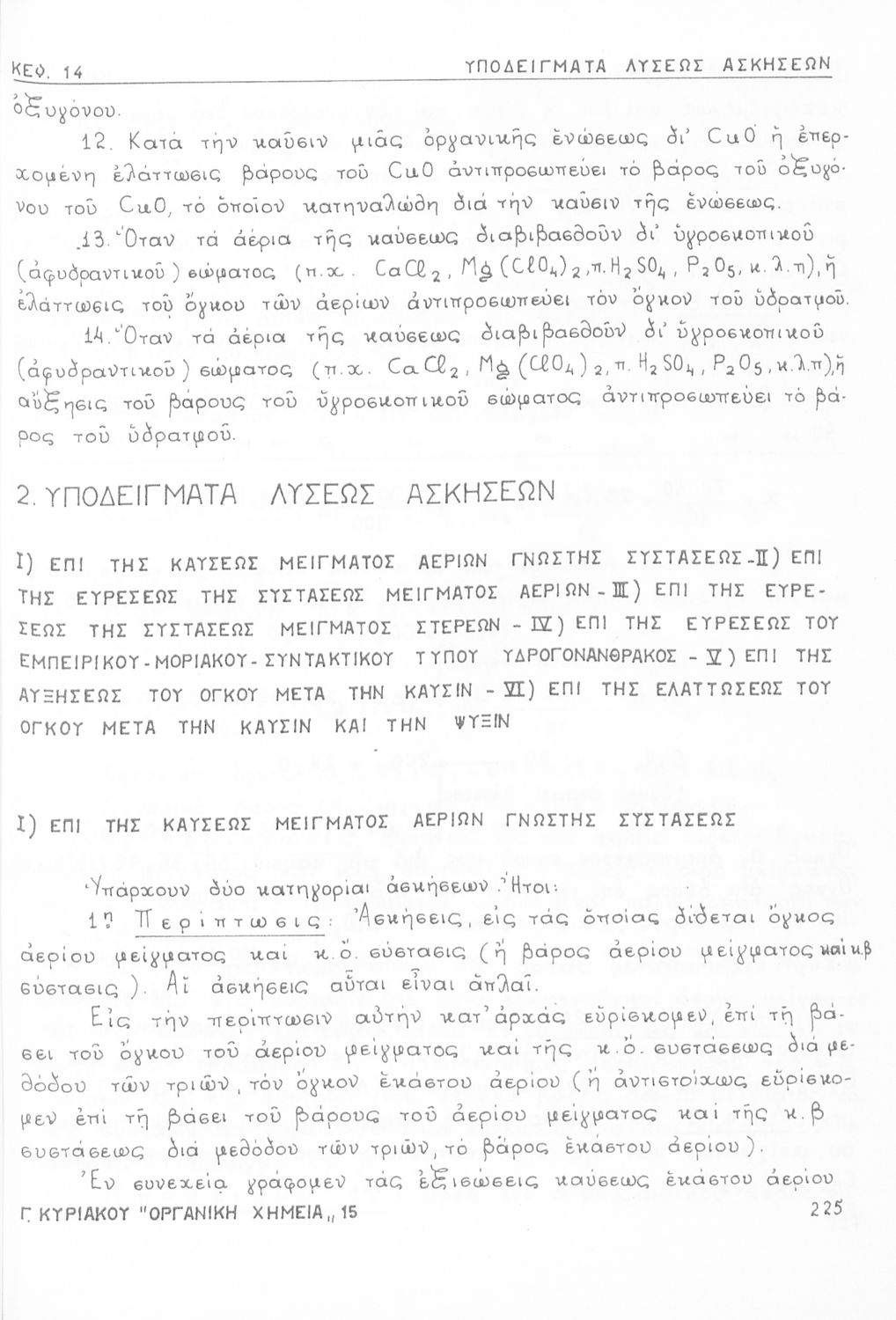 Σχολικό εγχειρίδιο για τις τάξεις του Γυμνασίου και τις Ανώτατες Σχολές για το μάθημα της Χημείας. Το εγχειρίδιο περιλαμβάνει εισαγωγικά γενικές γνώσεις της οργανικής χημείας, την σύνταξη των οργανικών ενώσεων, τις καύσιμες ύλες, αλκοόλες, υδρογονάνθρακες, αρωματικά οξέα, τα αλκαλοειδή, τα εντομοκτόνα κ.α.