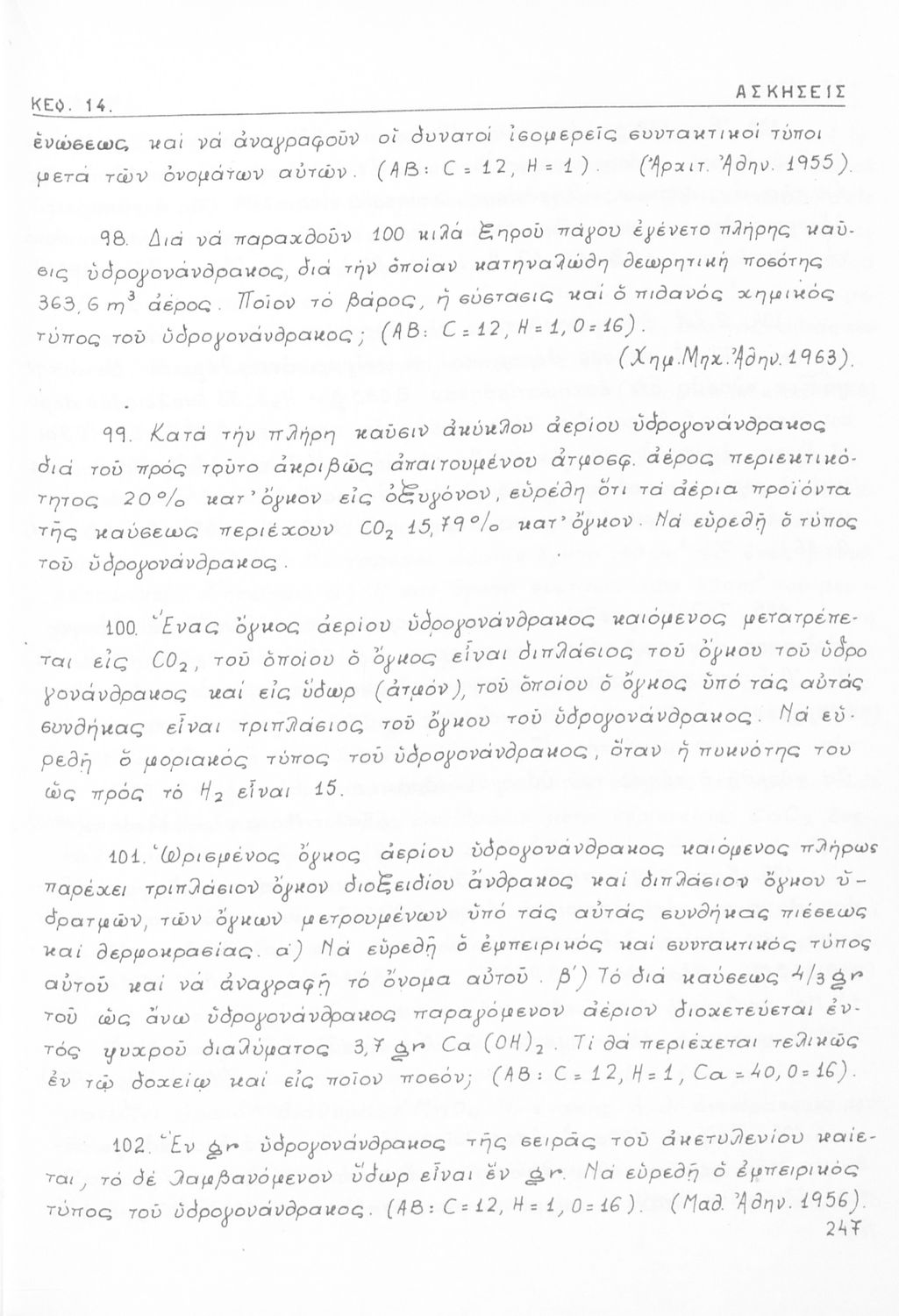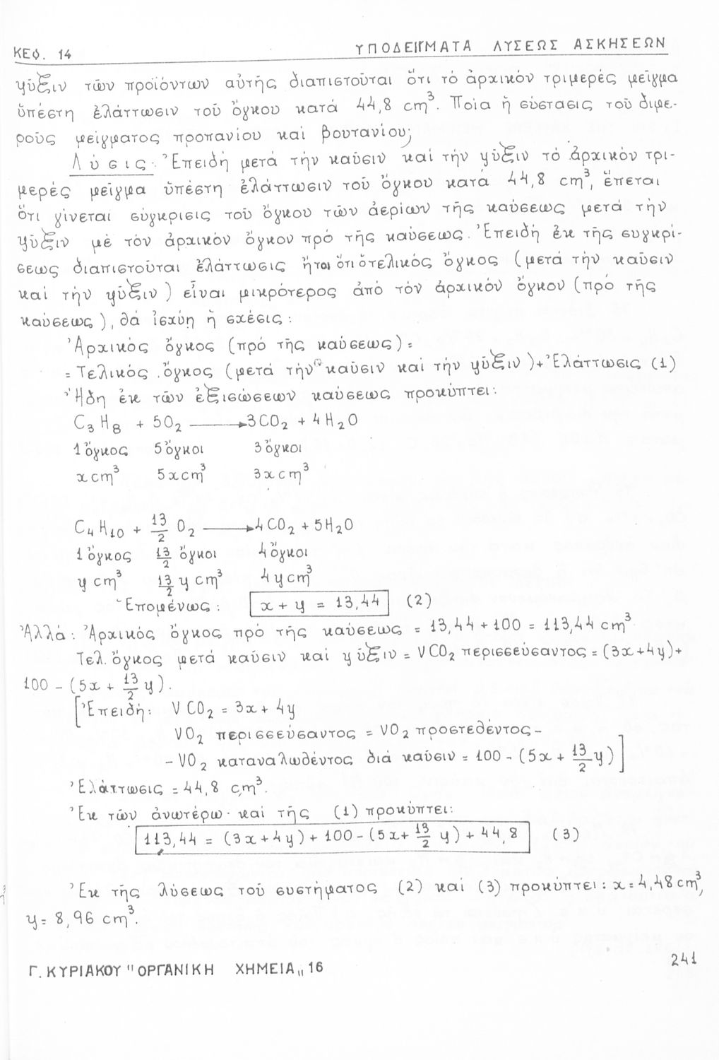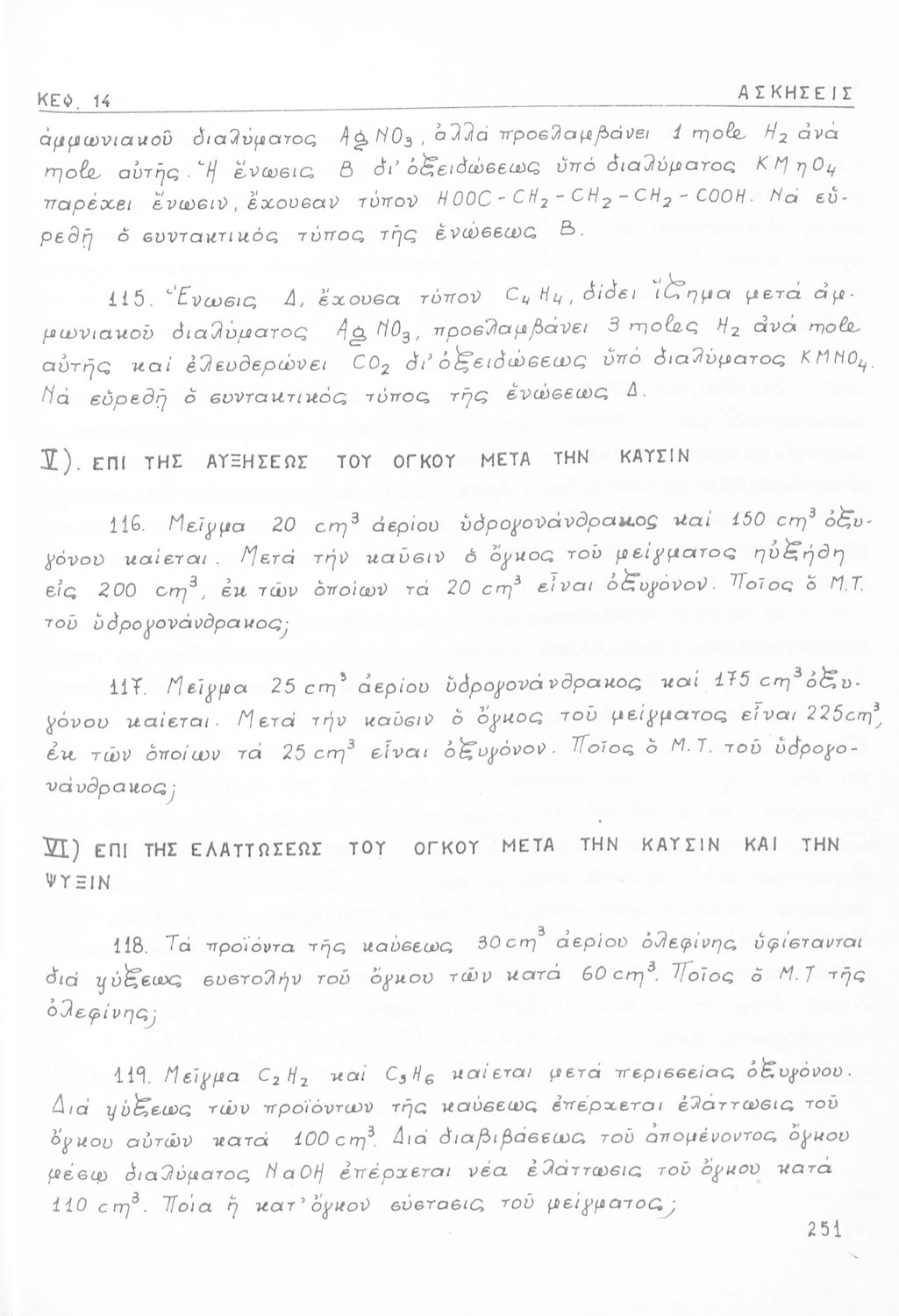 Σχολικό εγχειρίδιο για τις τάξεις του Γυμνασίου και τις Ανώτατες Σχολές για το μάθημα της Χημείας. Το εγχειρίδιο περιλαμβάνει εισαγωγικά γενικές γνώσεις της οργανικής χημείας, την σύνταξη των οργανικών ενώσεων, τις καύσιμες ύλες, αλκοόλες, υδρογονάνθρακες, αρωματικά οξέα, τα αλκαλοειδή, τα εντομοκτόνα κ.α.