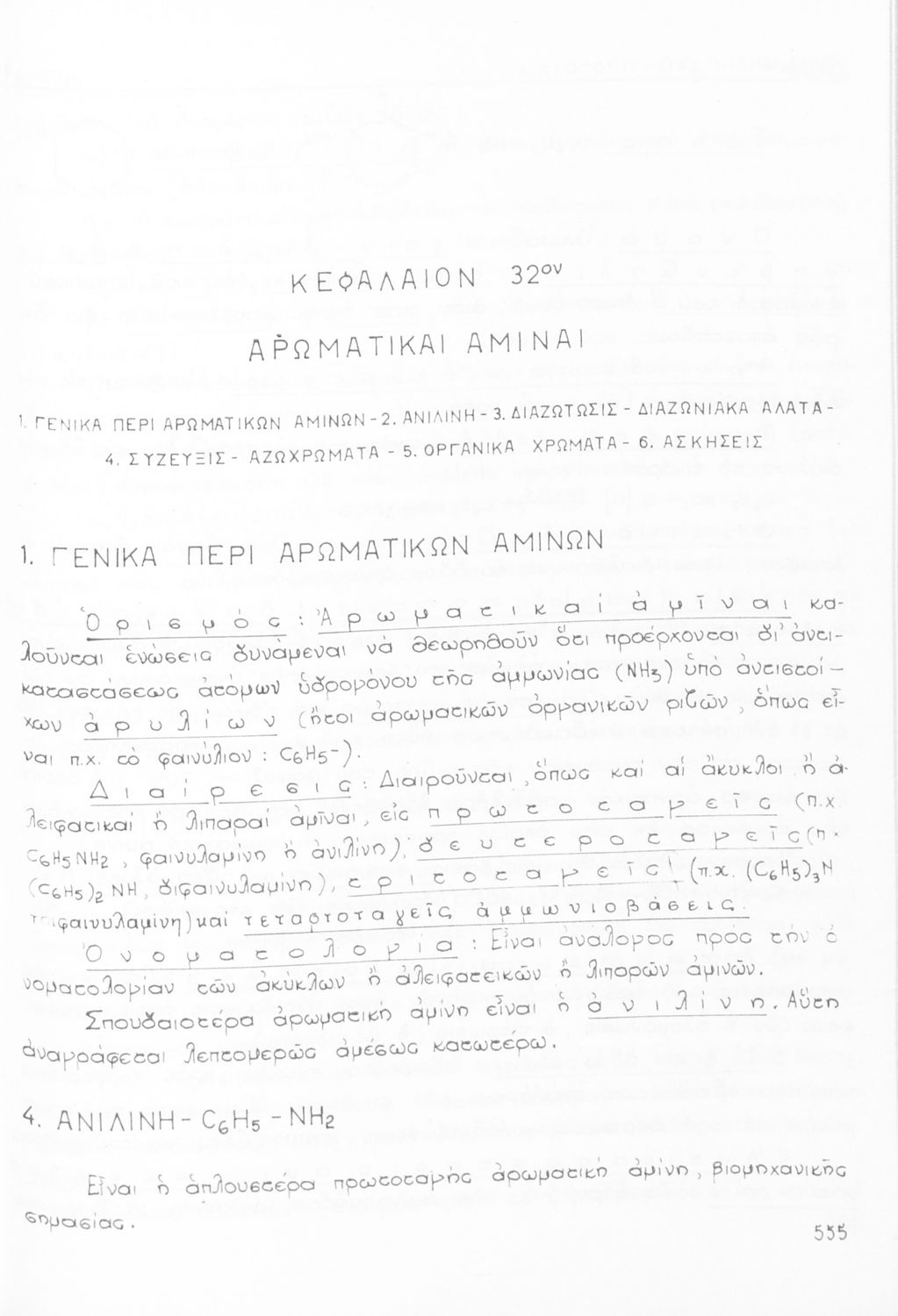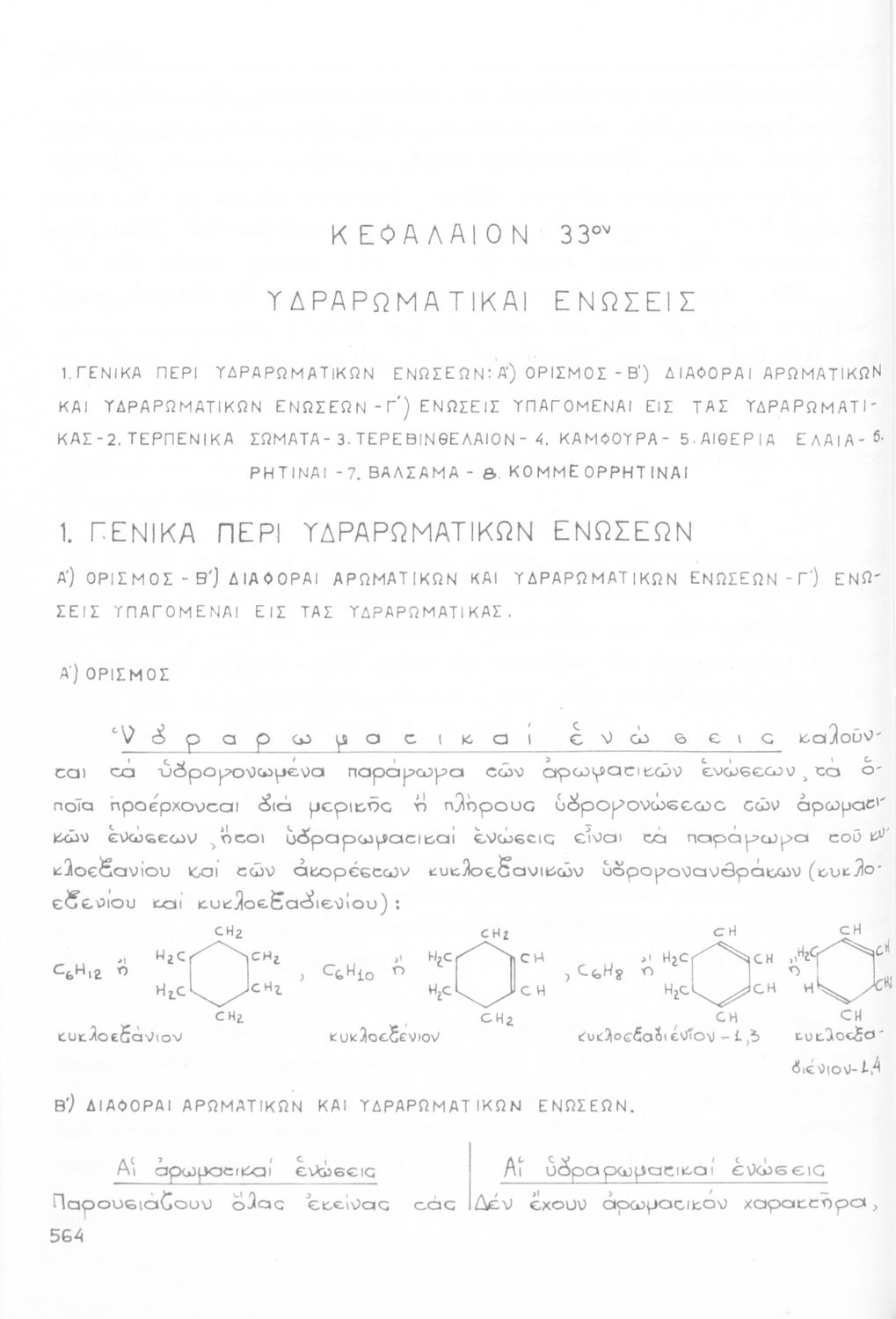 Σχολικό εγχειρίδιο Χημείας που περιγράφει τη σειρά οργανικών και λιπαρών ενώσεων, προσδιορίζονται οικογένειες και ιδιότητες οξέων-βάσεων-αλάτων καθώς γίνεται αναλυτική περιγραφή αρωματικών ενώσεων και των ...