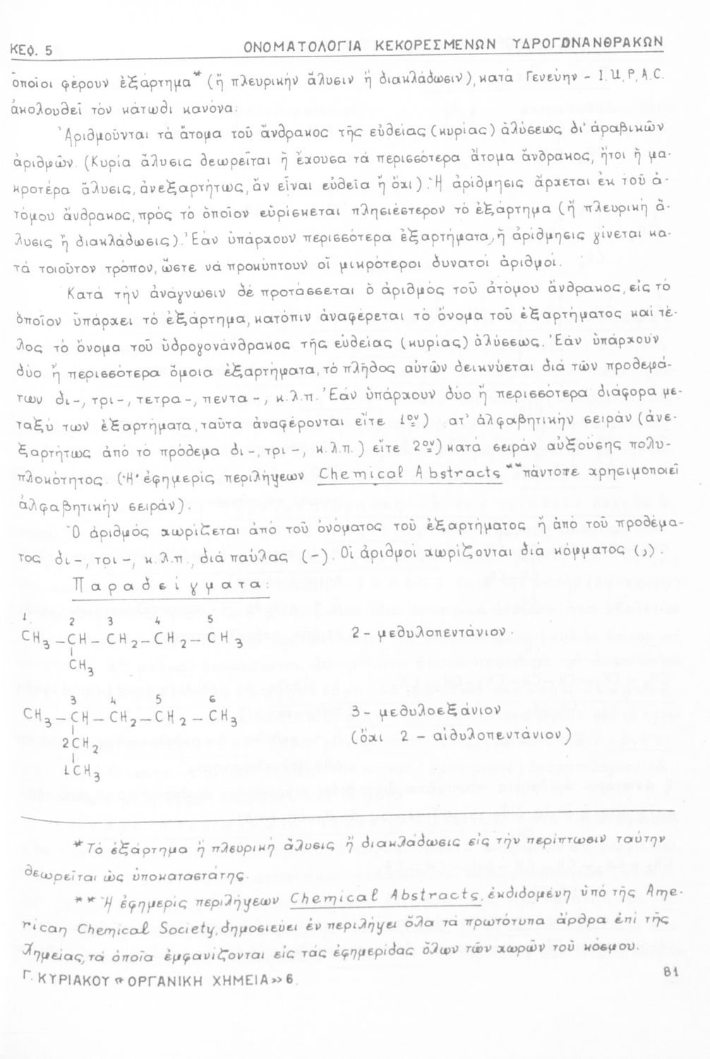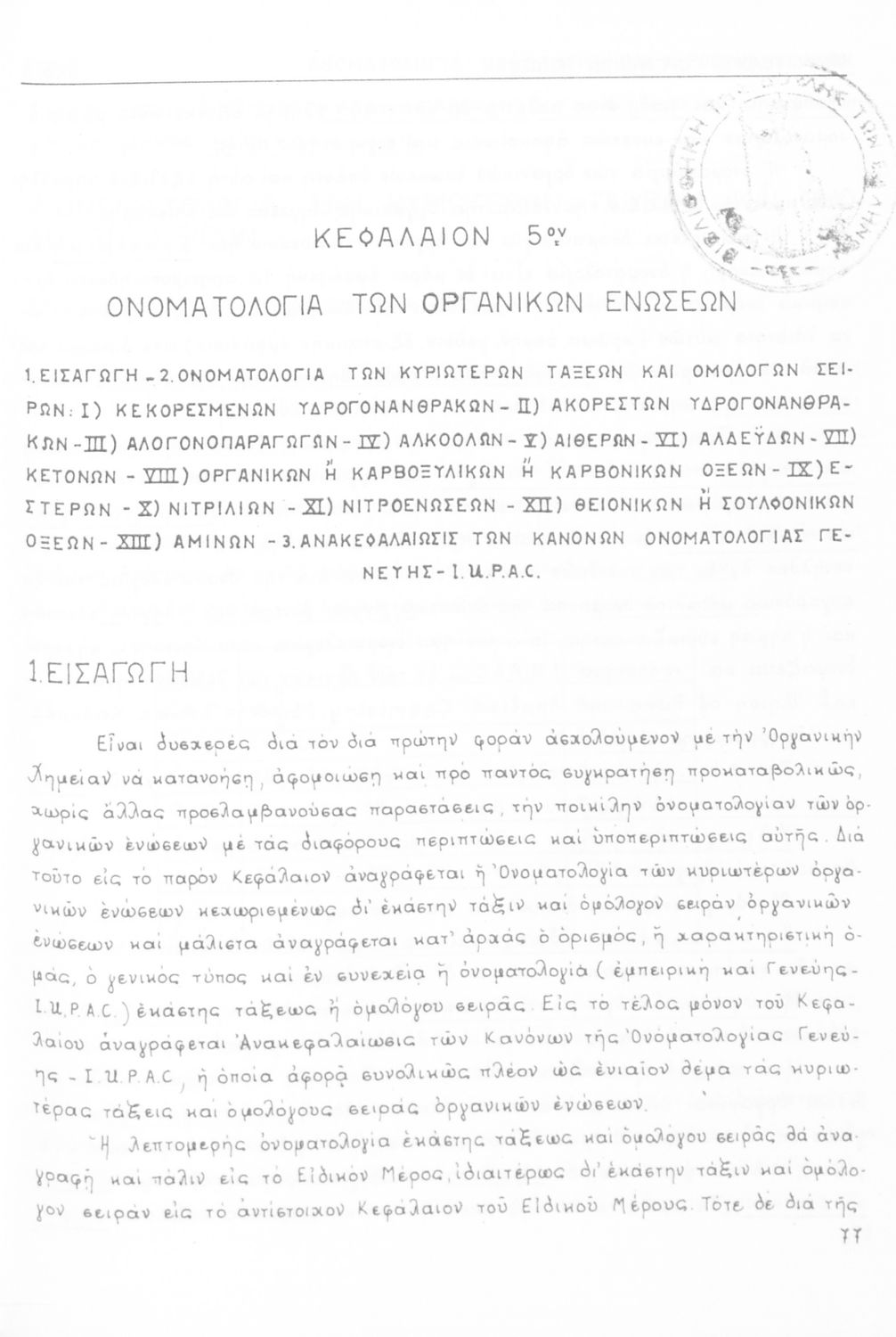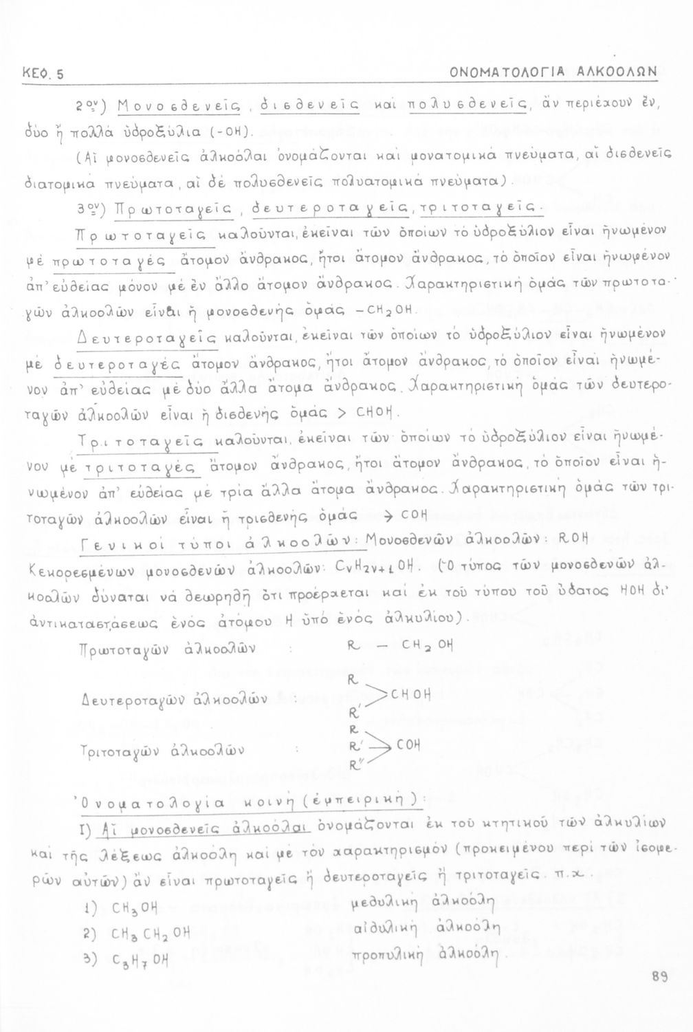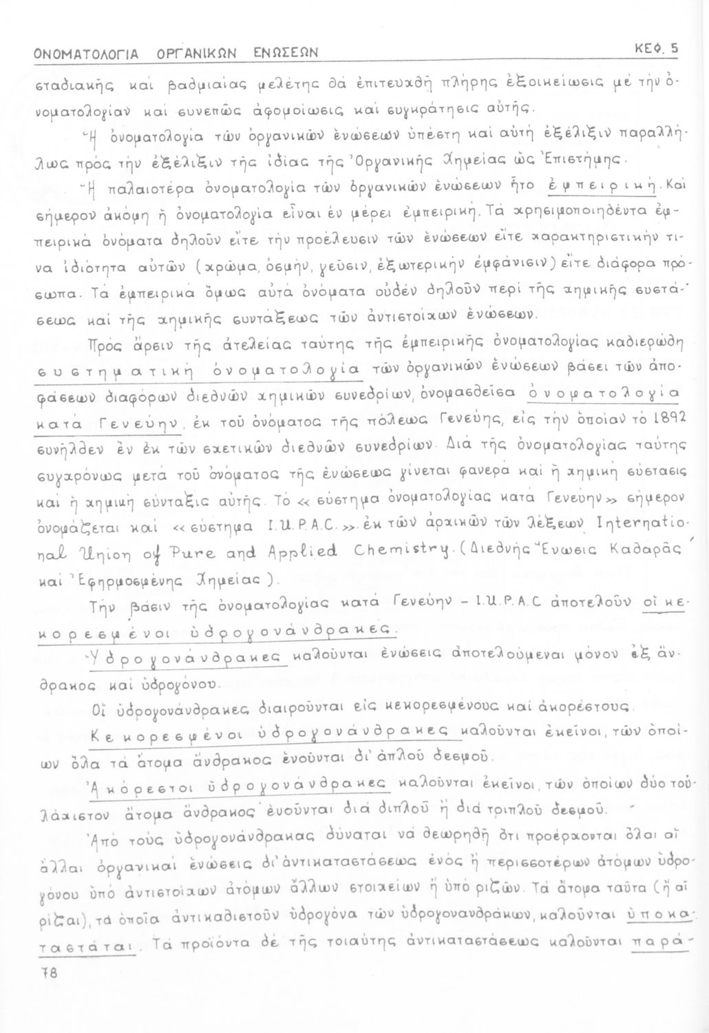 Σχολικό εγχειρίδιο για τις τάξεις του Γυμνασίου και τις Ανώτατες Σχολές για το μάθημα της Χημείας. Το εγχειρίδιο περιλαμβάνει εισαγωγικά γενικές γνώσεις της οργανικής χημείας, την σύνταξη των οργανικών ενώσεων, τις καύσιμες ύλες, αλκοόλες, υδρογονάνθρακες, αρωματικά οξέα, τα αλκαλοειδή, τα εντομοκτόνα κ.α.