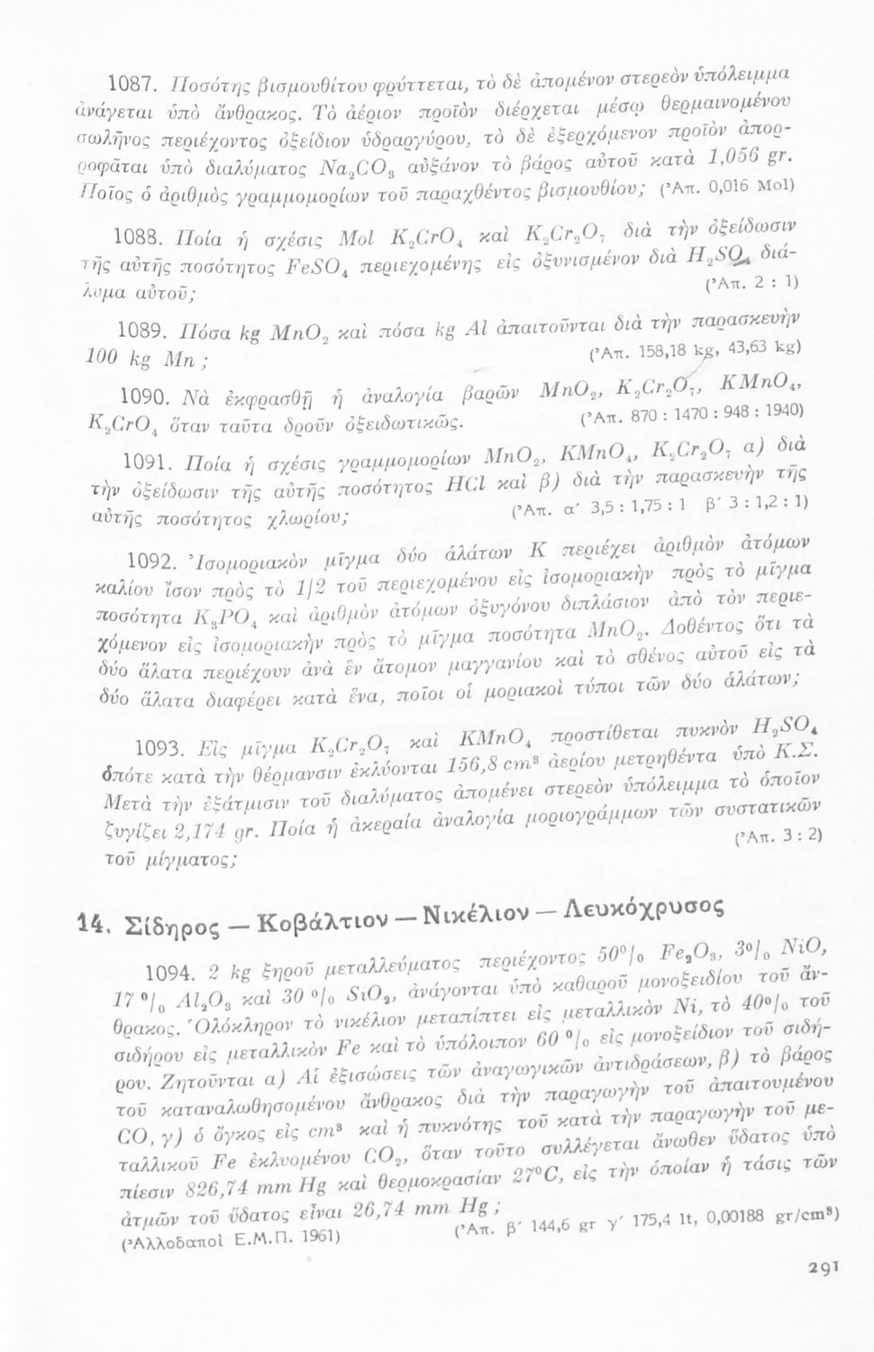 Μαθητικό βοήθημα Χημείας για τους μαθητές των τελευταίων τάξεων του Γυμνασίου και τους υποψηφίους των Ανωτάτων Σχολών που περιέχει ασκήσεις ανόργανης χημείας.