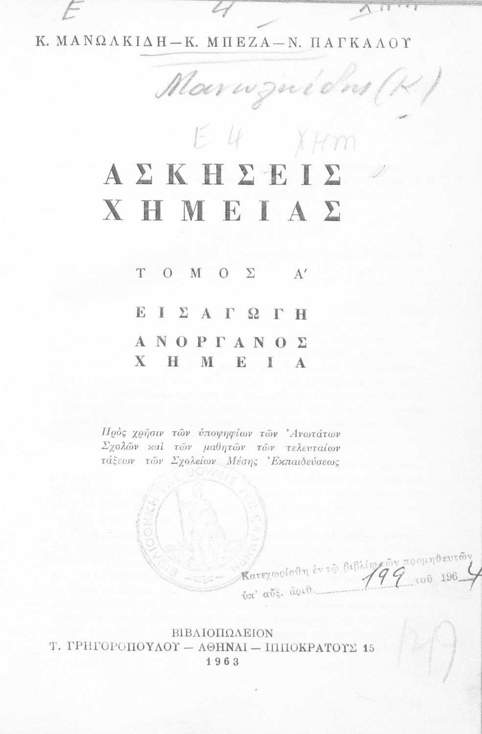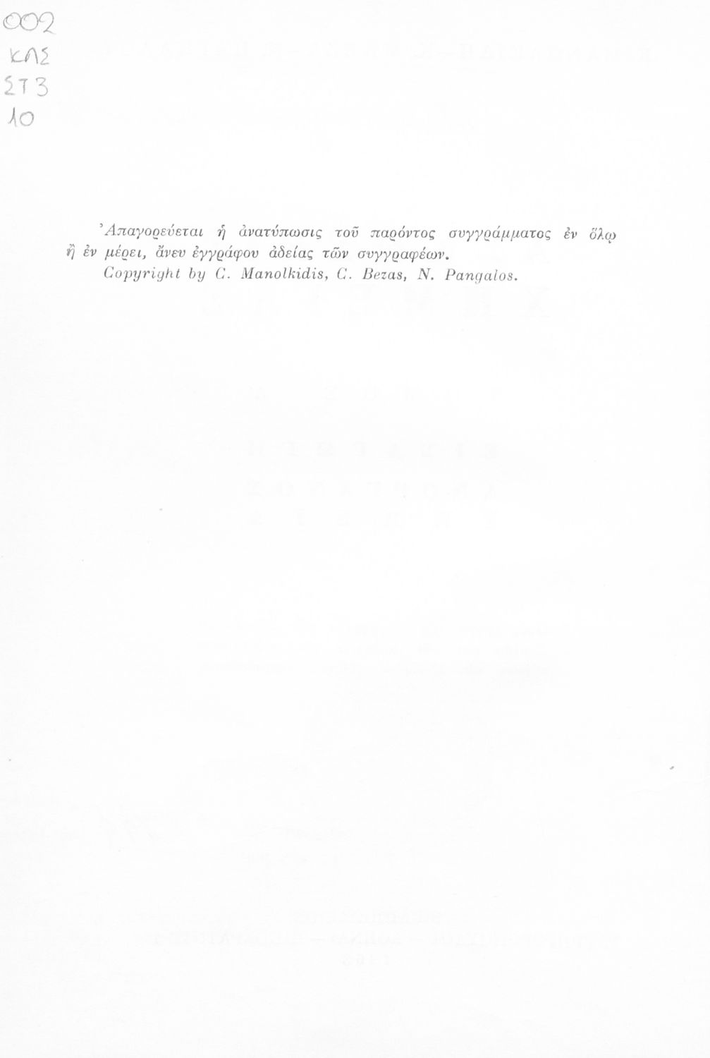Συγγραφέας: Κ. Μανωλκίδης, Κ. Μπέζας, Ν. Πάγκαλος