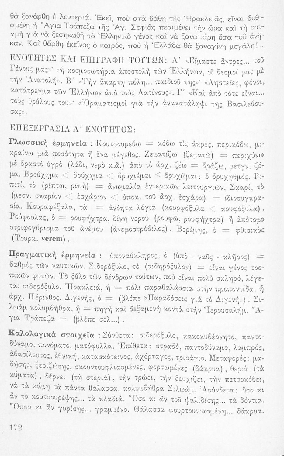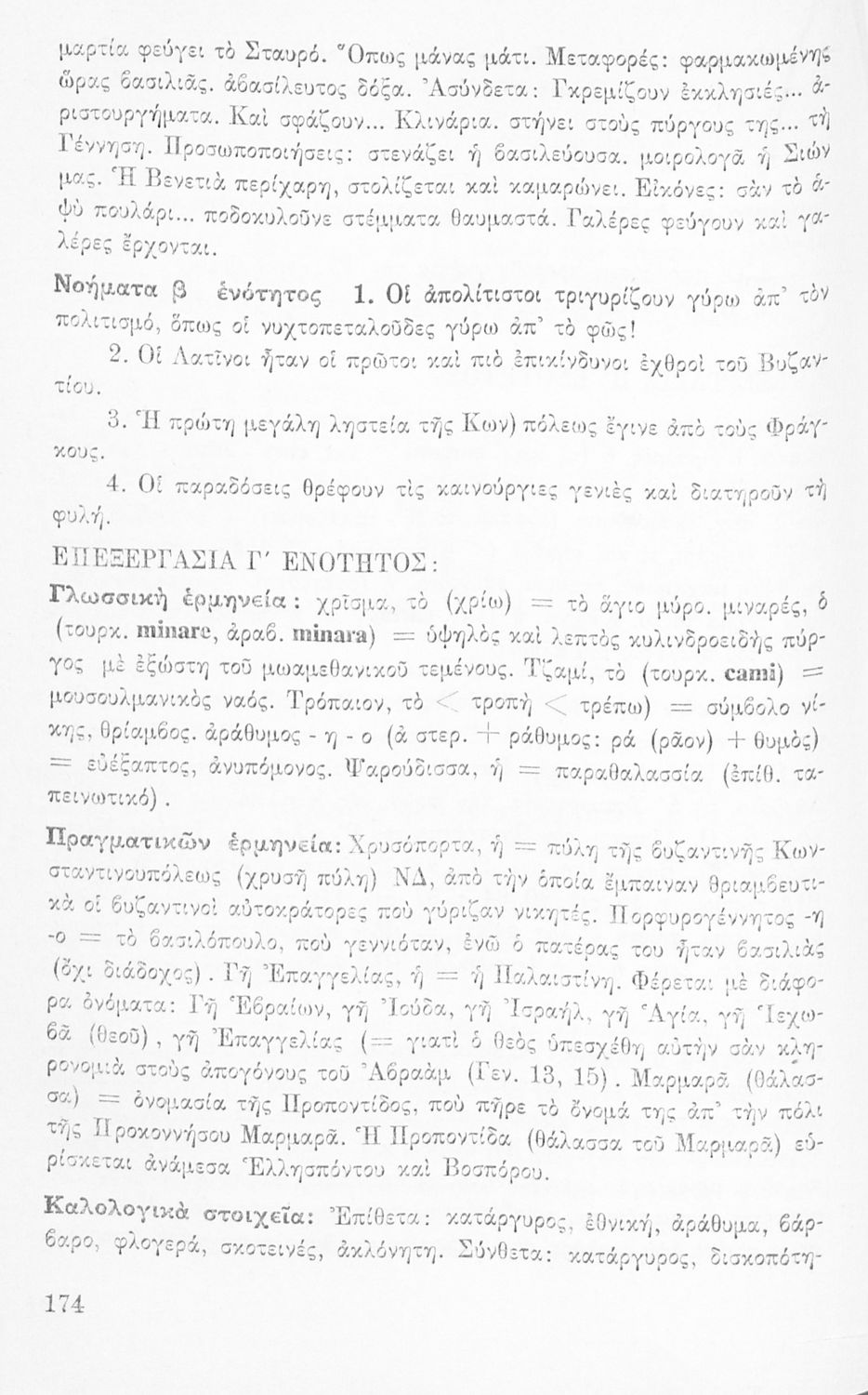 Μαθητικό βοήθημα Νέων Ελληνικών για την Ε΄ και ΣΤ΄ Γυμνασίου που περιλαμβάνει αναλύσεις των κειμένων των αντίστοιχων σχολικών εγχειριδίων από νοηματική, ερμηνευτική και γλωσσική σκοπιά. Περιέχει και βιογραφίες