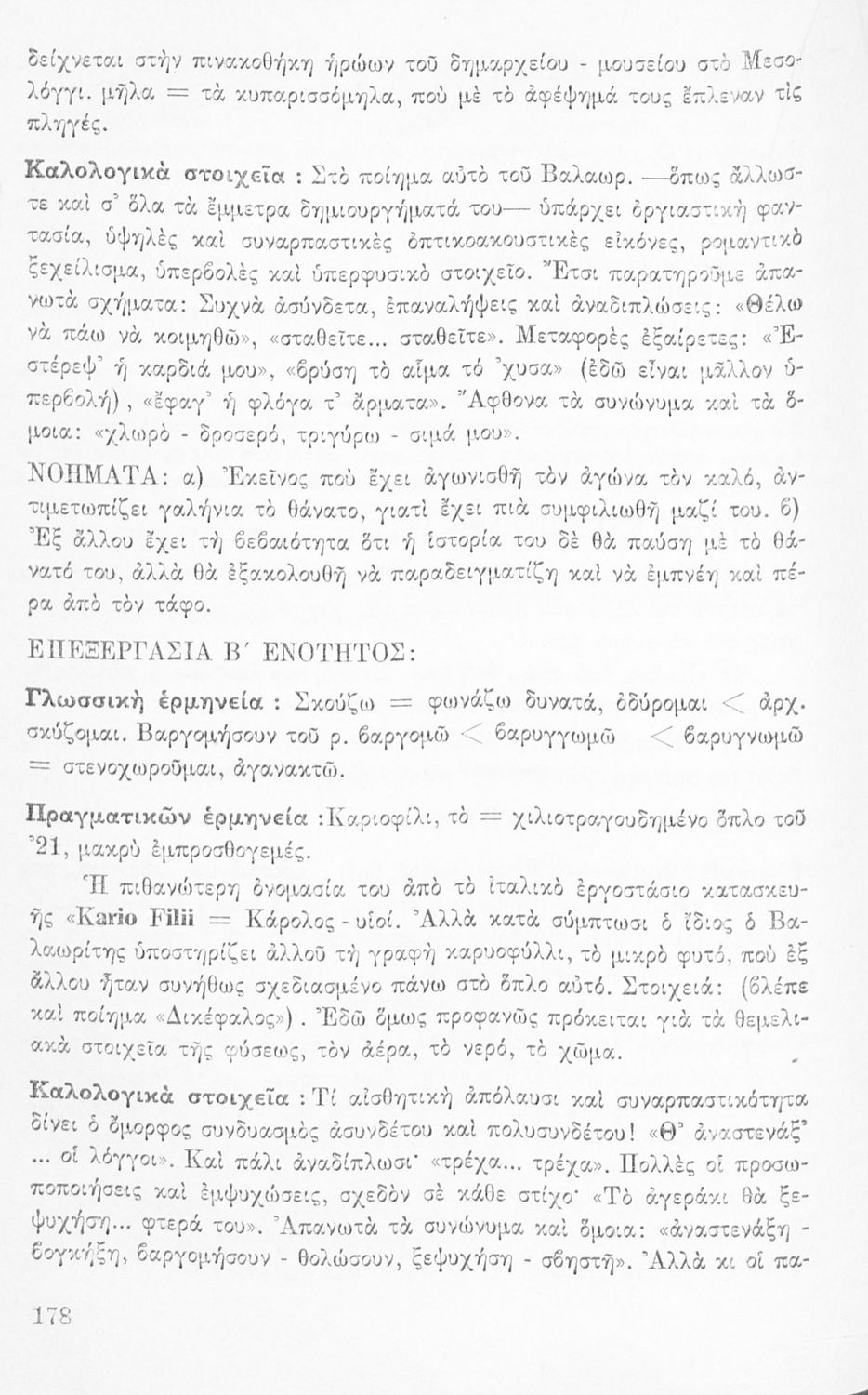 Μαθητικό βοήθημα Νέων Ελληνικών Β' Γυμνασίου που περιλαμβάνει αναλύσεις των κειμένων του αντίστοιχου σχολικού εγχειριδίου από νοηματική, ερμηνευτική και γλωσσική σκοπιά.