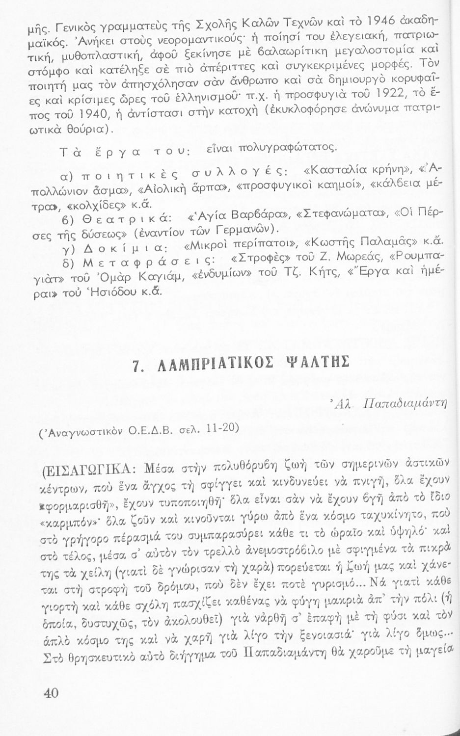Τάξη:  Ε' Εξαταξίου Γυμνασίου παλαιού τύπου / ΣΤ' Εξαταξίου Γυμνασίου νέου τύπου