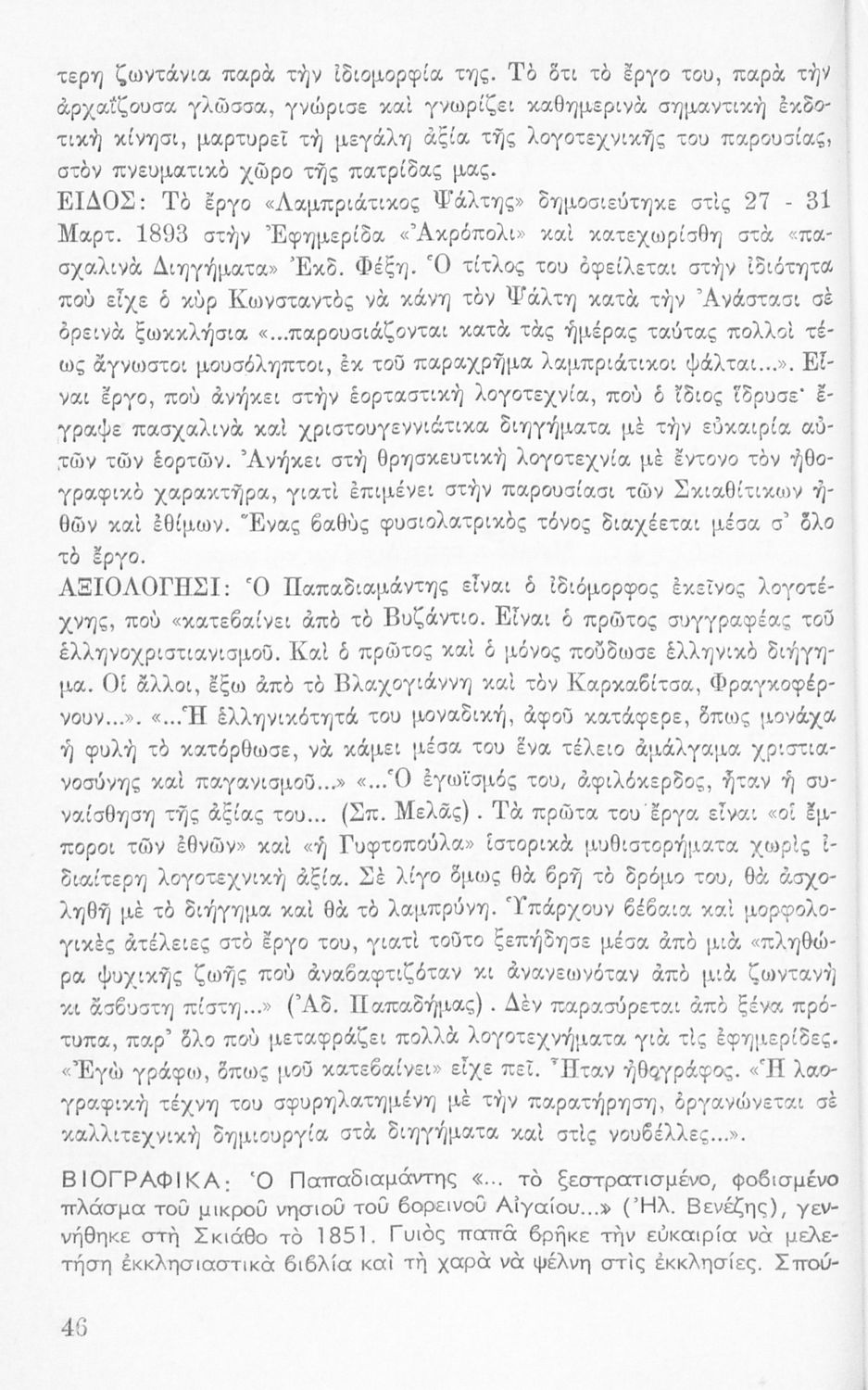 Σχετιζόμενοι όροι:  Παλαμάς, Παπαδιαμάντης, Σολωμός