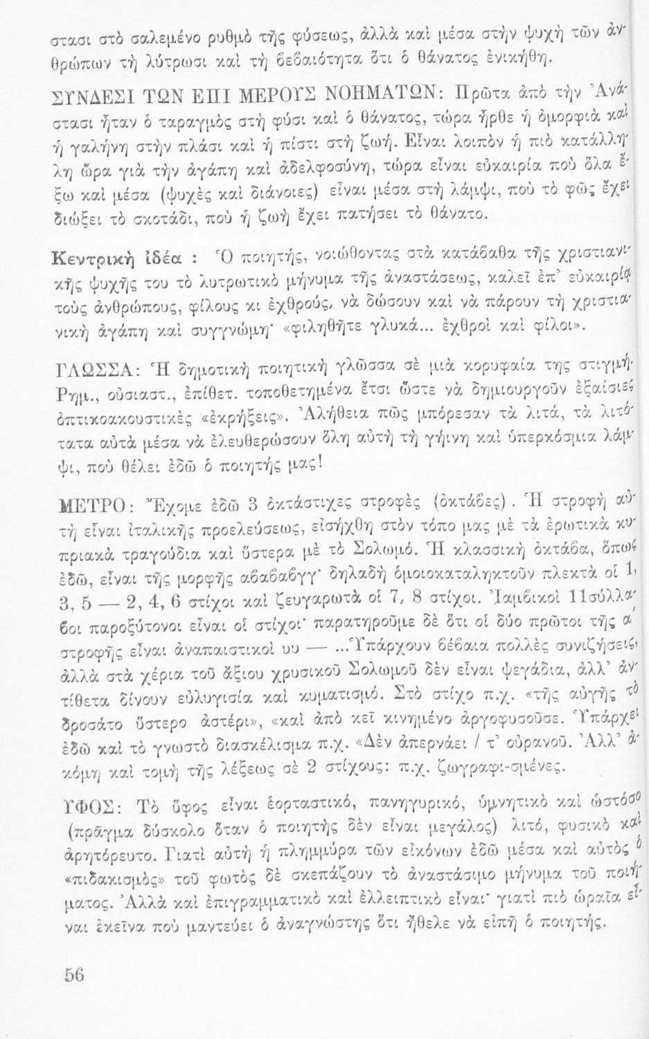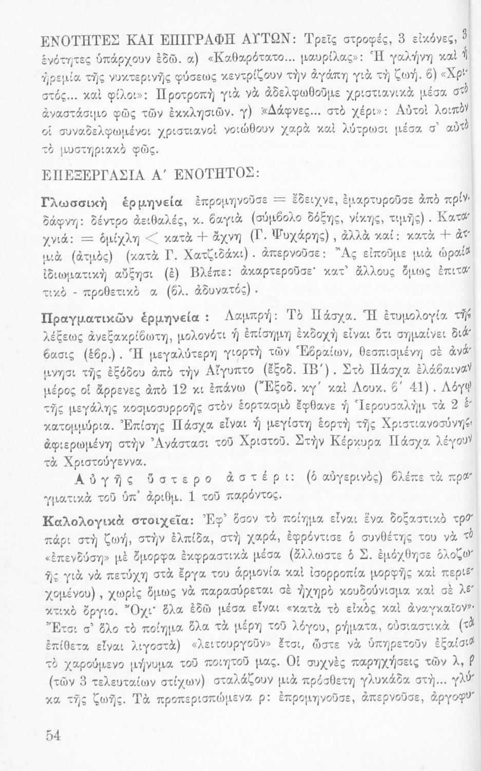 Μαθητικό βοήθημα Νέων Ελληνικών για την Ε΄ και ΣΤ΄ Γυμνασίου που περιλαμβάνει αναλύσεις των κειμένων των αντίστοιχων σχολικών εγχειριδίων από νοηματική, ερμηνευτική και γλωσσική σκοπιά. Περιέχει και βιογραφίες