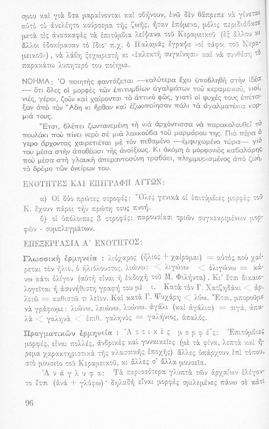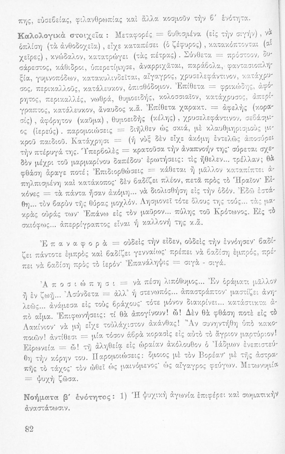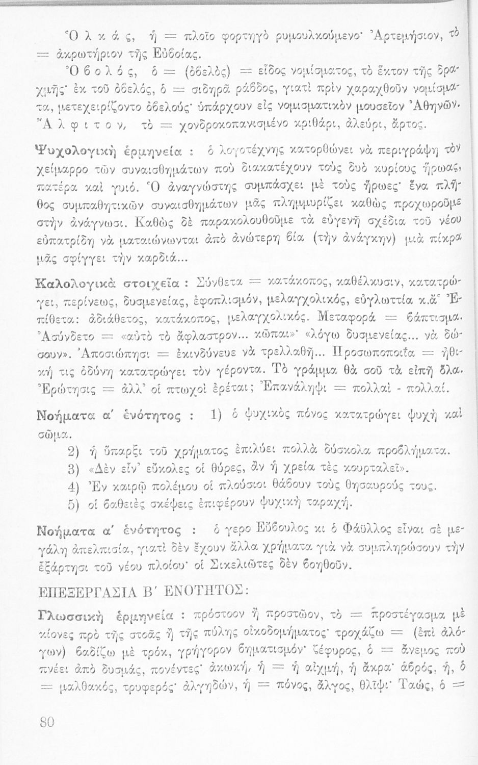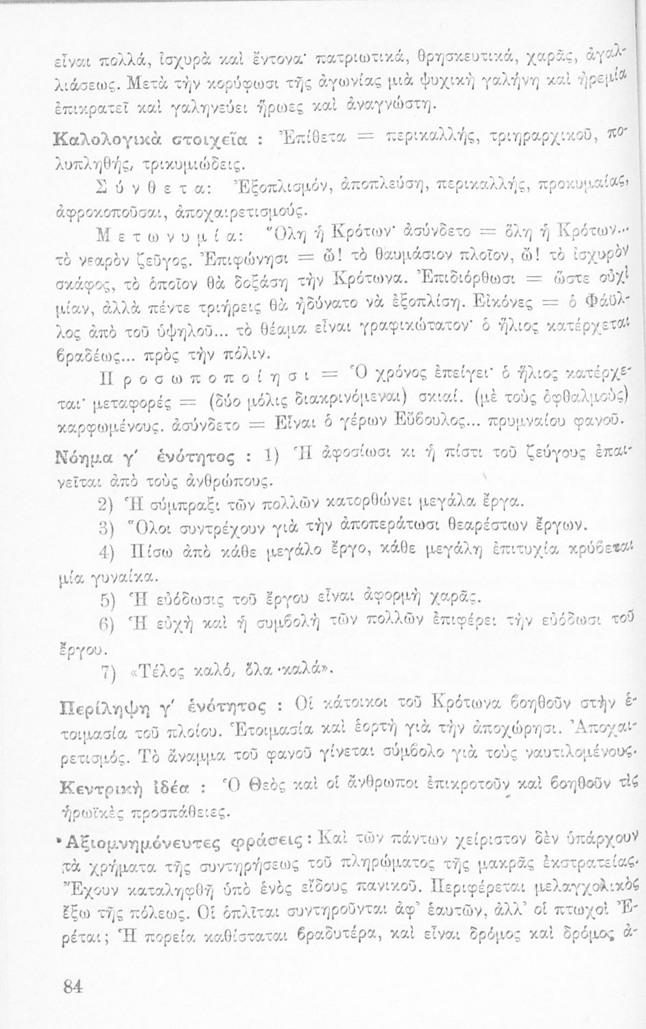 Μαθητικό βοήθημα Νέων Ελληνικών για την Ε΄ και ΣΤ΄ Γυμνασίου που περιλαμβάνει αναλύσεις των κειμένων των αντίστοιχων σχολικών εγχειριδίων από νοηματική, ερμηνευτική και γλωσσική σκοπιά. Περιέχει και βιογραφίες