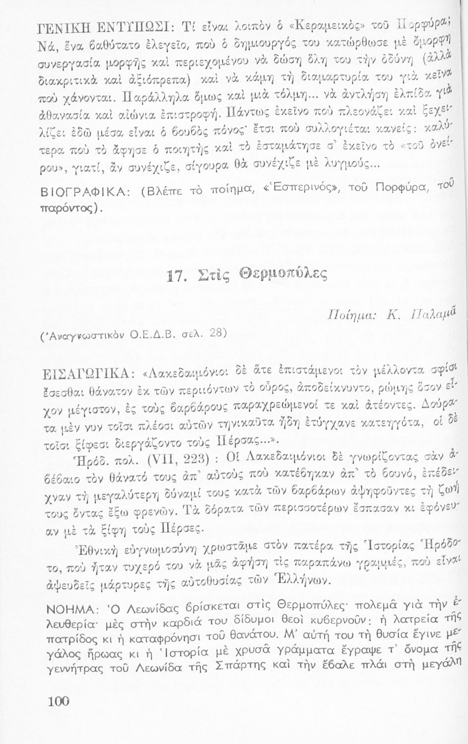 Τάξη:  Ε' Εξαταξίου Γυμνασίου παλαιού τύπου / ΣΤ' Εξαταξίου Γυμνασίου νέου τύπου
