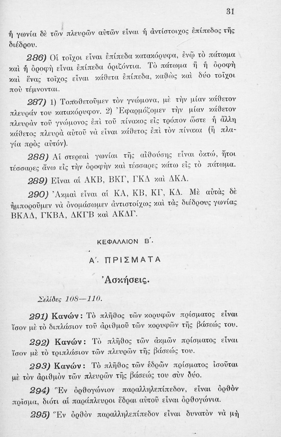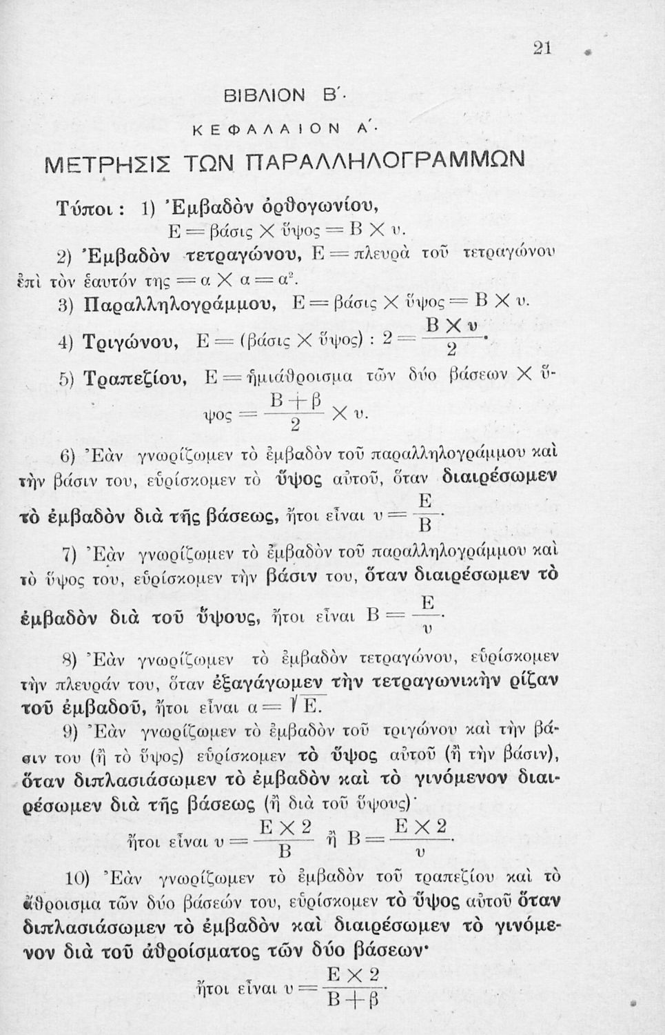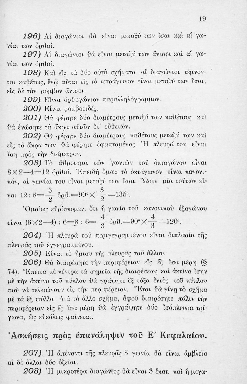 Σχολικό εγχειρίδιο Γεωμετρίας για τις Α΄, Β΄, Γ΄ Γυμνασίου που είναι χωρισμένο σε Επιπεδομετρία και Στερεομετρία και περιλαμβάνει θεωρία και ασκήσεις.
