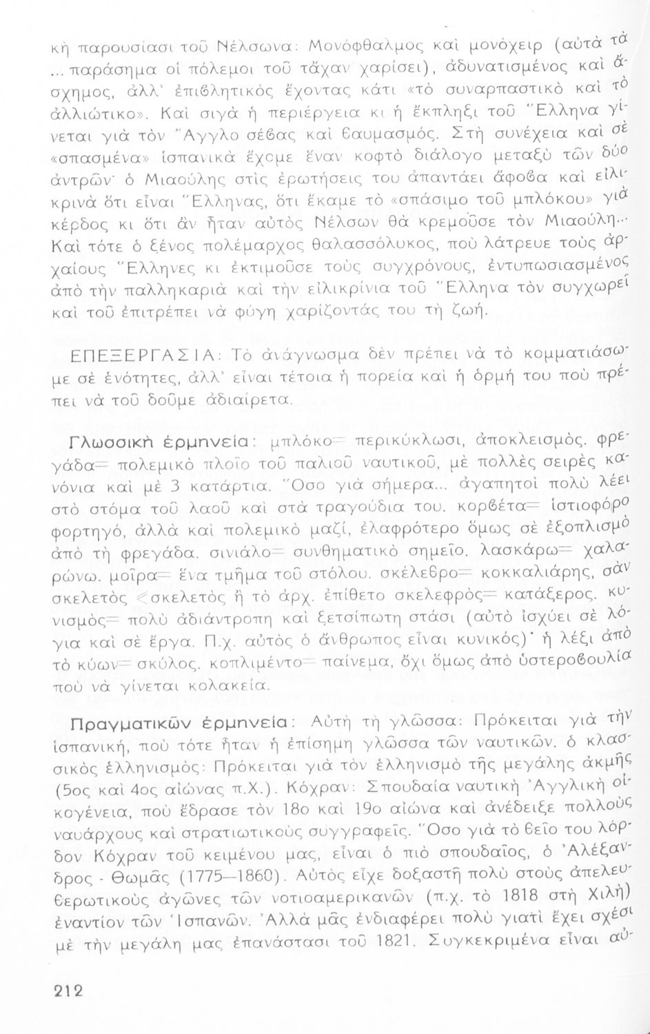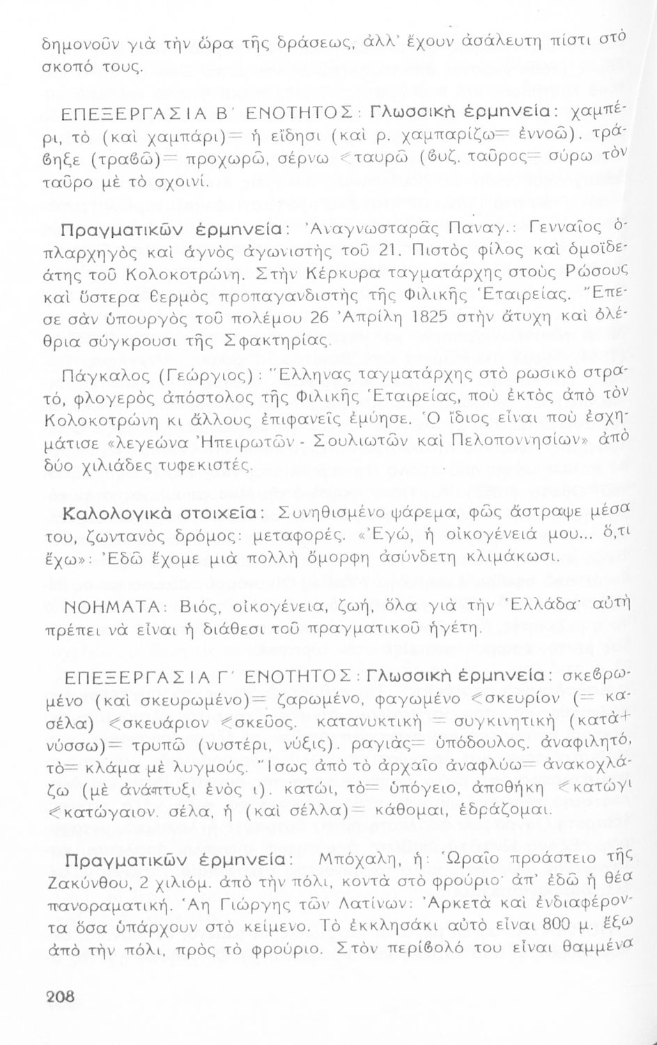Μαθητικό βοήθημα Νέων Ελληνικών για την Ε΄ και ΣΤ΄ Γυμνασίου που περιλαμβάνει αναλύσεις των κειμένων των αντίστοιχων σχολικών εγχειριδίων από νοηματική, ερμηνευτική και γλωσσική σκοπιά. Περιέχει και βιογραφίες