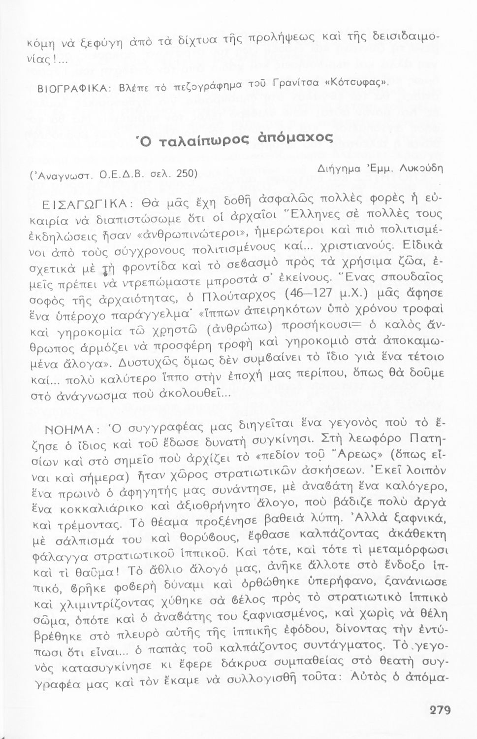 Τάξη:  Ε' Εξαταξίου Γυμνασίου παλαιού τύπου / ΣΤ' Εξαταξίου Γυμνασίου νέου τύπου