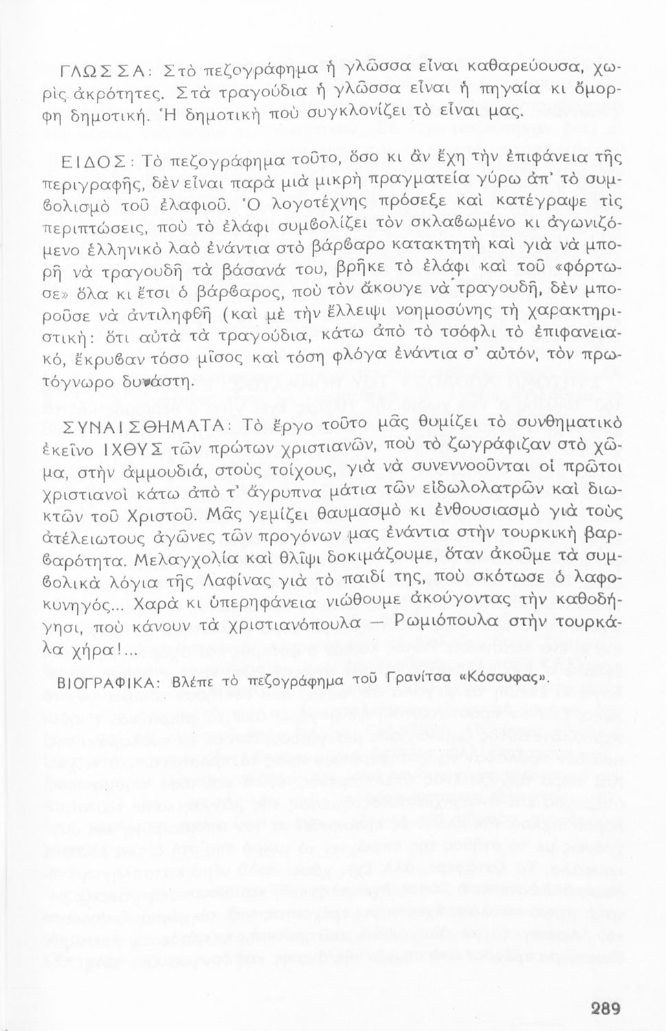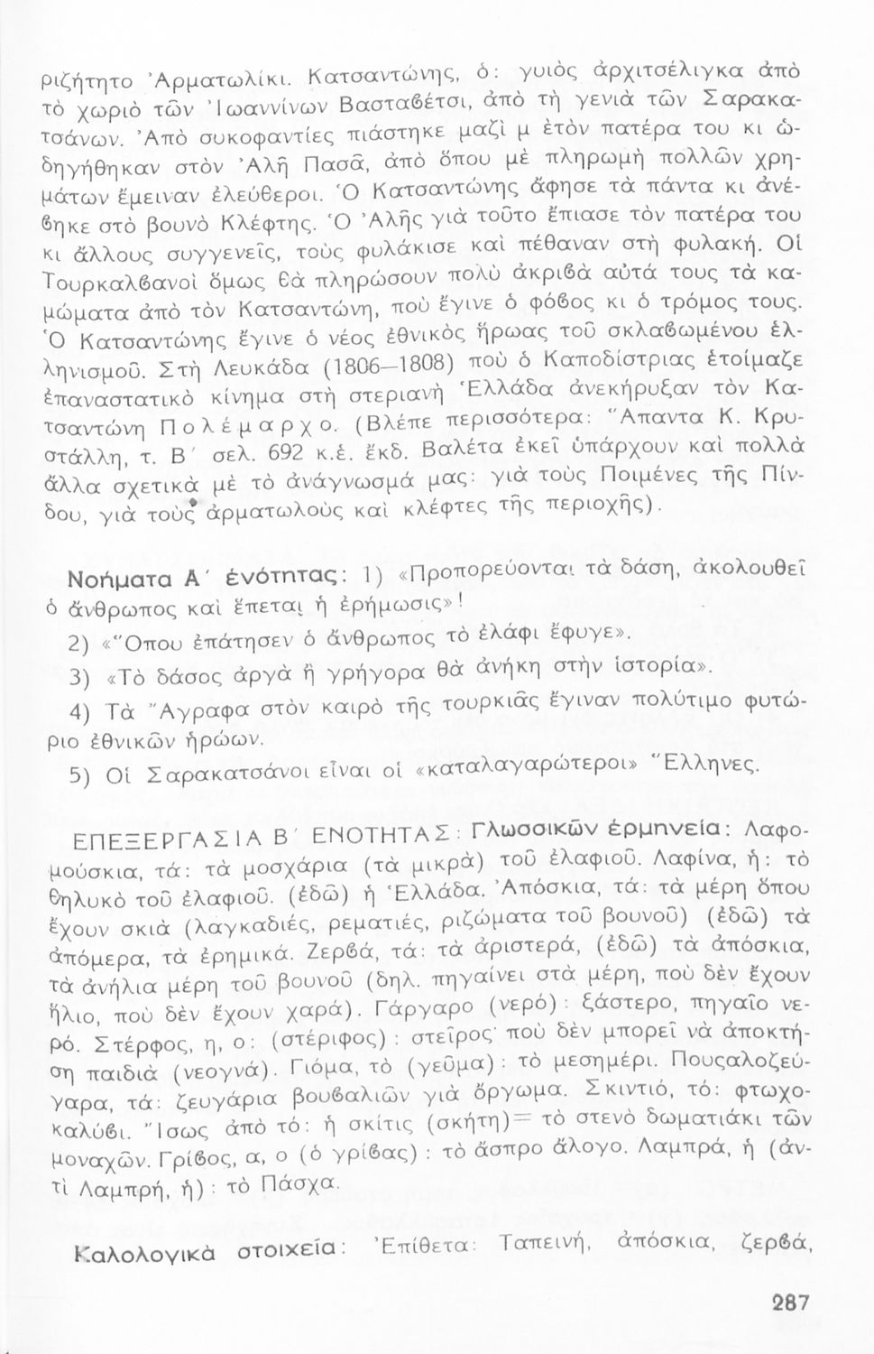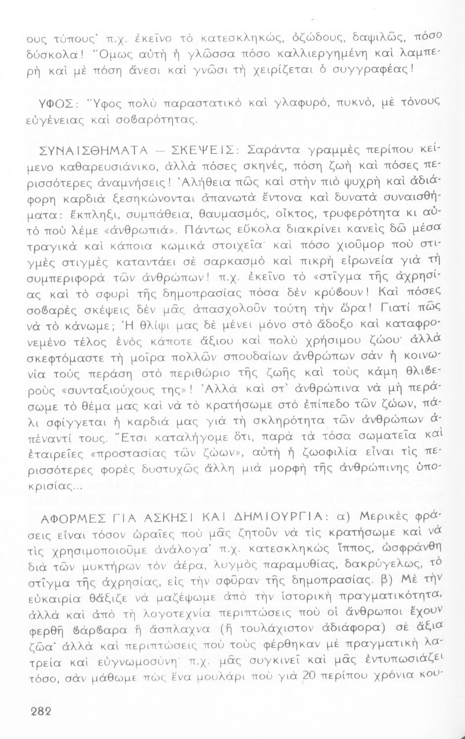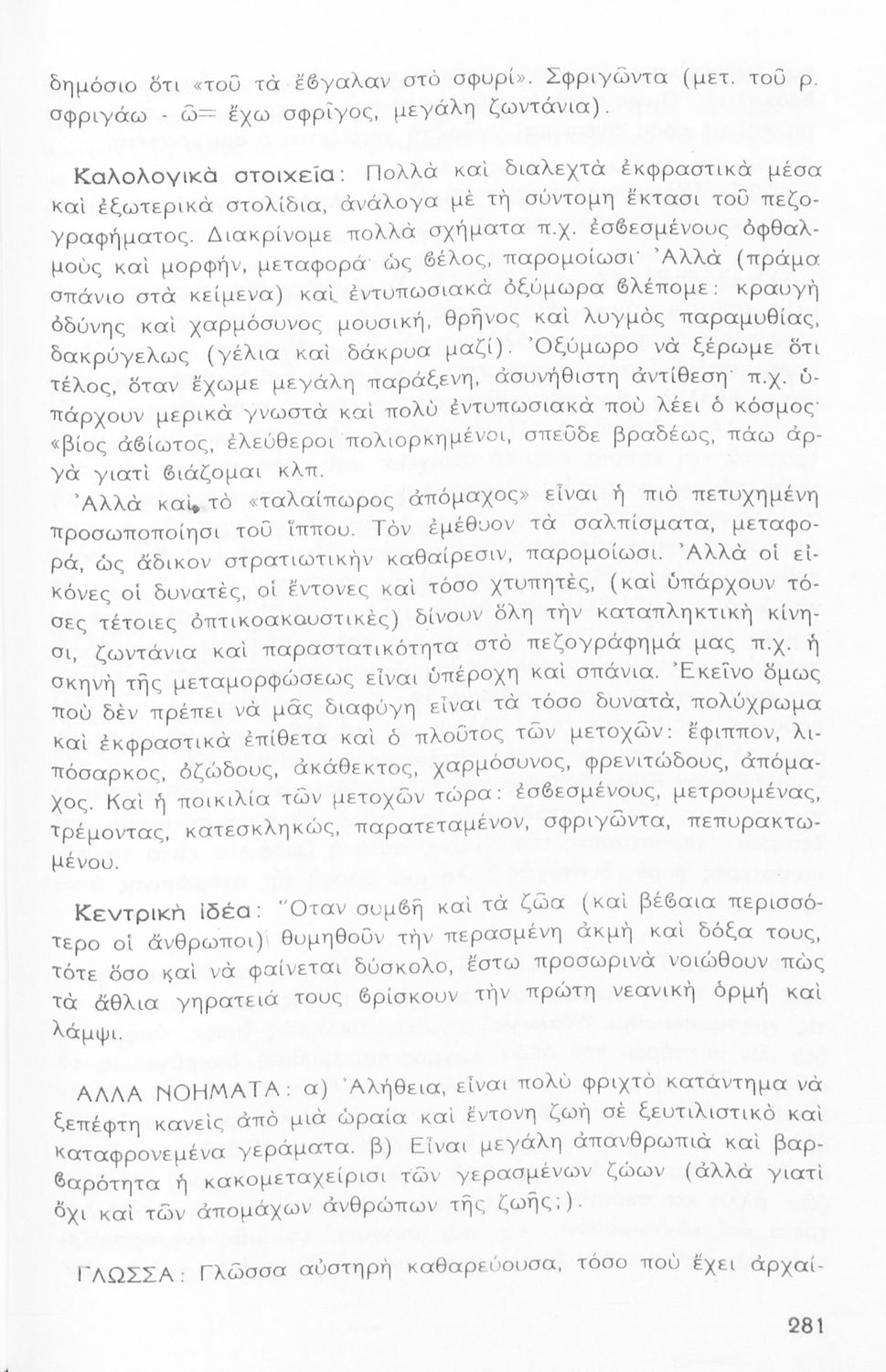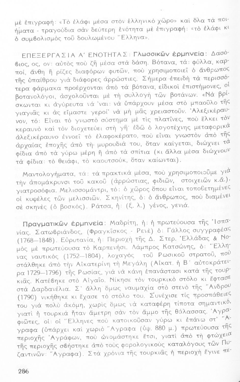 Μαθητικό βοήθημα Νέων Ελληνικών για την Ε΄ και ΣΤ΄ Γυμνασίου που περιλαμβάνει αναλύσεις των κειμένων των αντίστοιχων σχολικών εγχειριδίων από νοηματική, ερμηνευτική και γλωσσική σκοπιά. Περιέχει και βιογραφίες