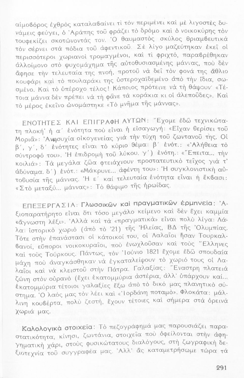 Γλώσσα: Δημοτική με στοιχεία καθαρεύουσας