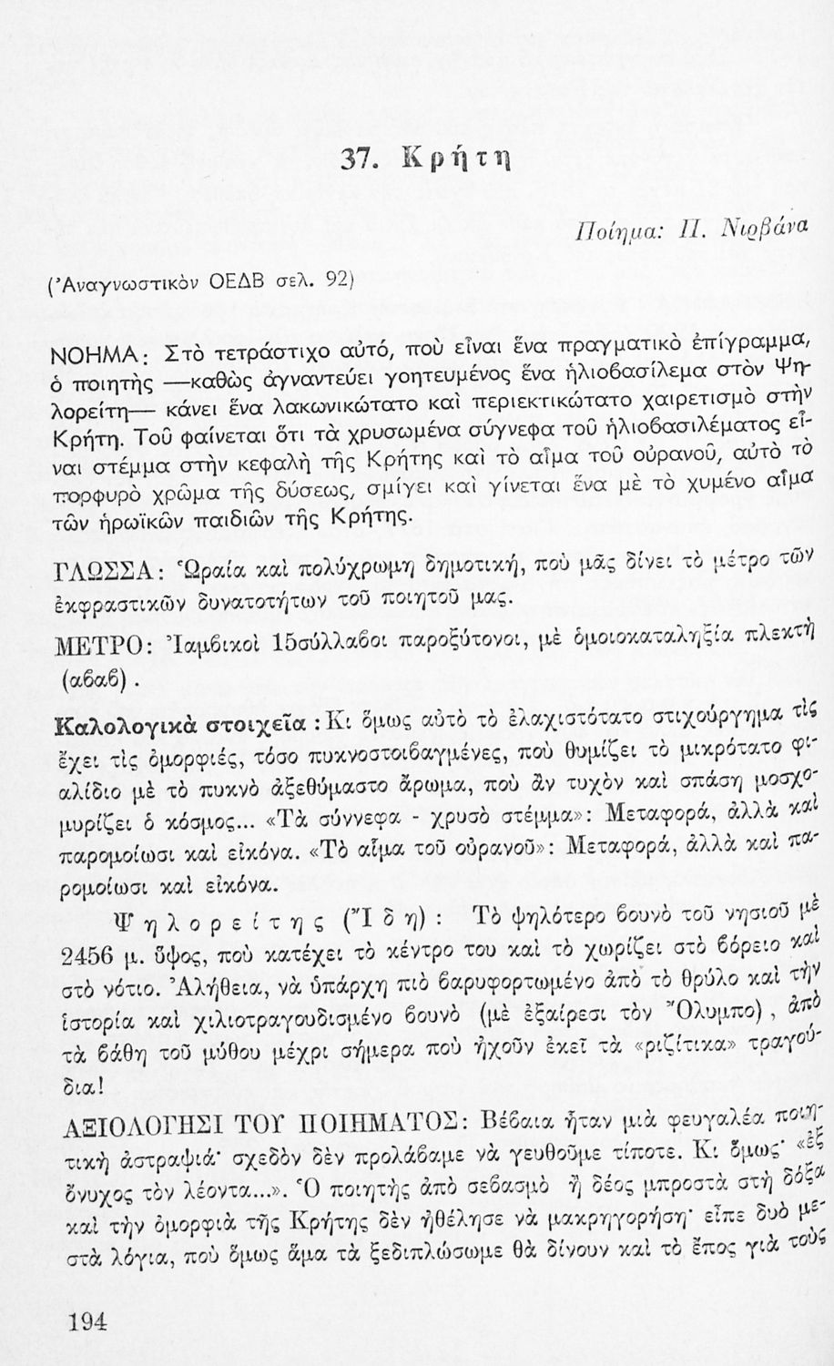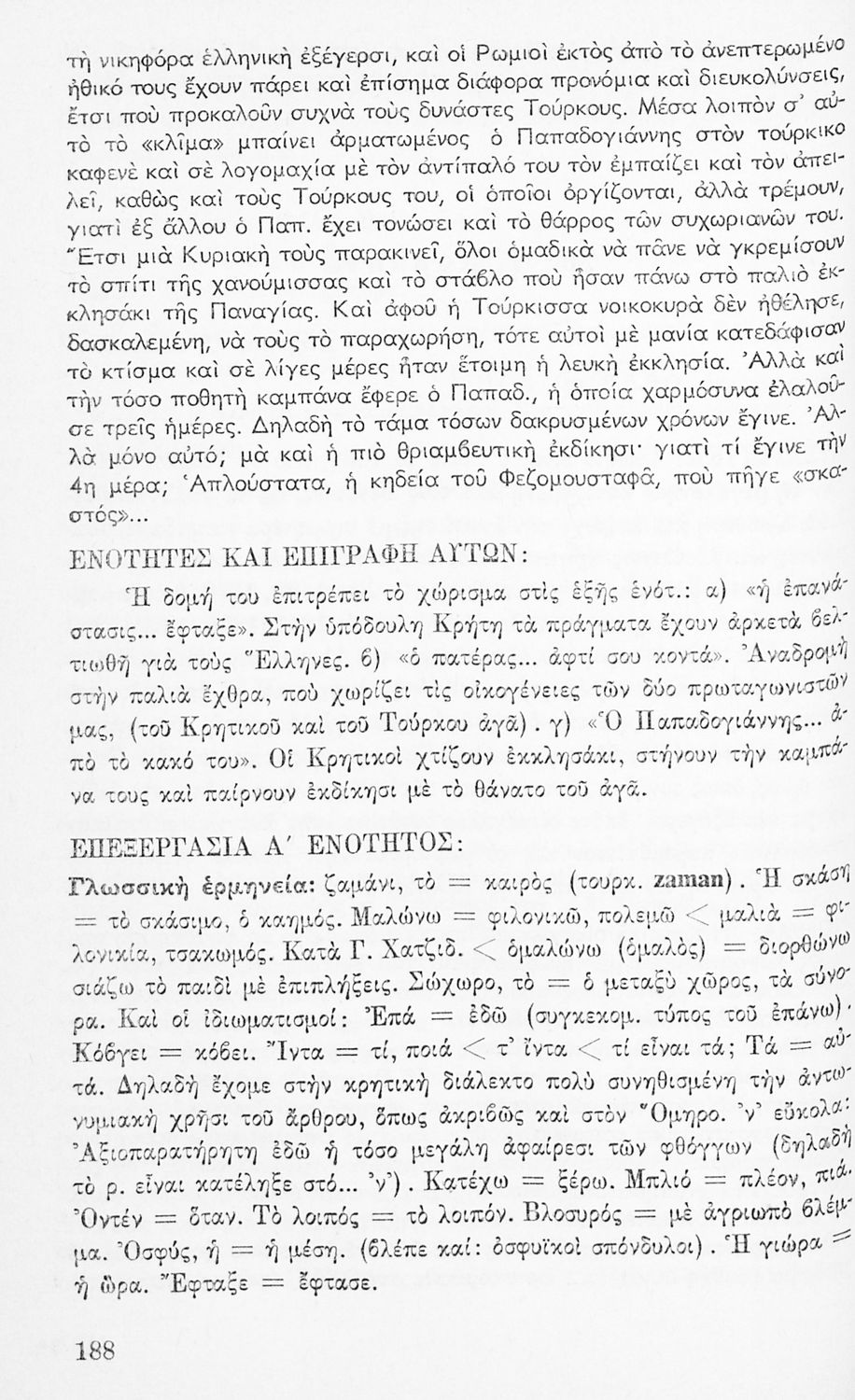 Βαθμίδα εκπαίδευσης: Δευτεροβάθμια Τάξη: Δ' Γυμνασίου Μάθημα: Νέα Ελληνικά Γλώσσα: Δημοτική με στοιχεία καθαρεύουσας Παρουσίαση περιεχομένου: Μαθητικό βοήθημα Νέων Ελληνικών Δ' Γυμνασίου που περιλαμβάνει αναλύσεις των κειμένων του αντίστοιχου σχολικού εγχειριδίου από νοηματική, ερμηνευτική και γλωσσική σκοπιά. |