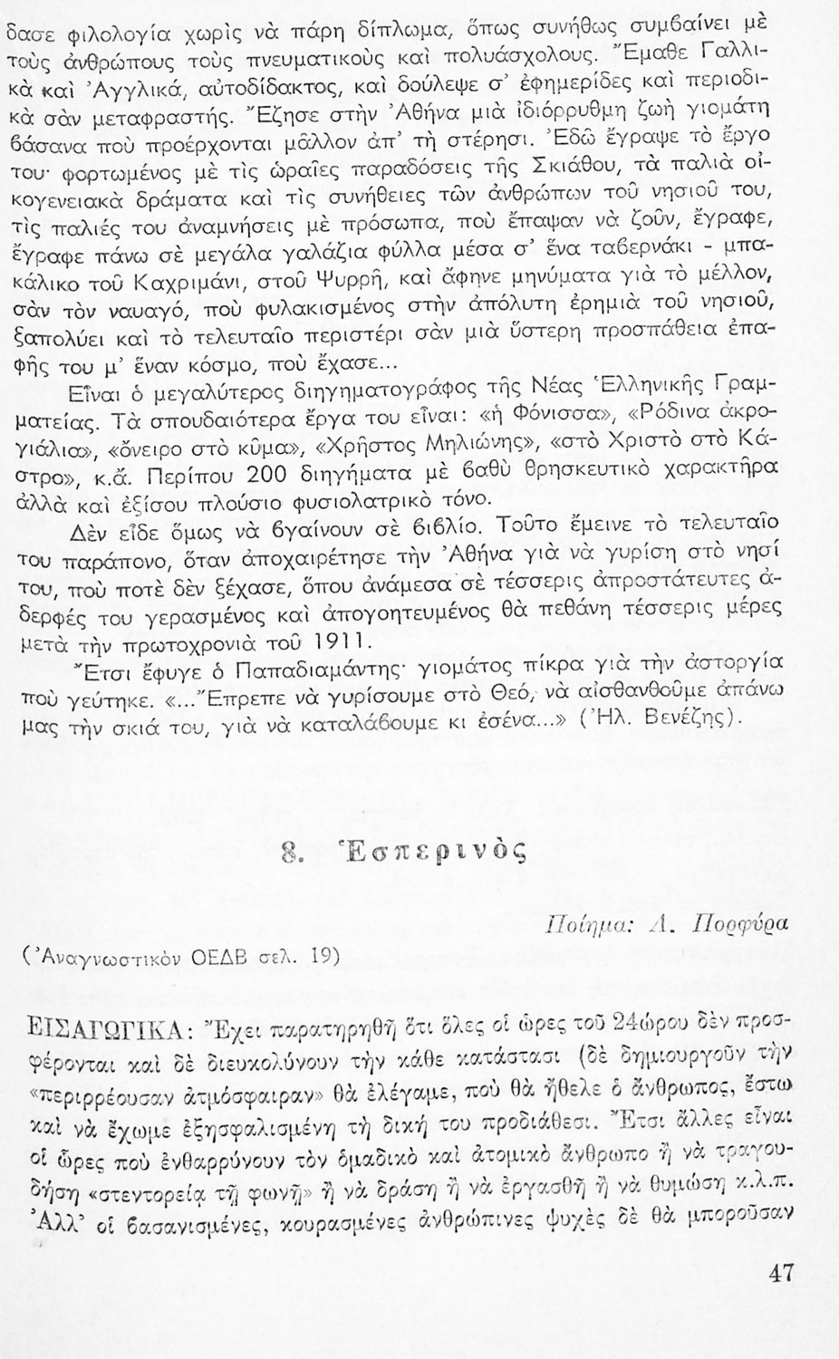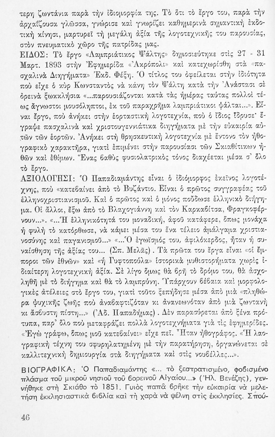 Σχετιζόμενοι όροι:  Παλαμάς, Παπαδιαμάντης, Σολωμός