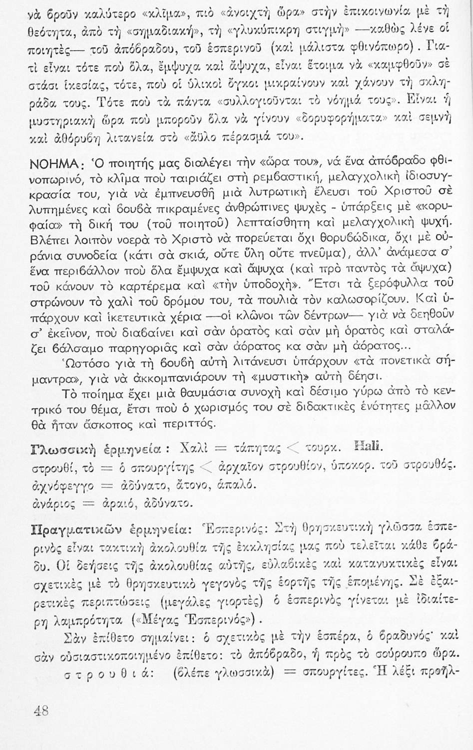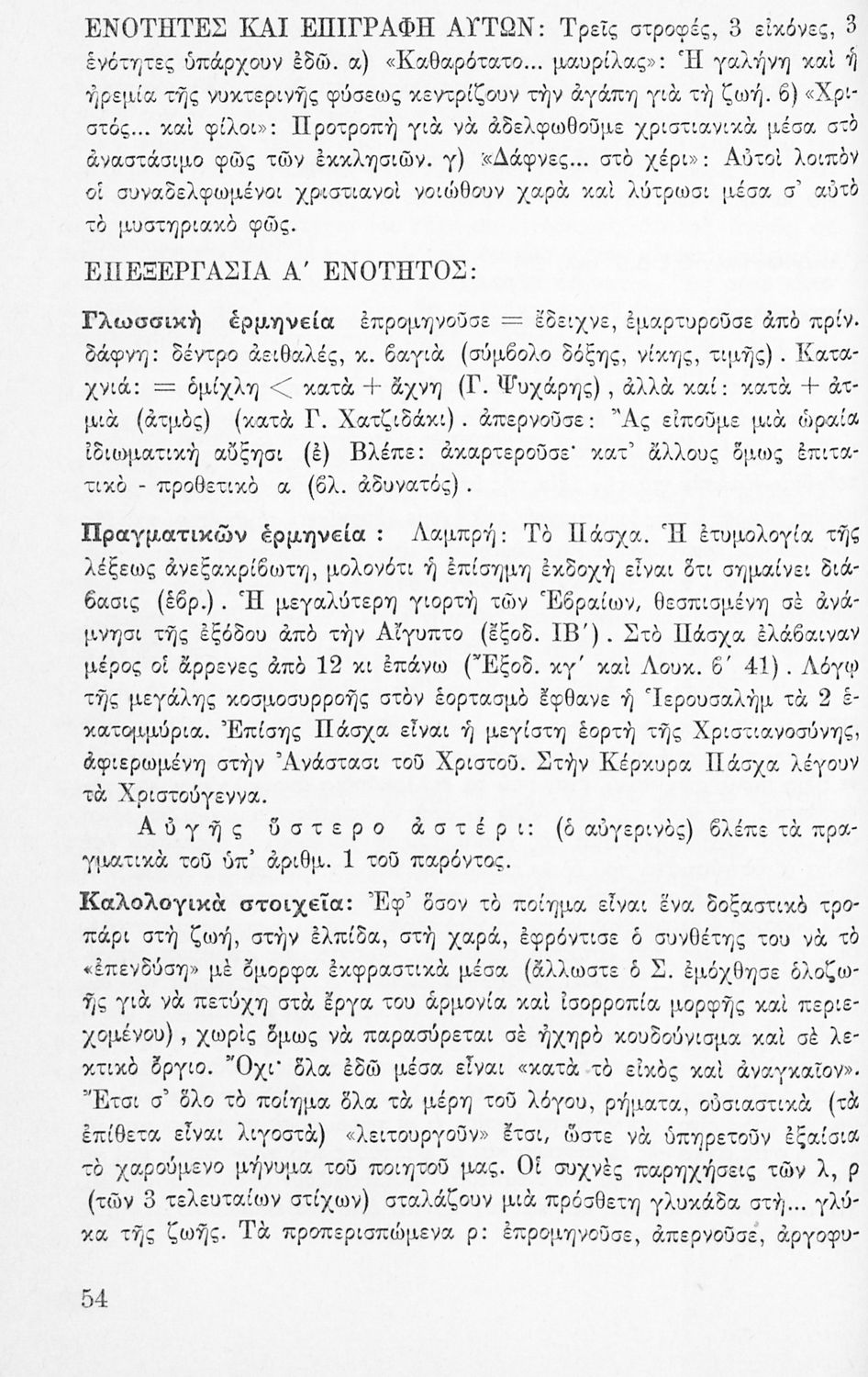 Μαθητικό βοήθημα Νέων Ελληνικών για την Ε΄ και ΣΤ΄ Γυμνασίου που περιλαμβάνει αναλύσεις των κειμένων των αντίστοιχων σχολικών εγχειριδίων από νοηματική, ερμηνευτική και γλωσσική σκοπιά. Περιέχει και βιογραφίες