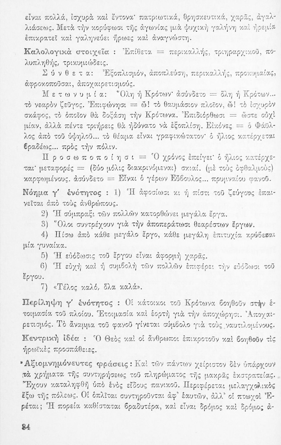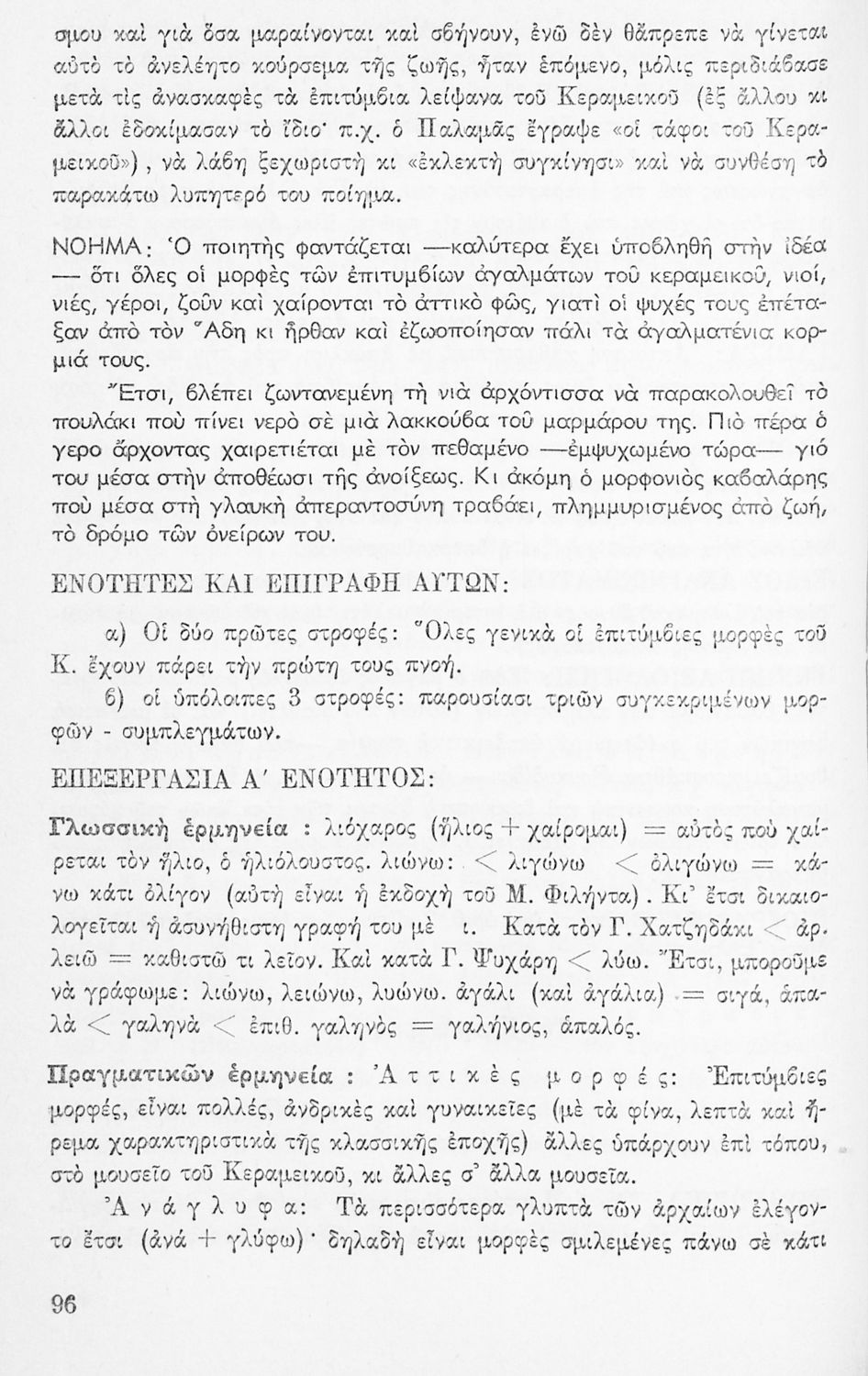 Βαθμίδα εκπαίδευσης: Δευτεροβάθμια Τάξη: Δ' Γυμνασίου Μάθημα: Νέα Ελληνικά Γλώσσα: Δημοτική με στοιχεία καθαρεύουσας Παρουσίαση περιεχομένου: Μαθητικό βοήθημα Νέων Ελληνικών Δ' Γυμνασίου που περιλαμβάνει αναλύσεις των κειμένων του αντίστοιχου σχολικού εγχειριδίου από νοηματική, ερμηνευτική και γλωσσική σκοπιά. |