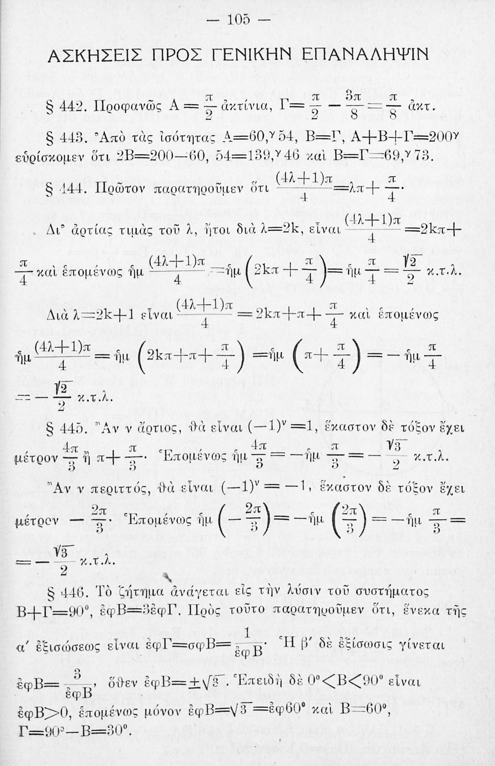 Μαθητικό βοήθημα Τριγωνομετρίας το οποίο περιλαμβάνει λύσεις ασκήσεων τις εγκεκριμένης Τριγωνομετρίας του Οργανισμού Εκδόσεως Σχολικών Βιβλίων, παρατηρήσεις επί των εννοιών της Άλγεβρας και σημειώσεις σχετικά ...