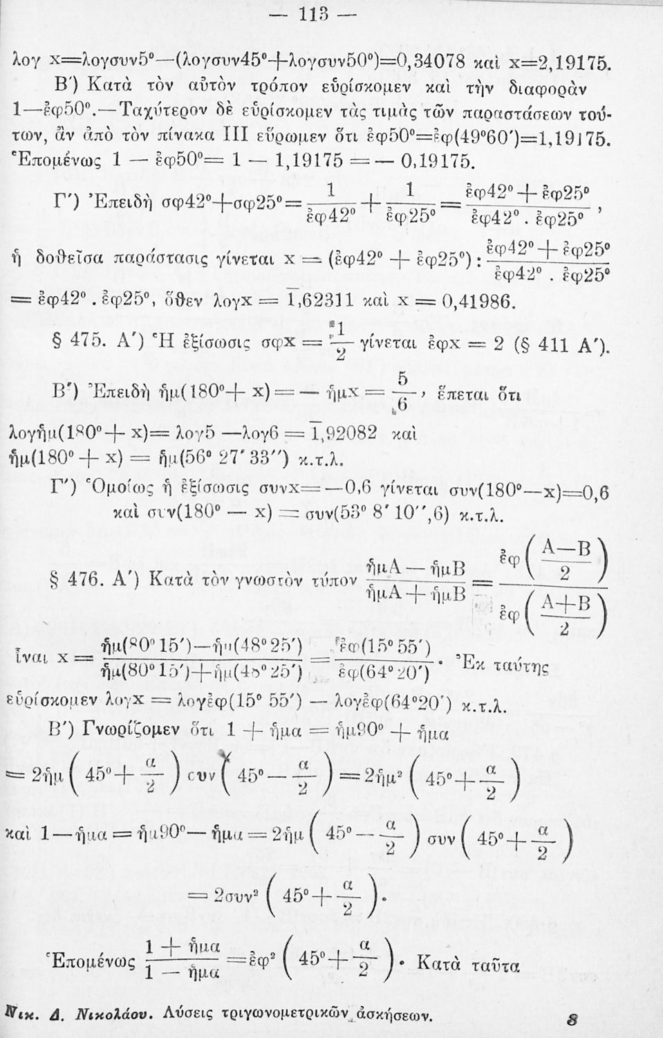 Μαθητικό βοήθημα τριγωνομετρίας που περιέχει τις λύσεις των ασκήσεων που περιλαμβάνονται στο εγκεκριμένο σχολικό εγχειρίδιο που είχε συγγράψει ο Νικ. Νικολάου