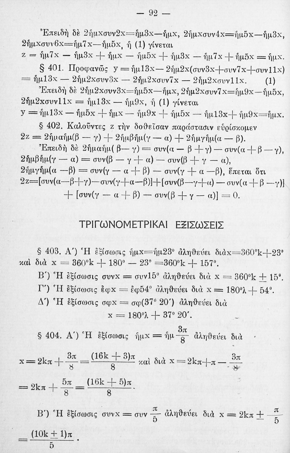 Βαθμίδα εκπαίδευσης: Δευτεροβάθμια Μάθημα: Μαθηματικά Γλώσσα: Καθαρεύουσα Παρουσίαση περιεχομένου: Μαθητικό βοήθημα τριγωνομετρίας που περιέχει τις λύσεις των ασκήσεων που περιλαμβάνονται στο εγκεκριμένο σχολικό εγχειρίδιο που είχε συγγράψει ο Νικ. Νικολάου |