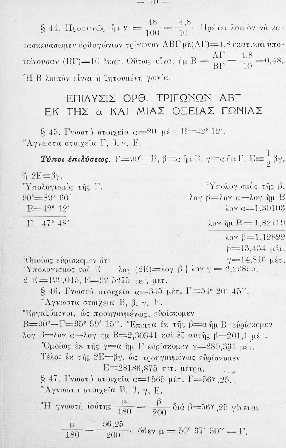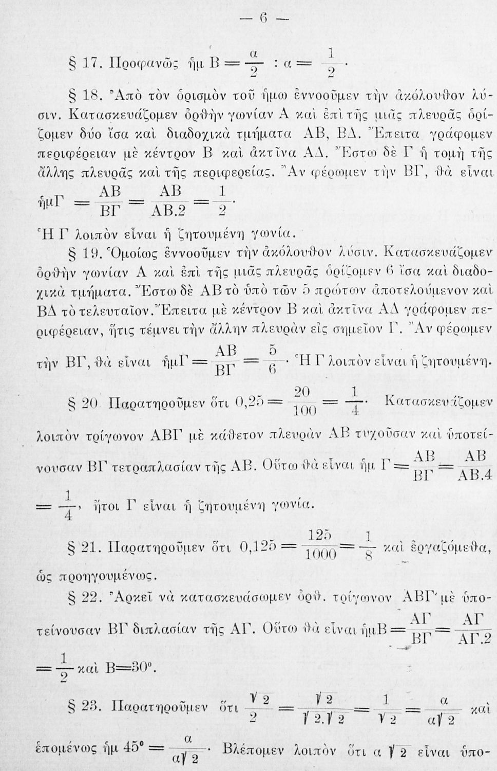 Βαθμίδα εκπαίδευσης: Δευτεροβάθμια Μάθημα: Μαθηματικά Γλώσσα: Καθαρεύουσα Παρουσίαση περιεχομένου: Μαθητικό βοήθημα τριγωνομετρίας που περιέχει τις λύσεις των ασκήσεων που περιλαμβάνονται στο εγκεκριμένο σχολικό εγχειρίδιο που είχε συγγράψει ο Νικ. Νικολάου |