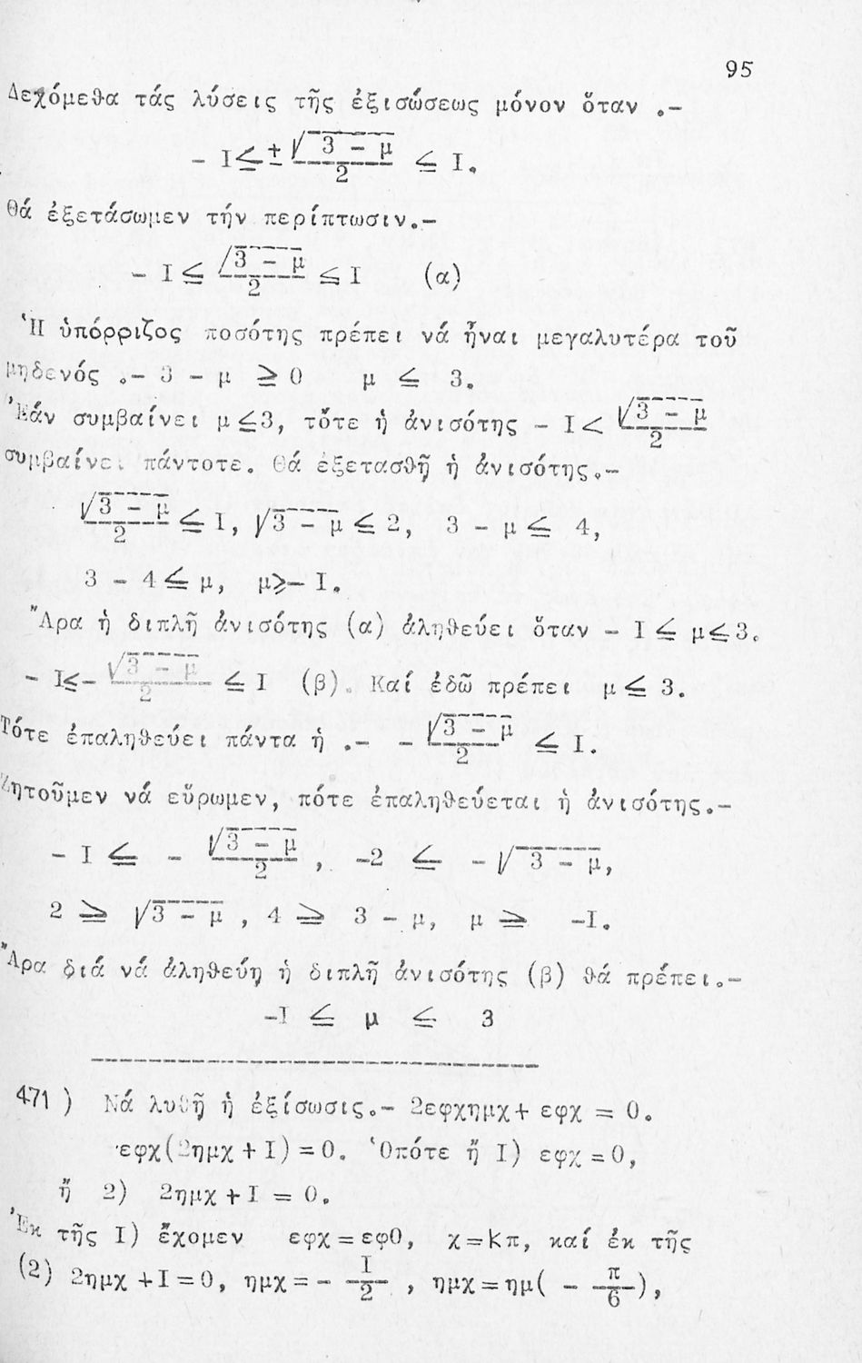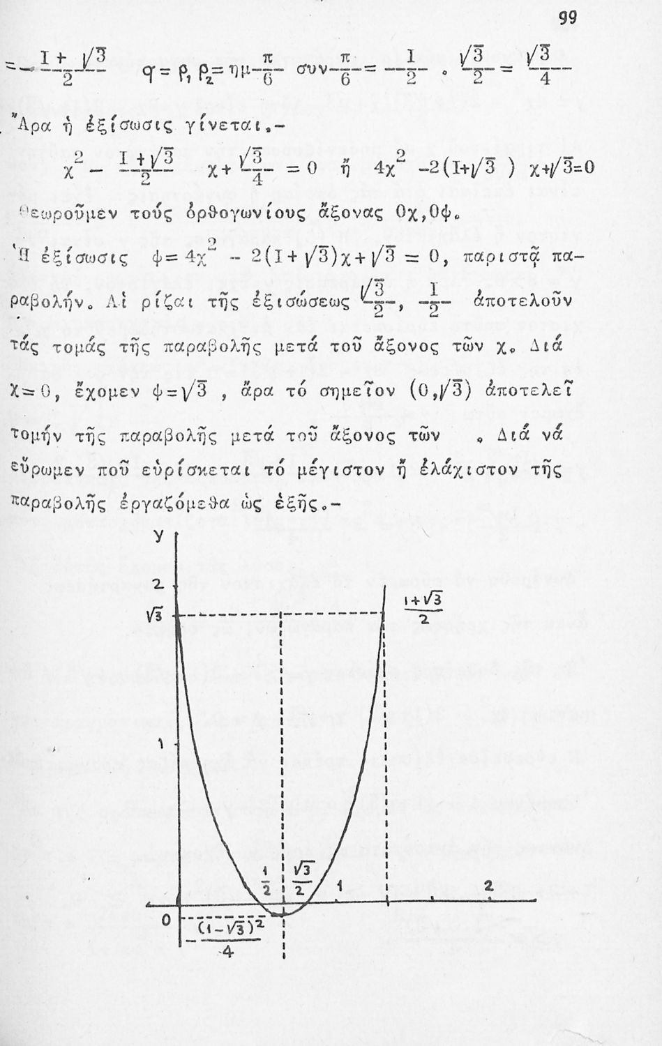 Σχολικό εγχειρίδιο Μαθηματικών Γ΄ Λυκείου που είναι χωρισμένο σε θεωρήματα, παραδείγματα και ασκήσεις και περιλαμβάνει στοιχεία Ανώτερης Άλγεβρας και Μαθηματικής Ανάλυσης.