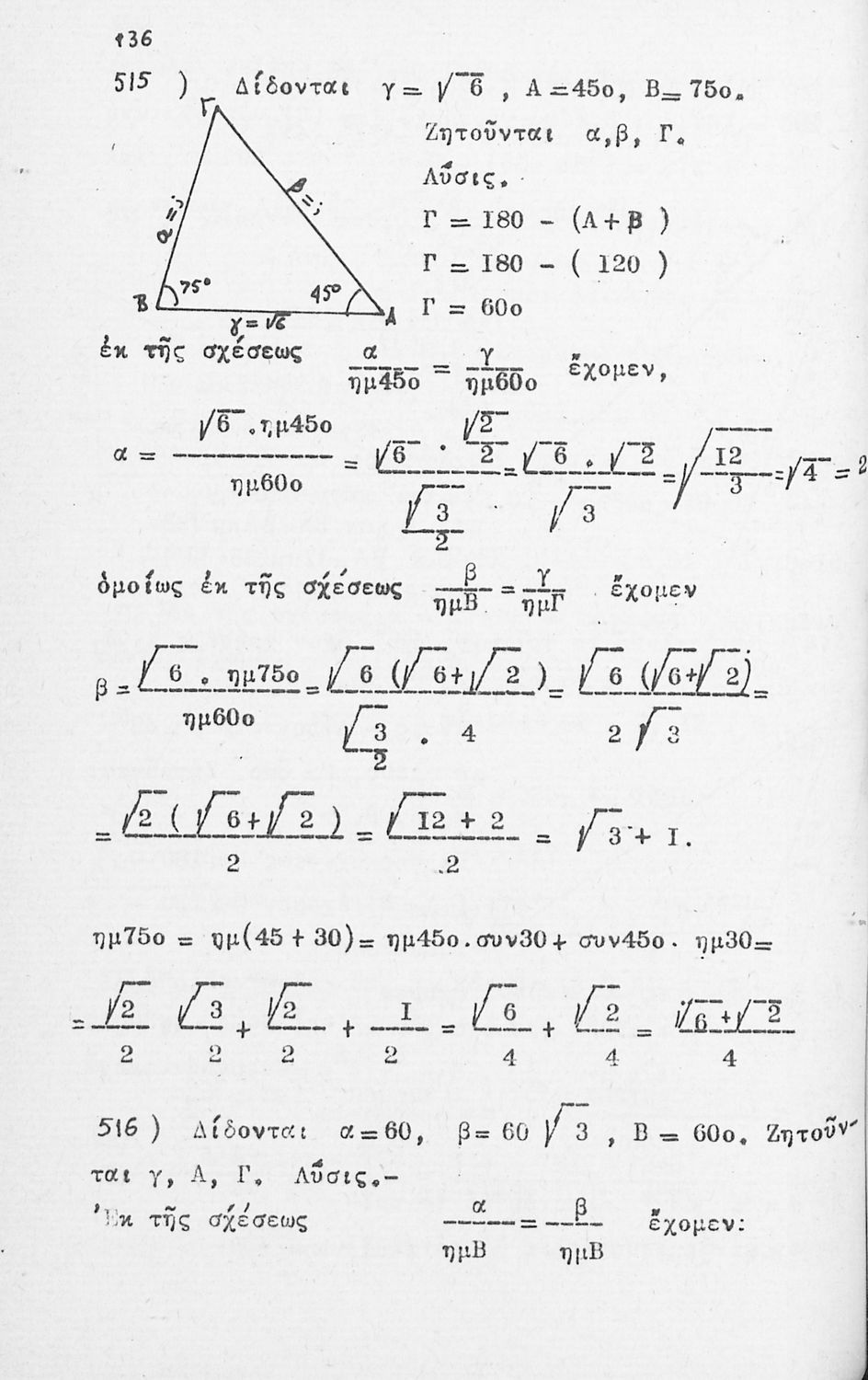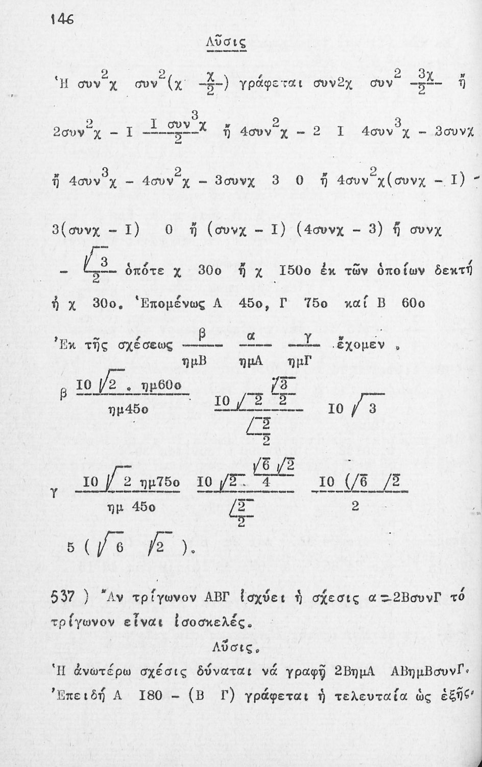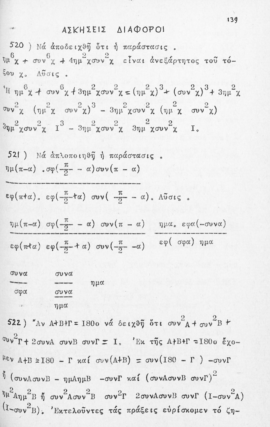 Σχολικό εγχειρίδιο Τριγωνομετρίας για τις Δ΄, Ε΄ και ΣΤ΄ Γυμνασίου που περιλαμβάνει θεωρία και ασκήσεις. Φέρει το σύμβολο της δικτατορίας.