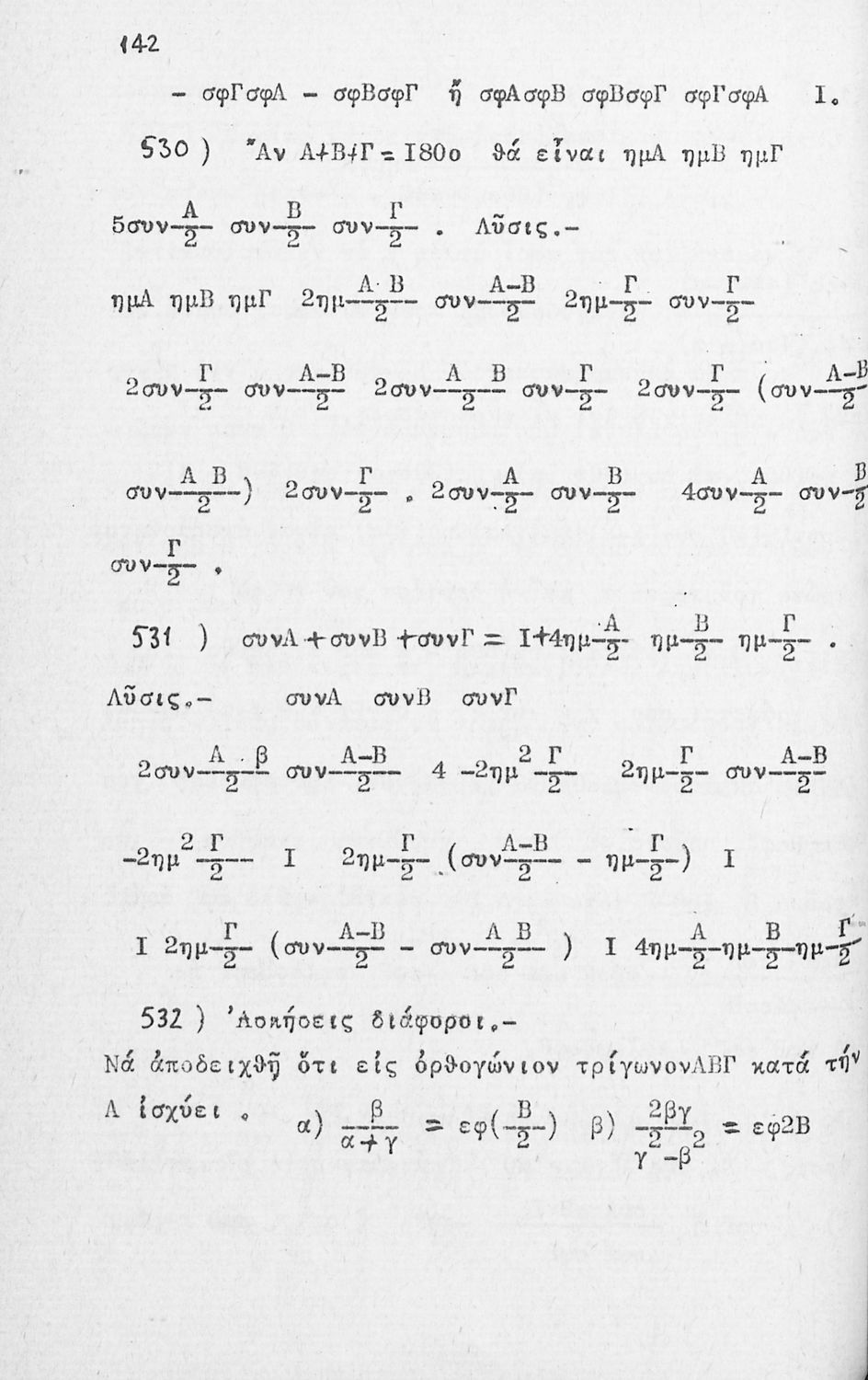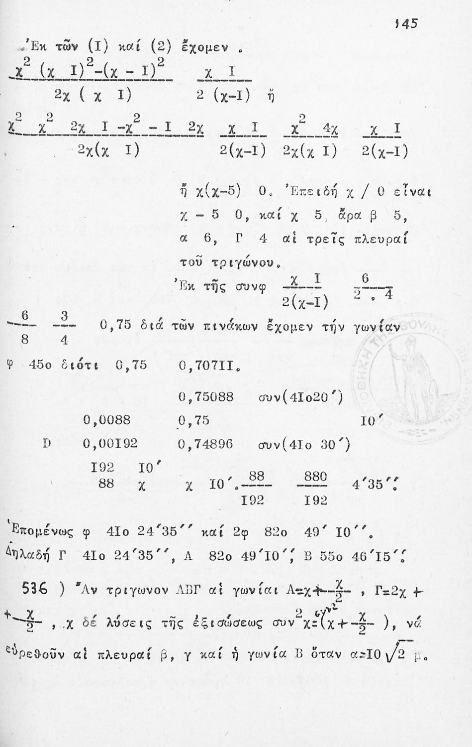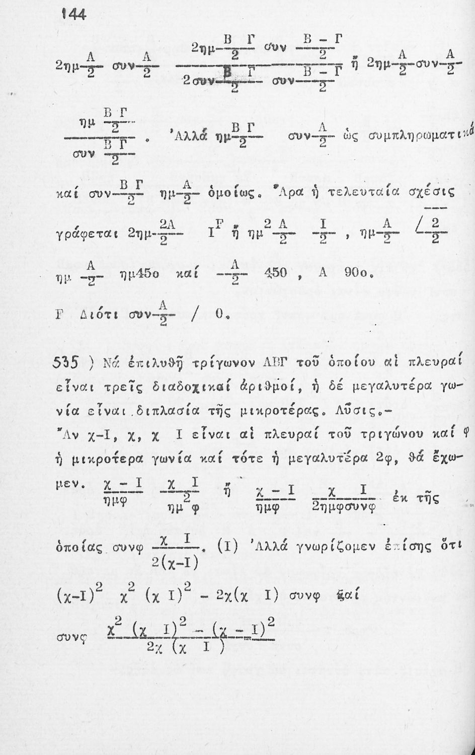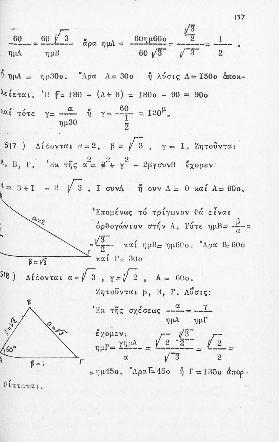Σχολικό εγχειρίδιο Τριγωνομετρίας για τις Δ΄, Ε΄ και ΣΤ΄ Γυμνασίου που περιλαμβάνει θεωρία και ασκήσεις. Φέρει το σύμβολο της δικτατορίας.