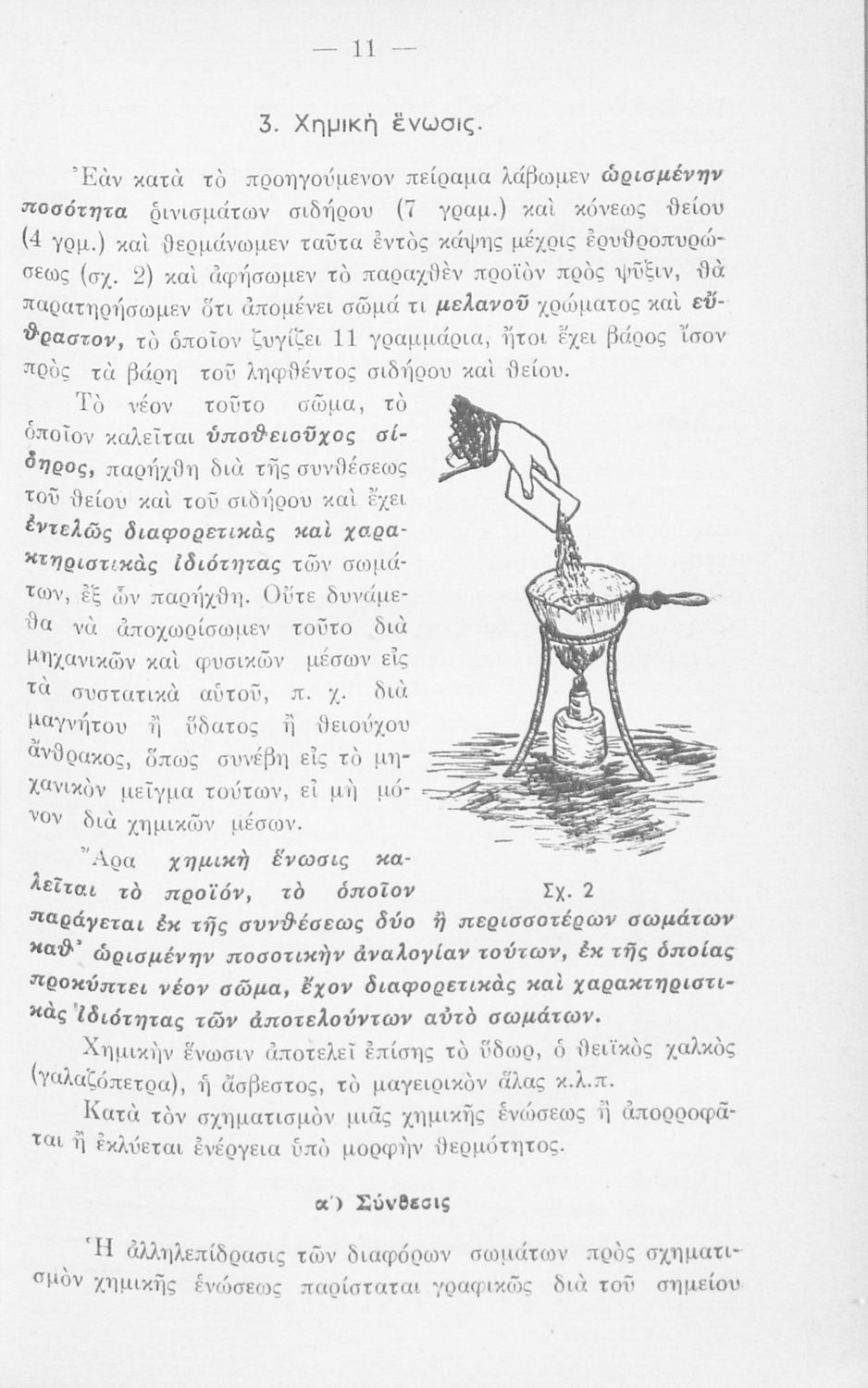 Σχολικό εγχειρίδιο Χημείας που προσδιορίζει τη σύσταση της ύλης (ατομική θεωρία, θεμελιώδεις νόμοι της Χημείας), τις χημικές αντιδράσεις και εξισώσεις καθώς περιγράφονται οι χημικές ενώσεις (οξέα, βάσεις, ...
