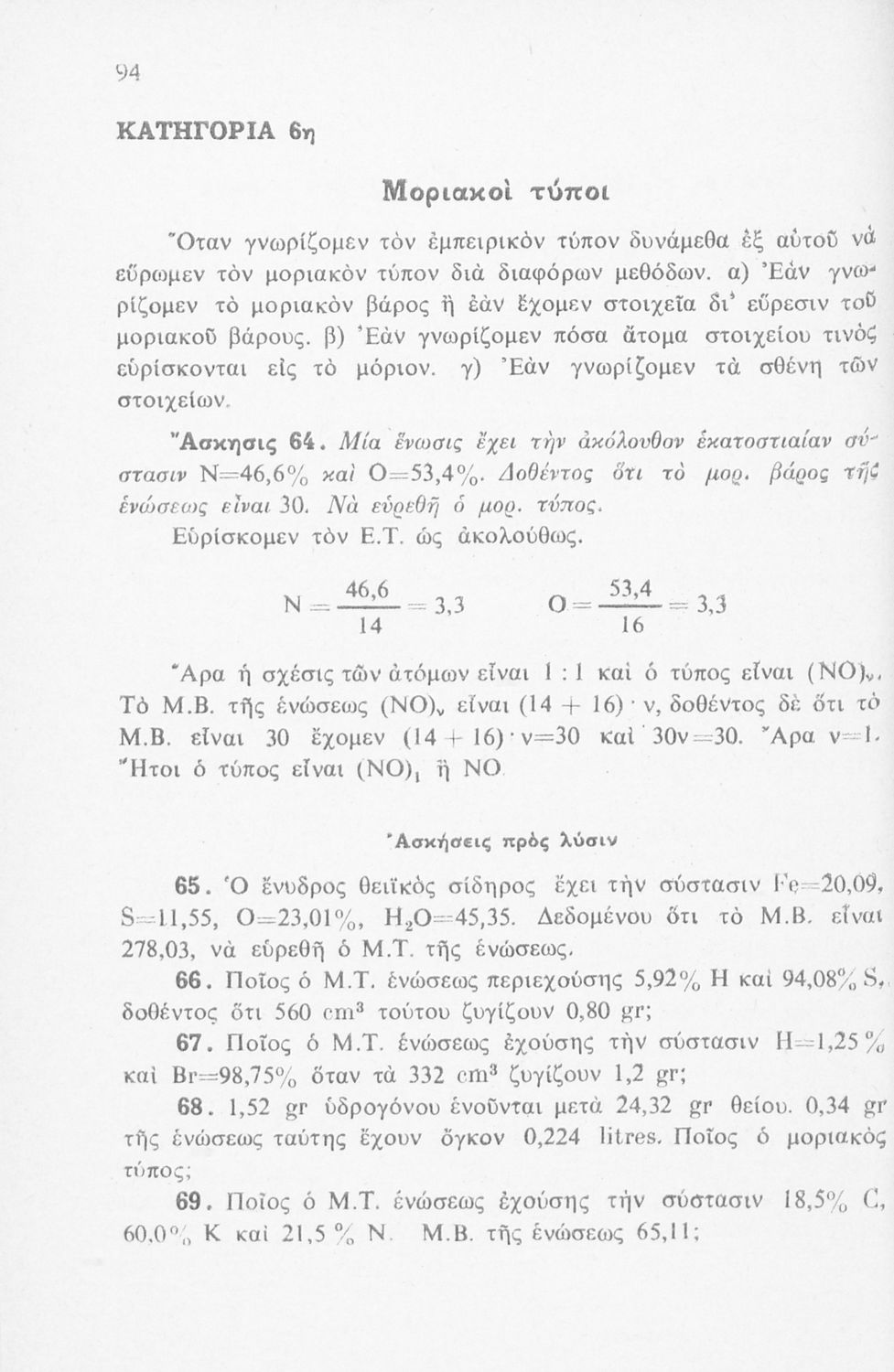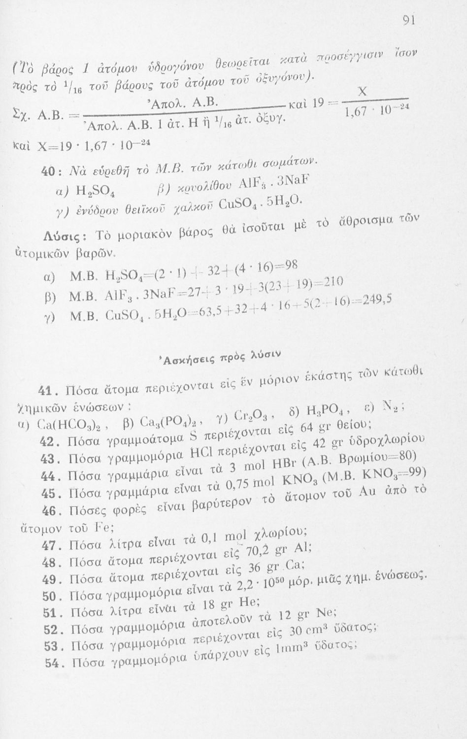 Χημεία Ανόργανος – Οργανική Ασκήσεις