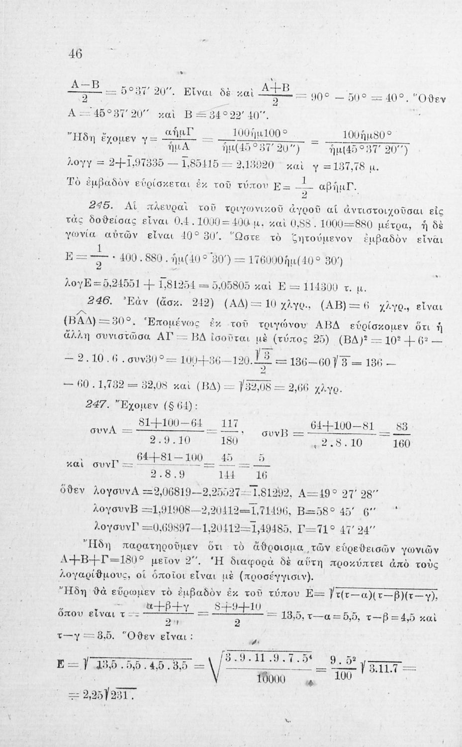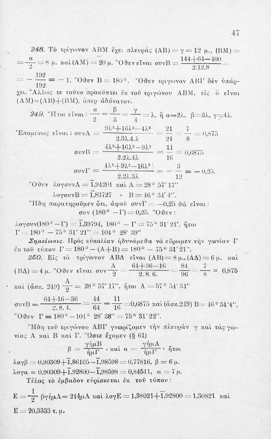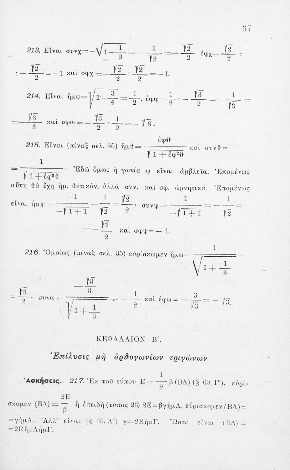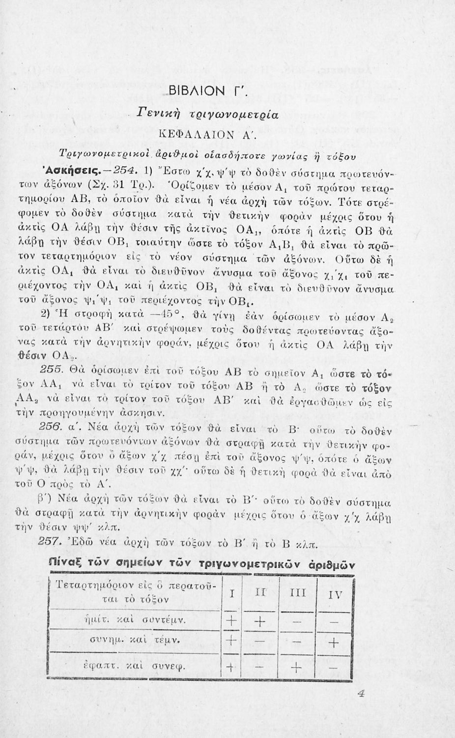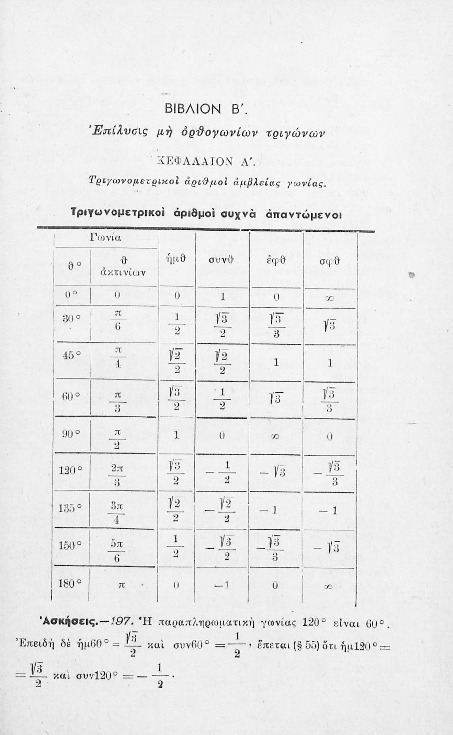 Μαθητικό βοήθημα Τριγωνομετρίας το οποίο περιλαμβάνει λύσεις ασκήσεων τις εγκεκριμένης Τριγωνομετρίας του Οργανισμού Εκδόσεως Σχολικών Βιβλίων, παρατηρήσεις επί των εννοιών της Άλγεβρας και σημειώσεις σχετικά με τους κανόνες και τύπους για την ταχύτερη λύση των ασκήσεων Τριγωνομετρίας.