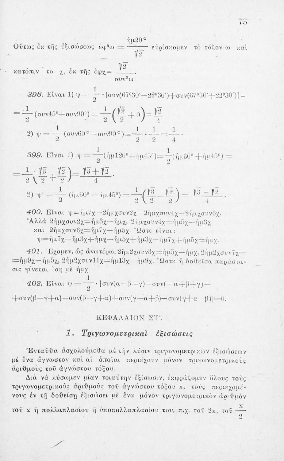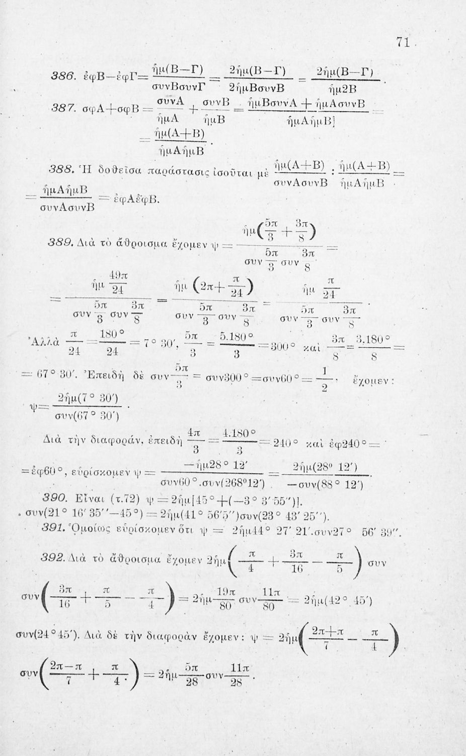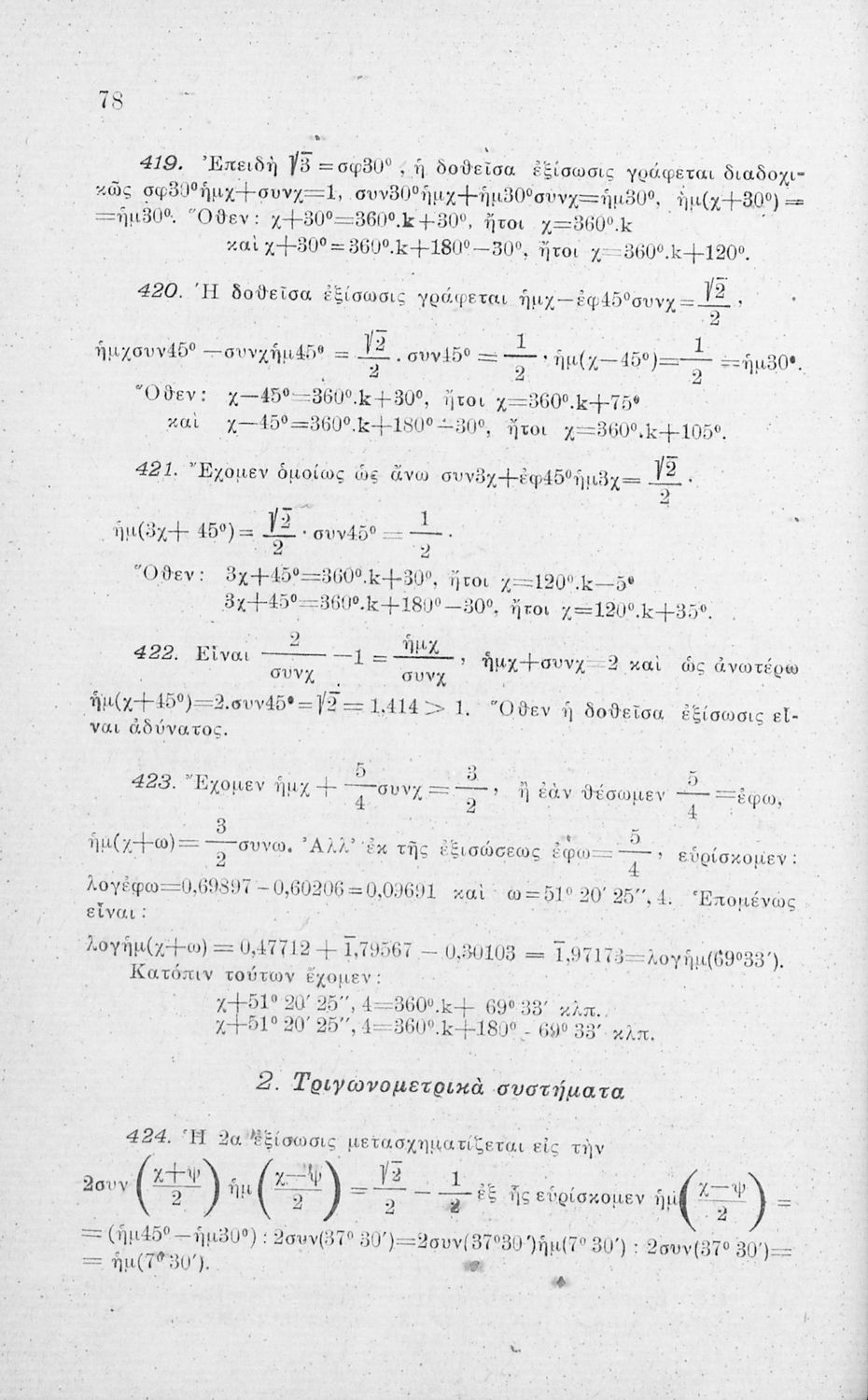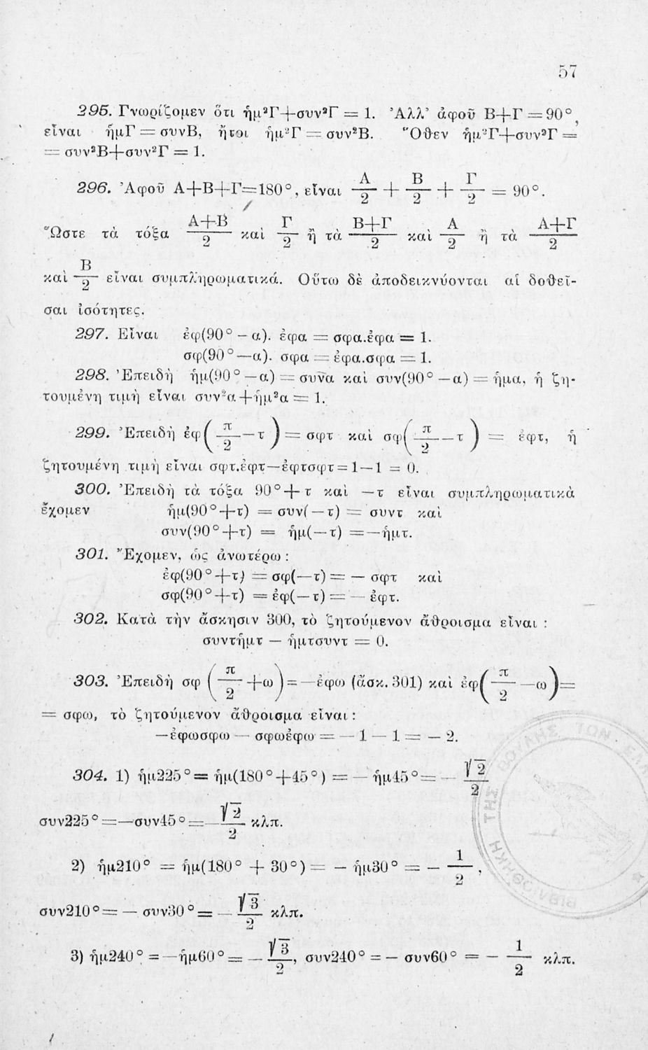 Μαθητικό βοήθημα Τριγωνομετρίας το οποίο περιλαμβάνει λύσεις ασκήσεων τις εγκεκριμένης Τριγωνομετρίας του Οργανισμού Εκδόσεως Σχολικών Βιβλίων, παρατηρήσεις επί των εννοιών της Άλγεβρας και σημειώσεις σχετικά με τους κανόνες και τύπους για την ταχύτερη λύση των ασκήσεων Τριγωνομετρίας.