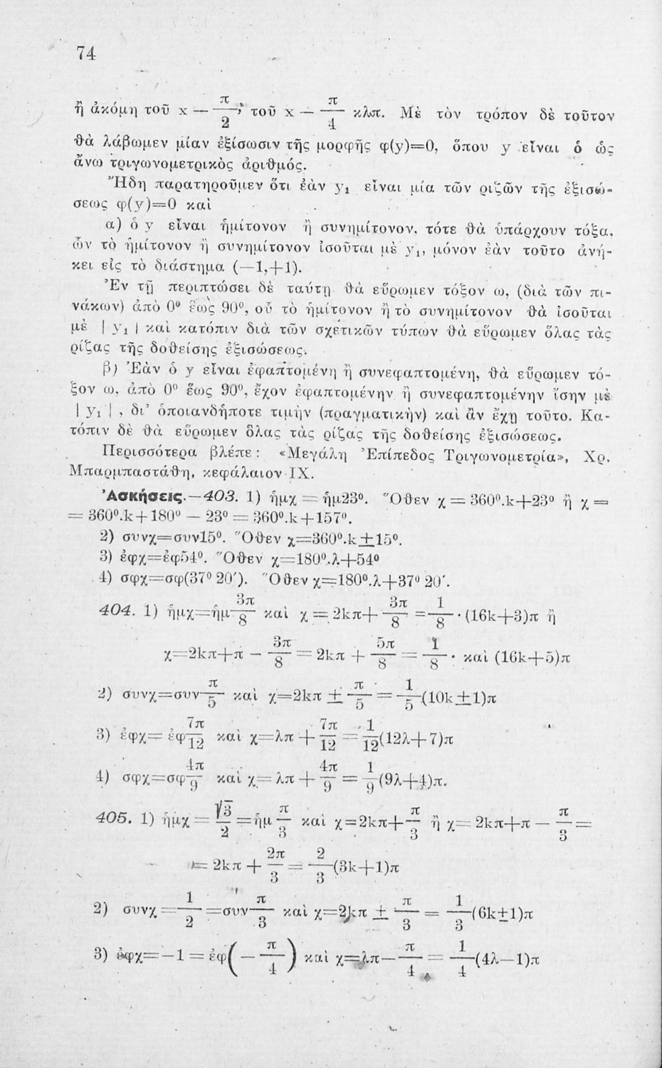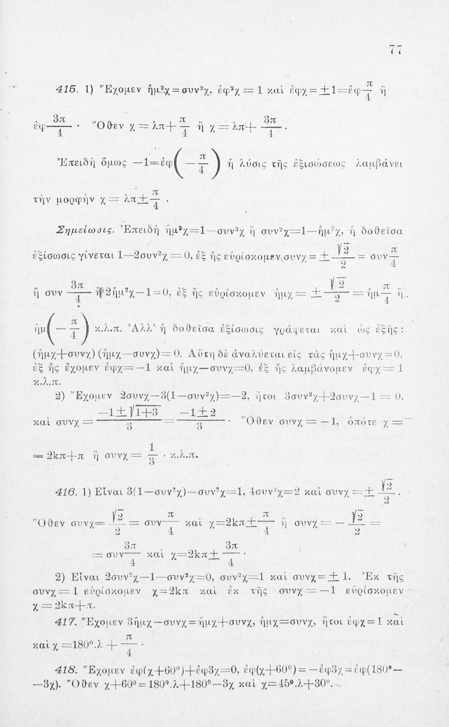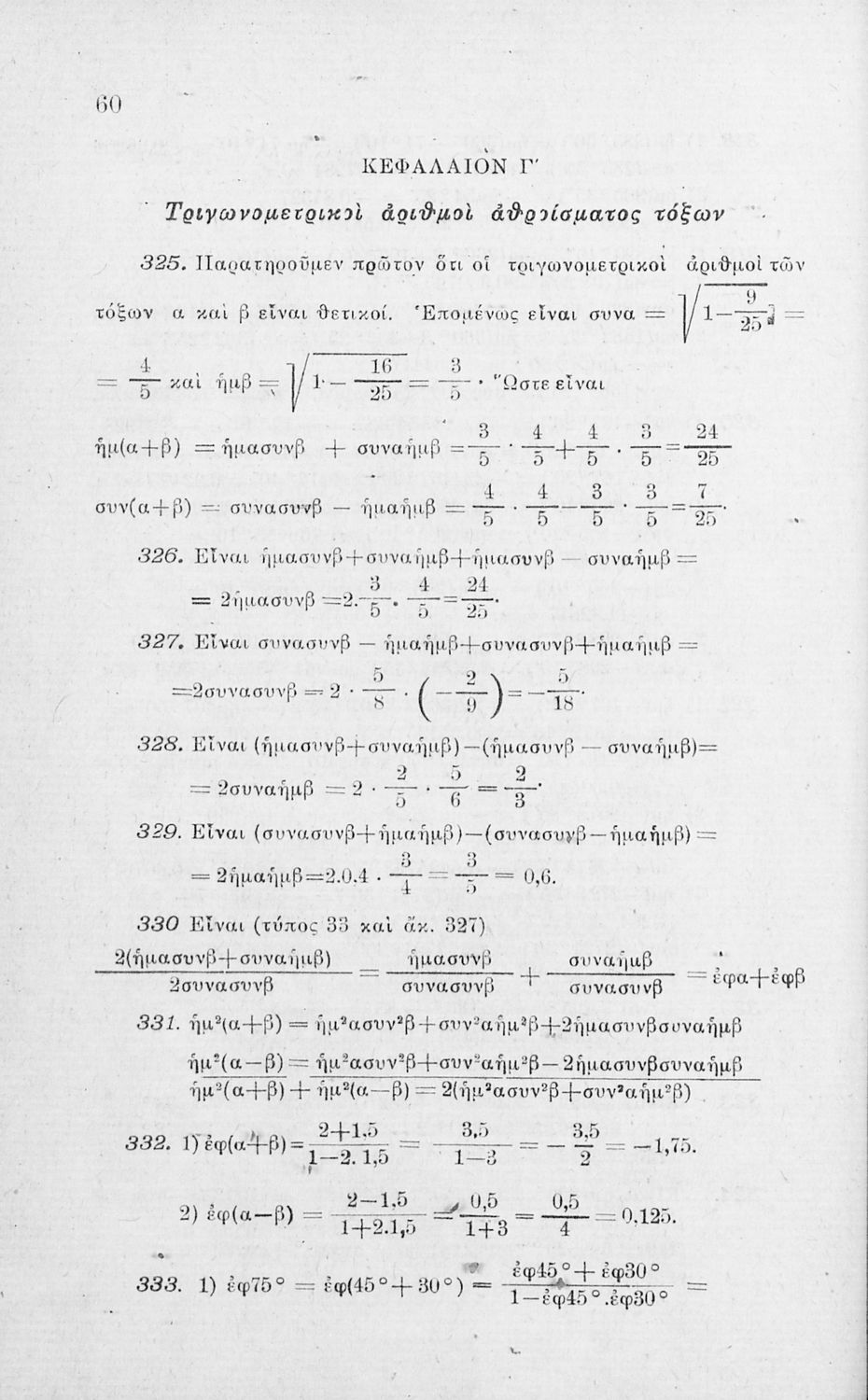 Μαθητικό βοήθημα Τριγωνομετρίας το οποίο περιλαμβάνει λύσεις ασκήσεων τις εγκεκριμένης Τριγωνομετρίας του Οργανισμού Εκδόσεως Σχολικών Βιβλίων, παρατηρήσεις επί των εννοιών της Άλγεβρας και σημειώσεις σχετικά με τους κανόνες και τύπους για την ταχύτερη λύση των ασκήσεων Τριγωνομετρίας.