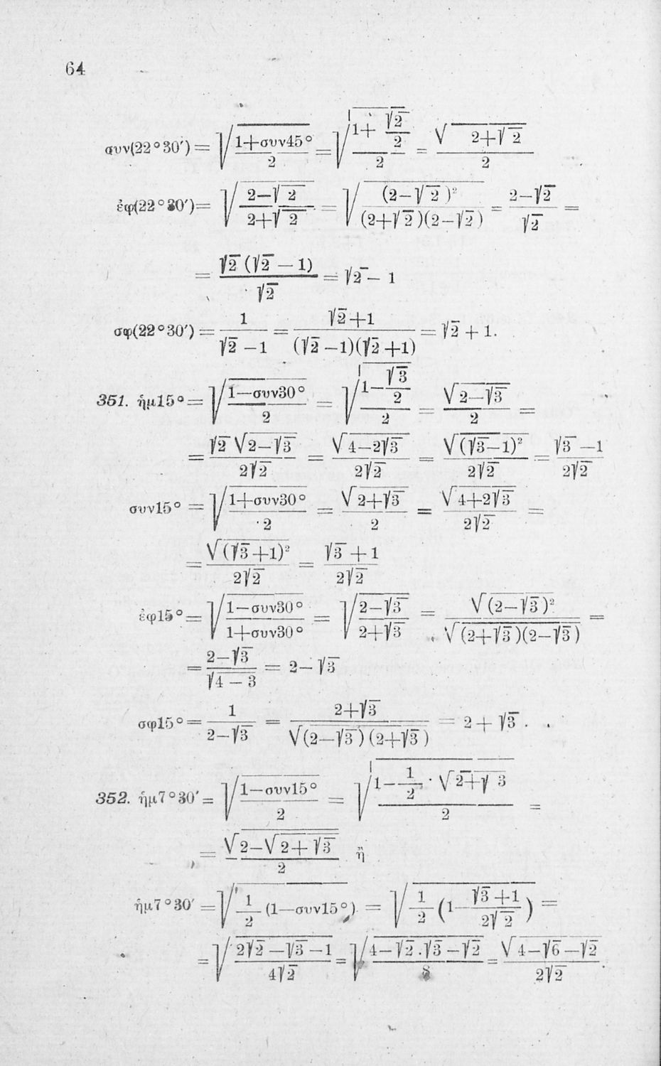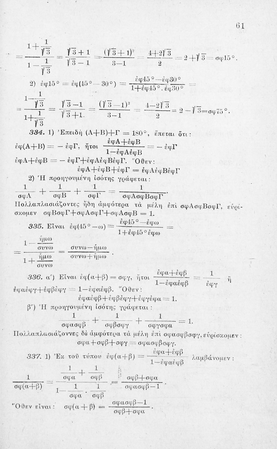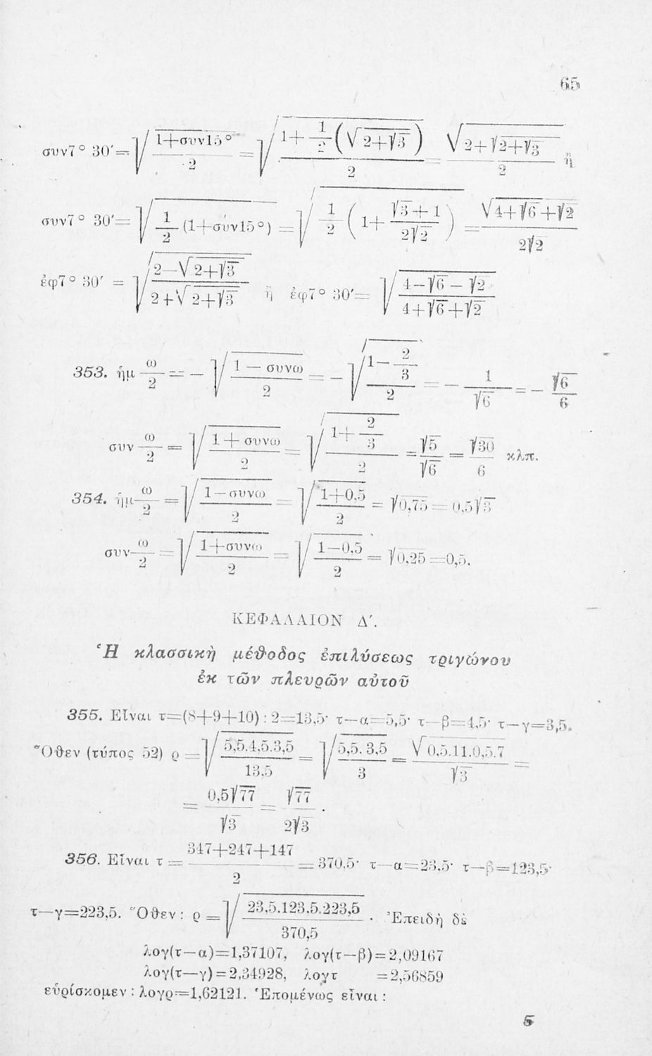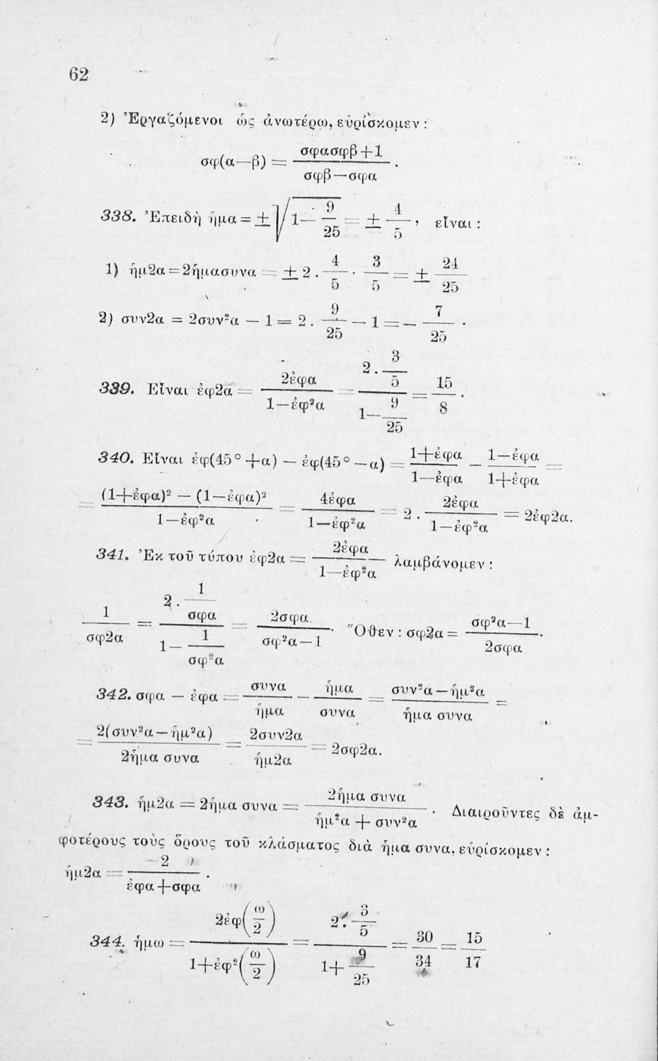 Μαθητικό βοήθημα Τριγωνομετρίας το οποίο περιλαμβάνει λύσεις ασκήσεων τις εγκεκριμένης Τριγωνομετρίας του Οργανισμού Εκδόσεως Σχολικών Βιβλίων, παρατηρήσεις επί των εννοιών της Άλγεβρας και σημειώσεις σχετικά με τους κανόνες και τύπους για την ταχύτερη λύση των ασκήσεων Τριγωνομετρίας.