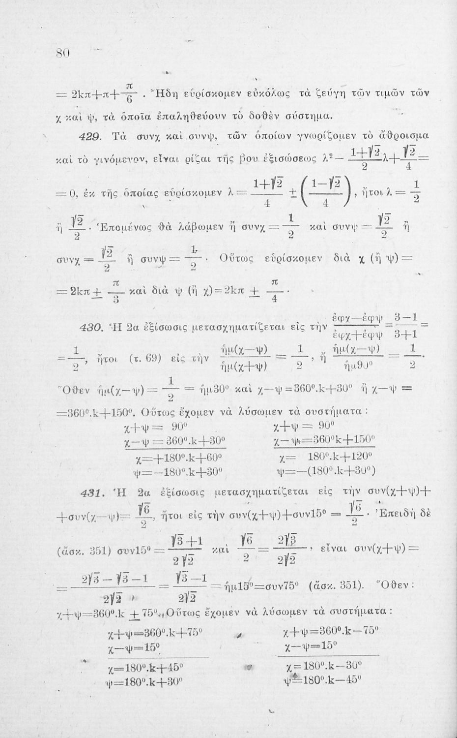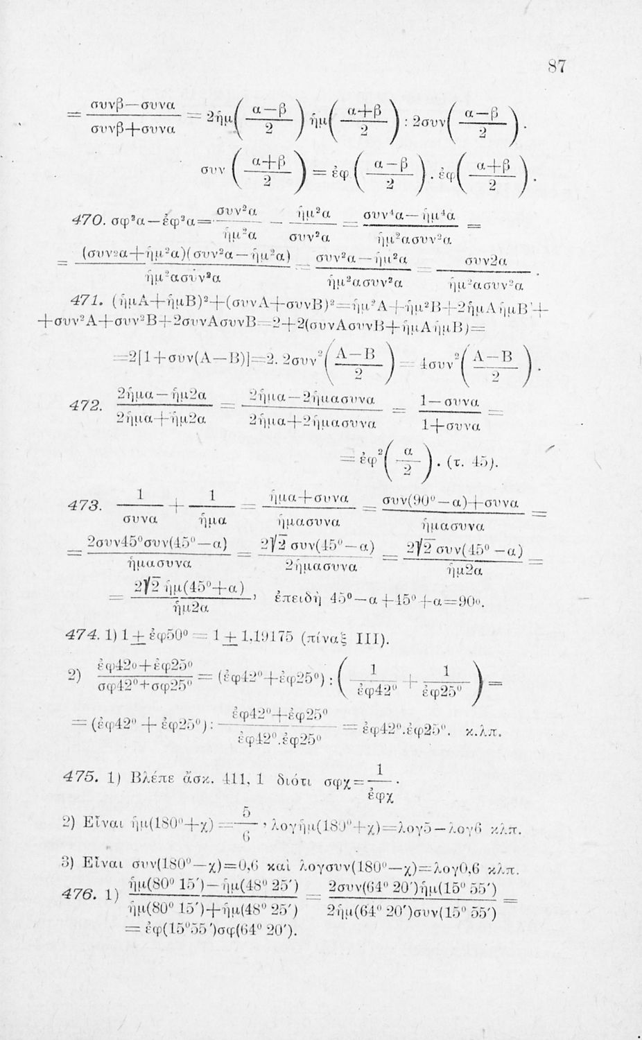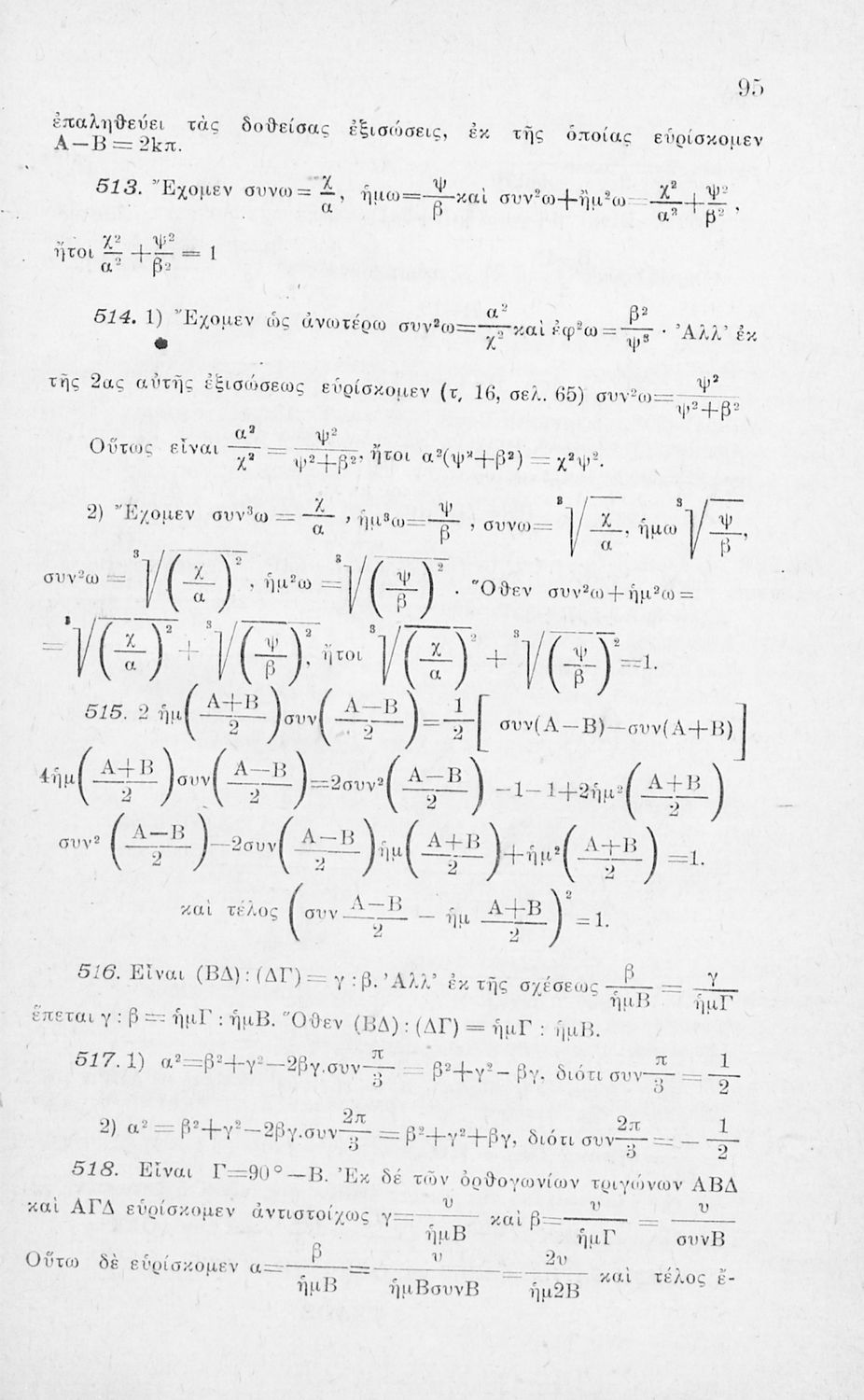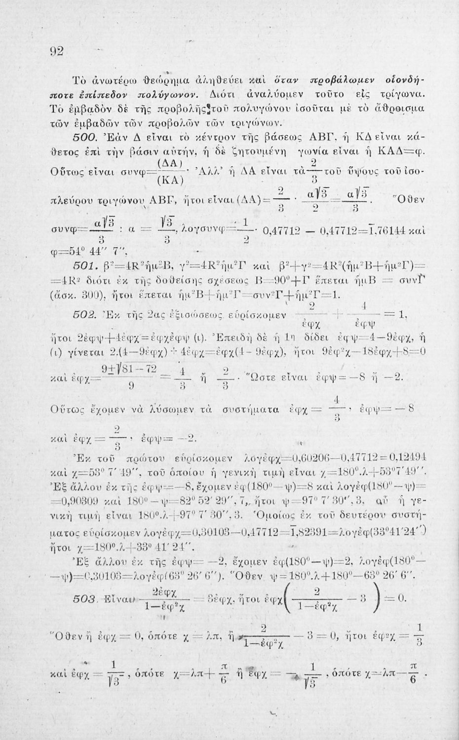 520 ## _aΜαθητικό βοήθημα Τριγωνομετρίας το οποίο περιλαμβάνει λύσεις ασκήσεων τις εγκεκριμένης Τριγωνομετρίας του Οργανισμού Εκδόσεως Σχολικών Βιβλίων, παρατηρήσεις επί των εννοιών της Άλγεβρας και σημειώσεις σχετικά με τους κανόνες και τύπους για την ταχύτερη λύση των ασκήσεων Τριγωνομετρίας.