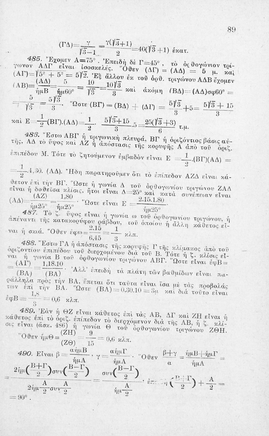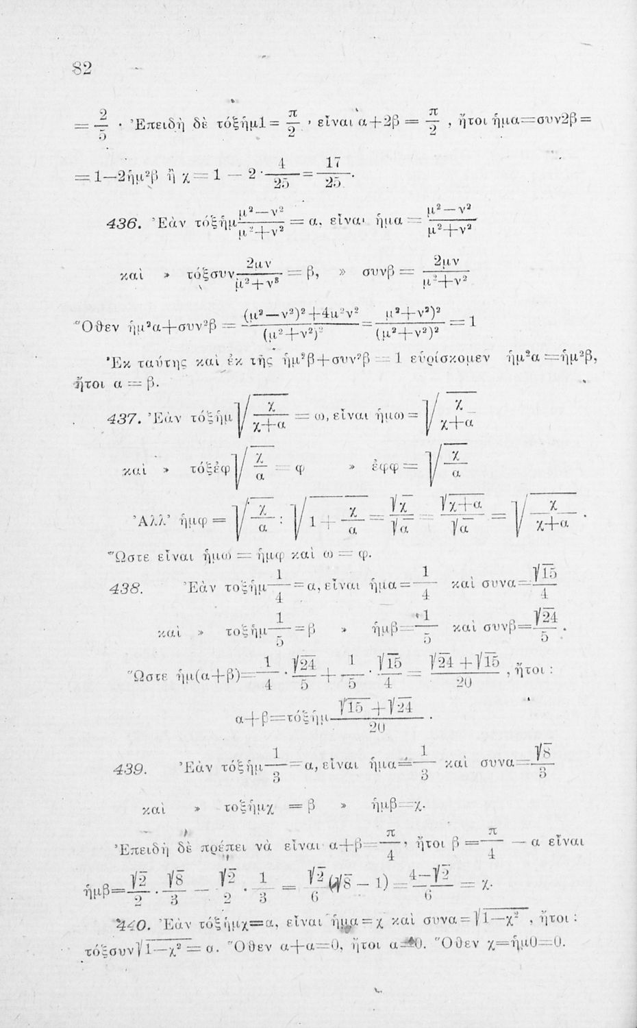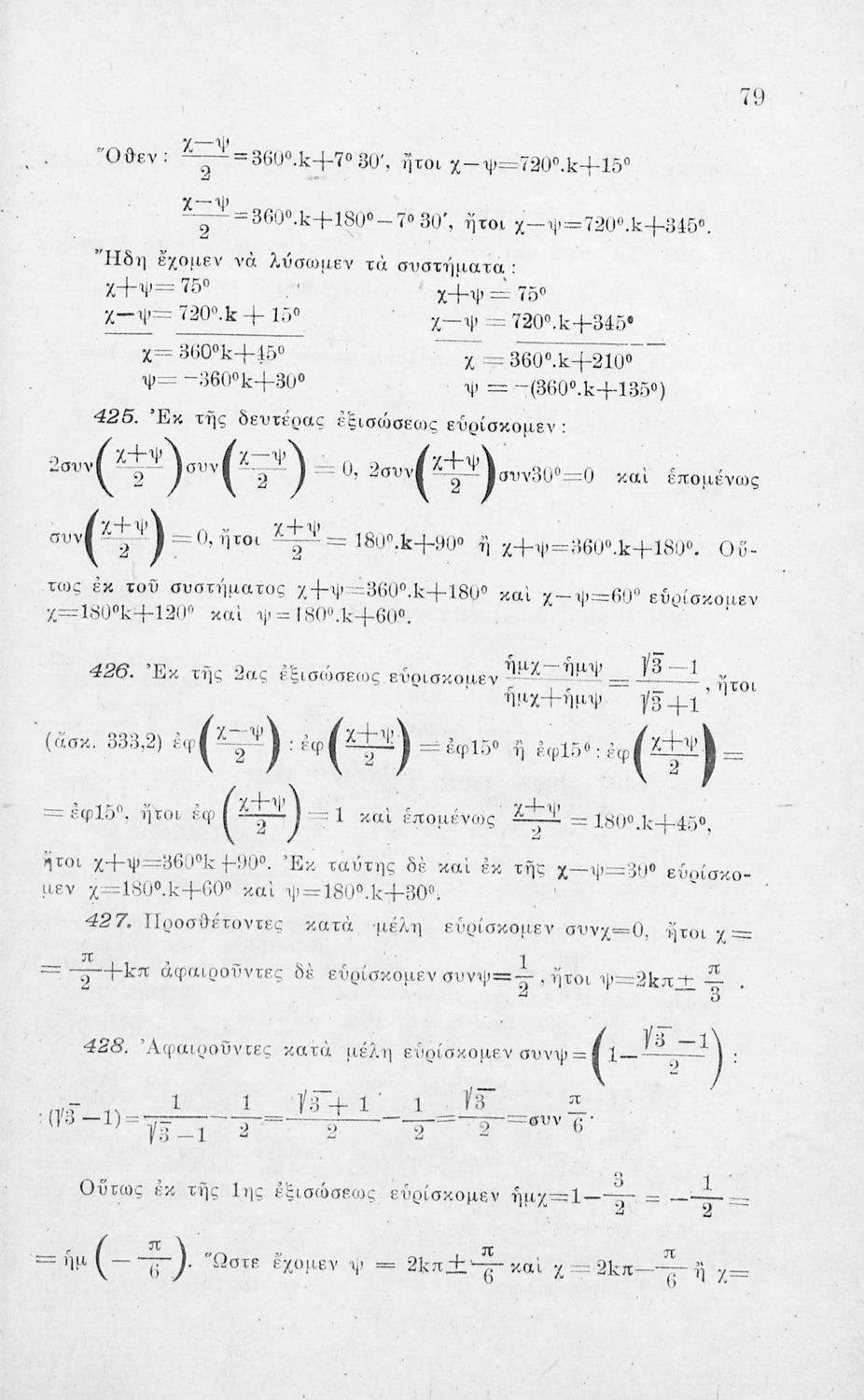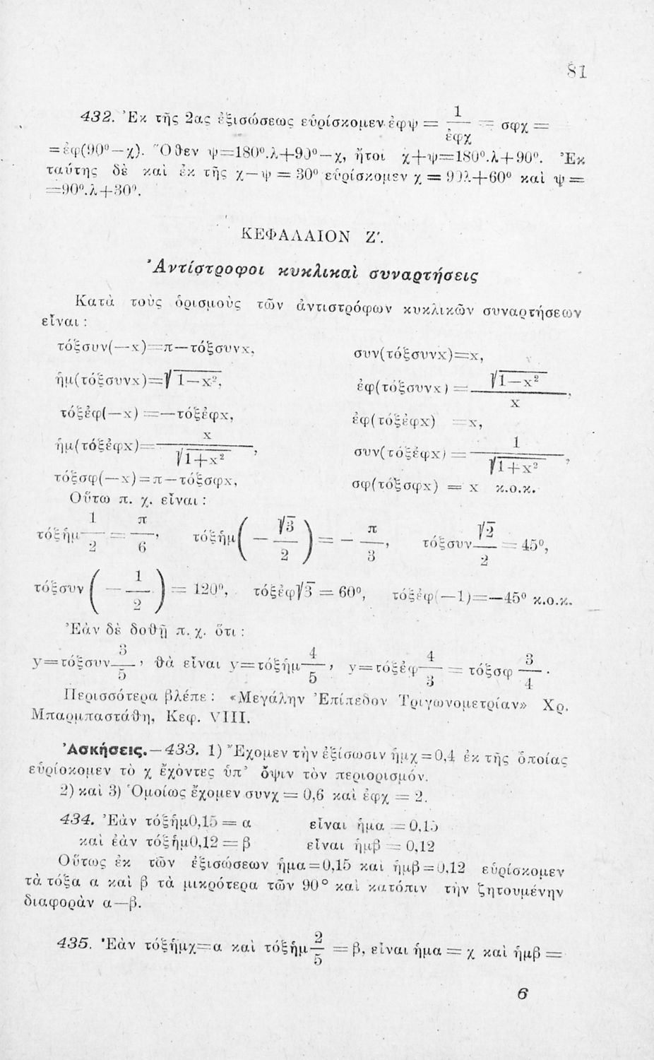 520 ## _aΜαθητικό βοήθημα Τριγωνομετρίας το οποίο περιλαμβάνει λύσεις ασκήσεων τις εγκεκριμένης Τριγωνομετρίας του Οργανισμού Εκδόσεως Σχολικών Βιβλίων, παρατηρήσεις επί των εννοιών της Άλγεβρας και σημειώσεις σχετικά με τους κανόνες και τύπους για την ταχύτερη λύση των ασκήσεων Τριγωνομετρίας.