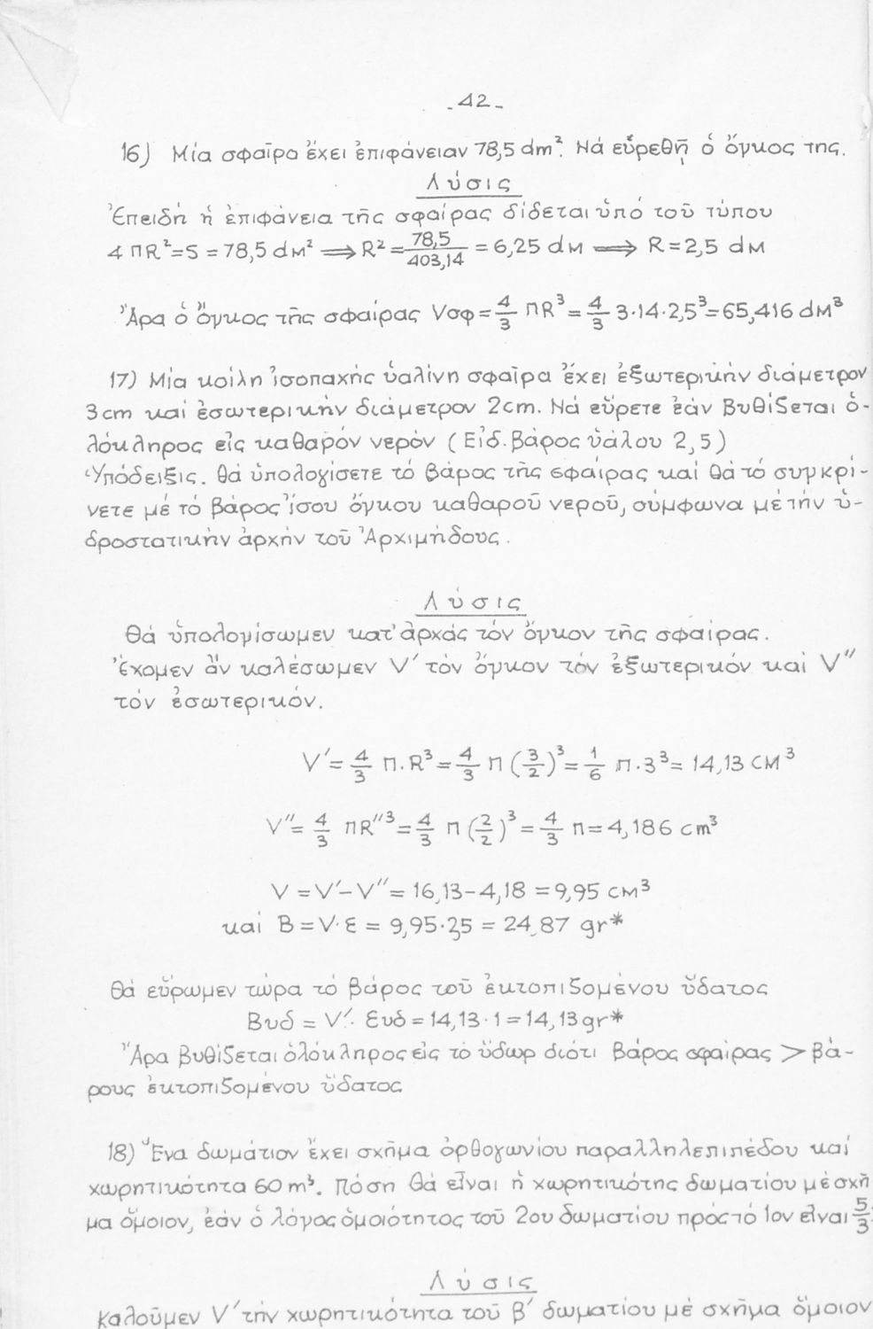 Σχολικό εγχειρίδιο Γεωμετρίας για τις Γ΄, Δ΄, Ε΄, ΣΤ΄ Γυμνασίου που περιλαμβάνει θεωρία και ασκήσεις και είναι χωρισμένο σε Επιπεδομετρία και Στερεομετρία.