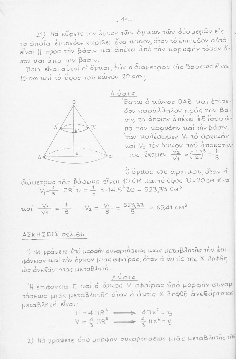 Σχολικό εγχειρίδιο Γεωμετρίας για τις Γ΄, Δ΄, Ε΄, ΣΤ΄ Γυμνασίου που περιλαμβάνει θεωρία και ασκήσεις και είναι χωρισμένο σε Επιπεδομετρία και Στερεομετρία. Φέρει το σύμβολο της δικτατορίας.