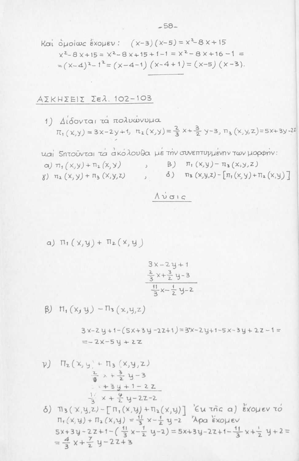 Σχολικό εγχειρίδιο Μαθηματικών Γ΄ Λυκείου που είναι χωρισμένο σε θεωρήματα, παραδείγματα και ασκήσεις και περιλαμβάνει στοιχεία Ανώτερης Άλγεβρας και Μαθηματικής Ανάλυσης.