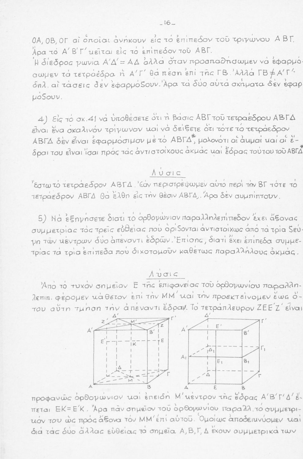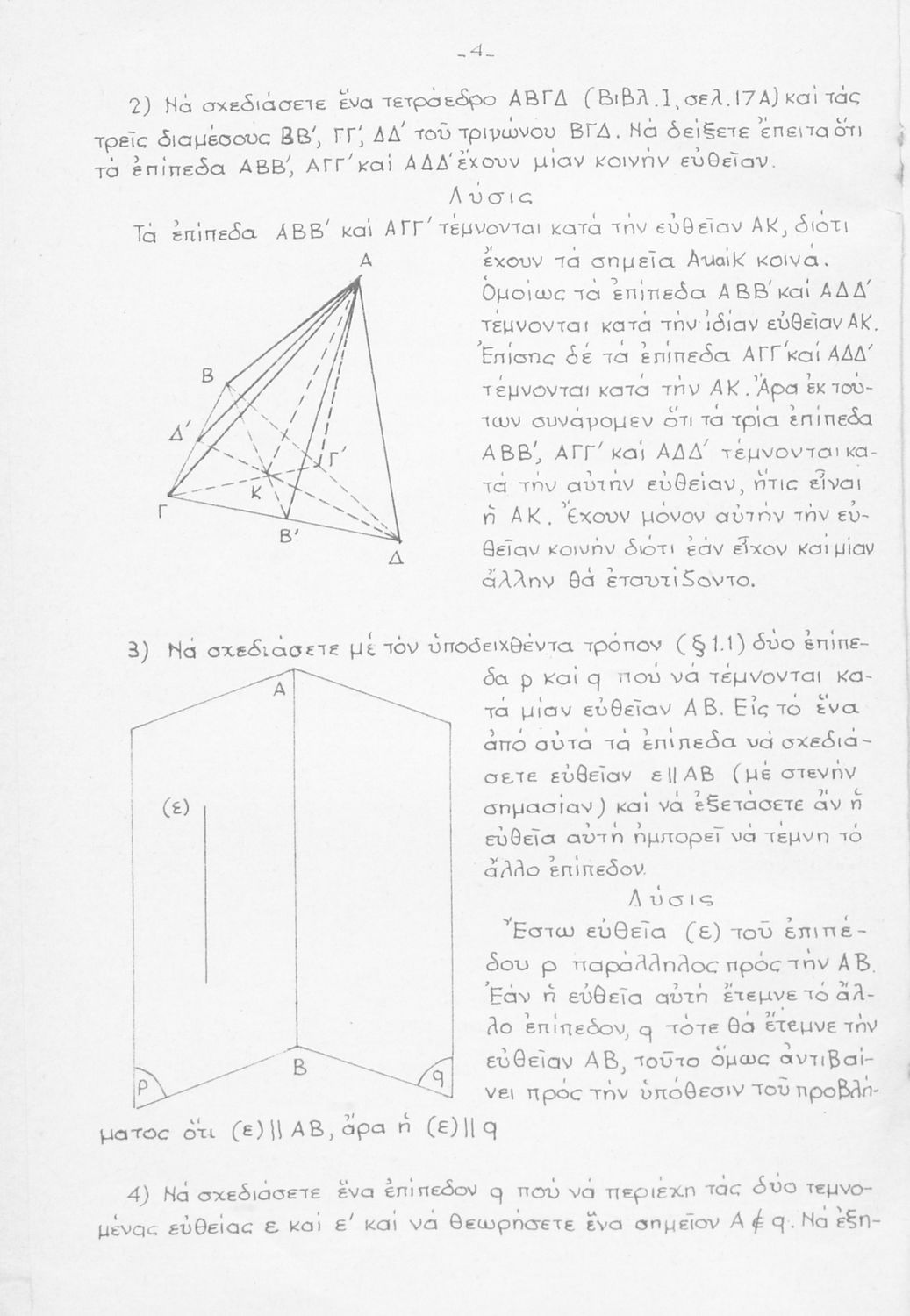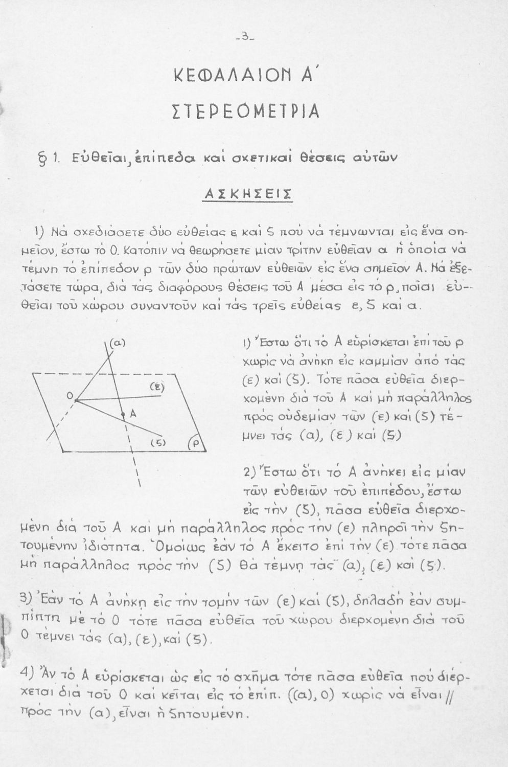 Σχολικό εγχειρίδιο Γεωμετρίας για τις Γ΄, Δ΄, Ε΄, ΣΤ΄ Γυμνασίου που περιλαμβάνει θεωρία και ασκήσεις και είναι χωρισμένο σε Επιπεδομετρία και Στερεομετρία.