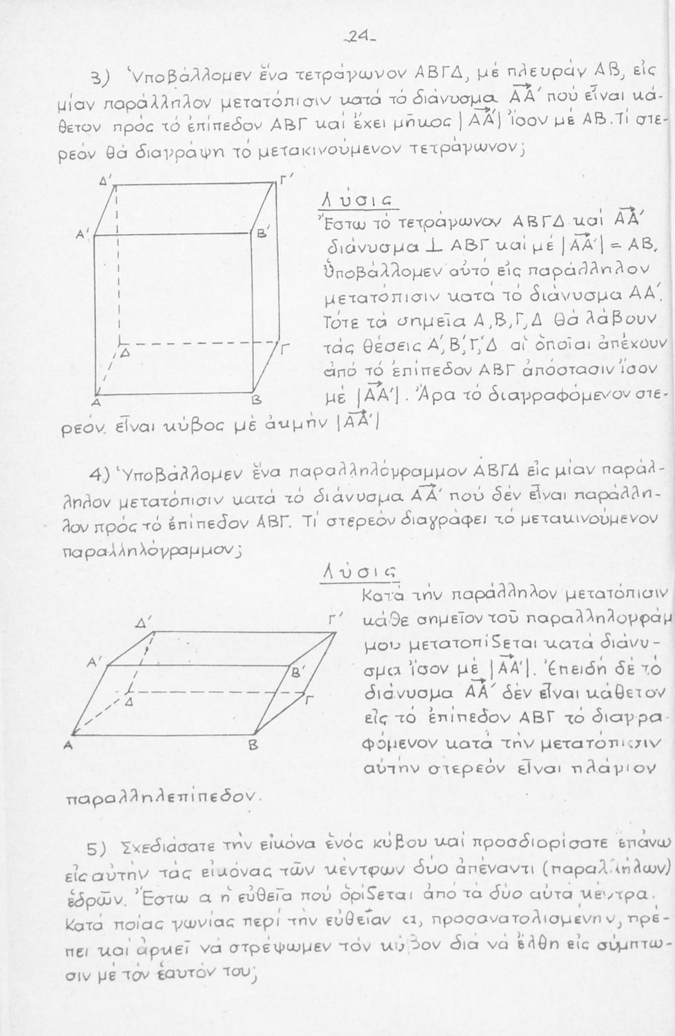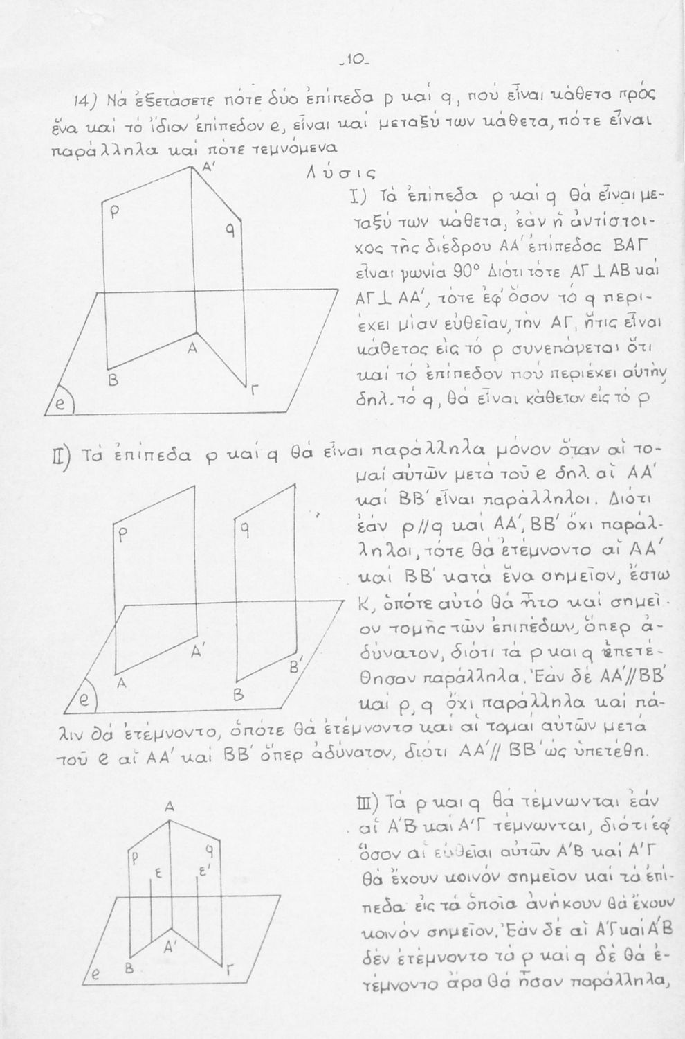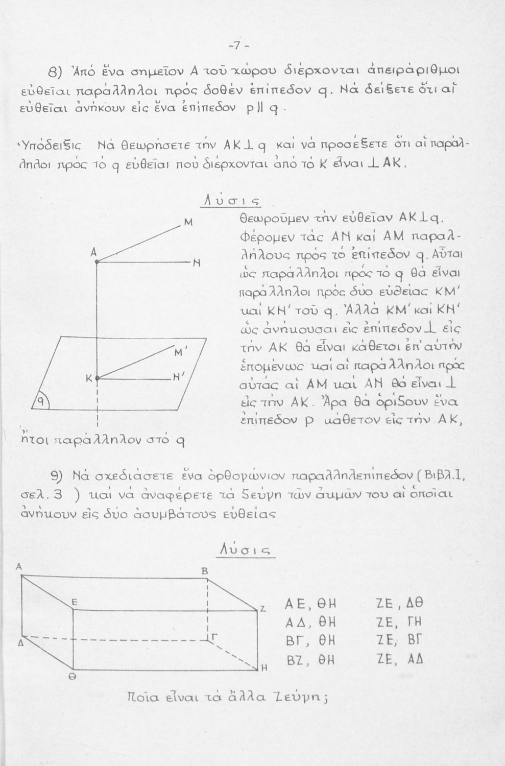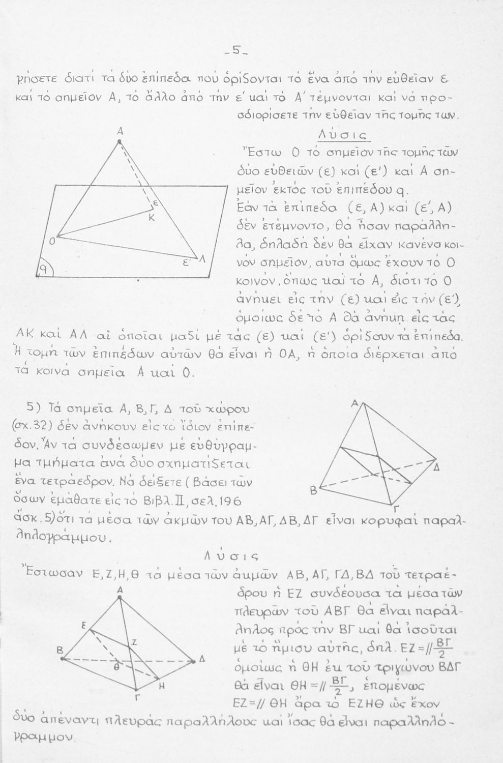 Σχολικό εγχειρίδιο Γεωμετρίας για τις Γ΄, Δ΄, Ε΄, ΣΤ΄ Γυμνασίου που περιλαμβάνει θεωρία και ασκήσεις και είναι χωρισμένο σε Επιπεδομετρία και Στερεομετρία.