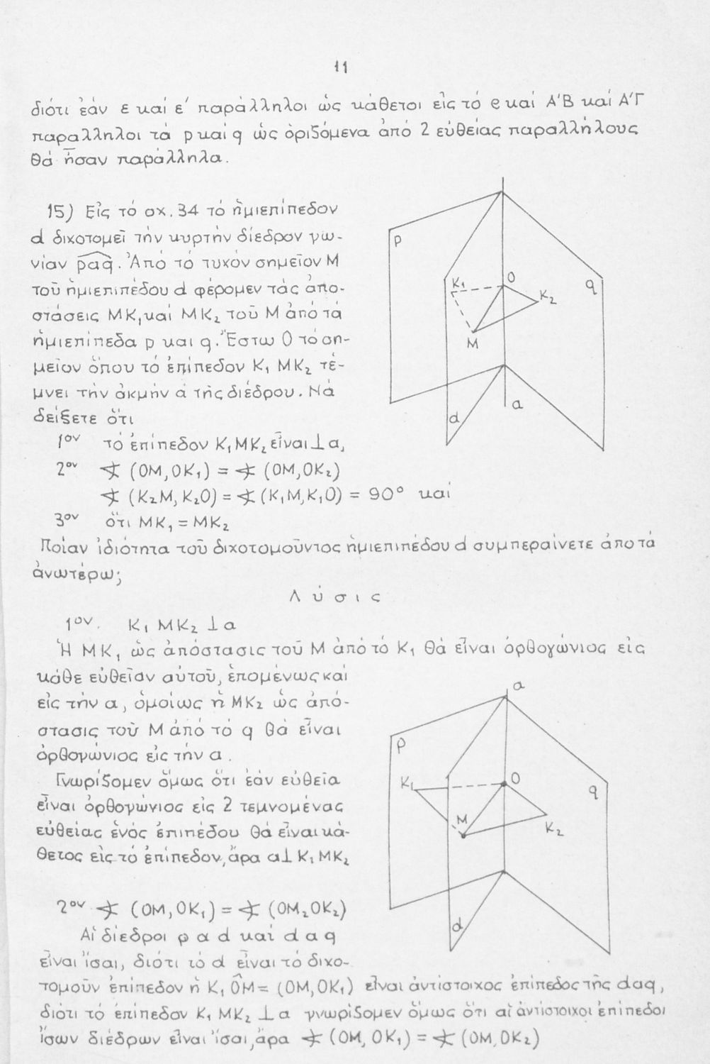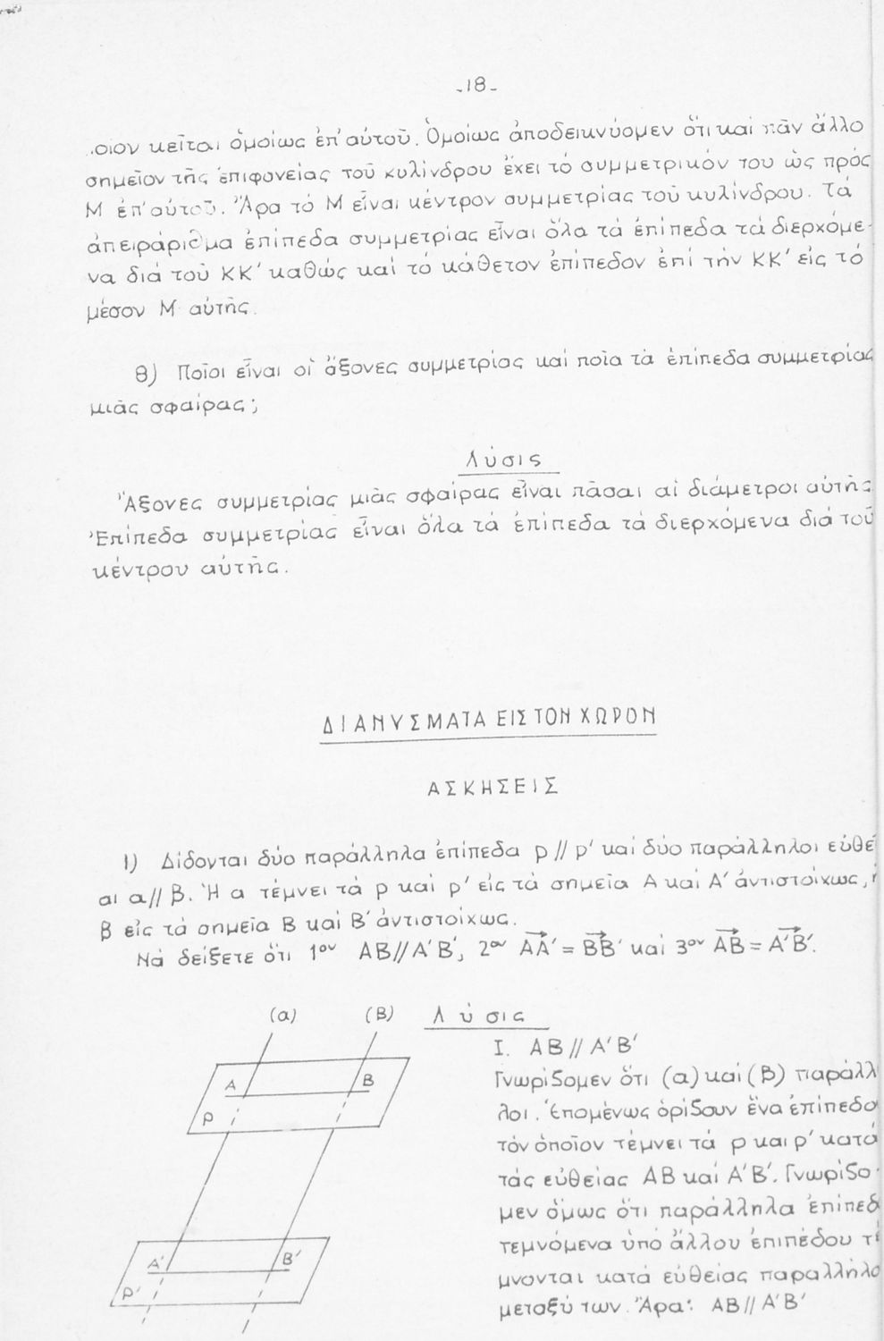 Σχολικό εγχειρίδιο Γεωμετρίας για τις Α΄, Β΄ και Γ΄ Λυκείου που περιλαμβάνει θεωρία και ασκήσεις και είναι χωρισμένο σε Επιπεδομετρία και Στερεομετρία.