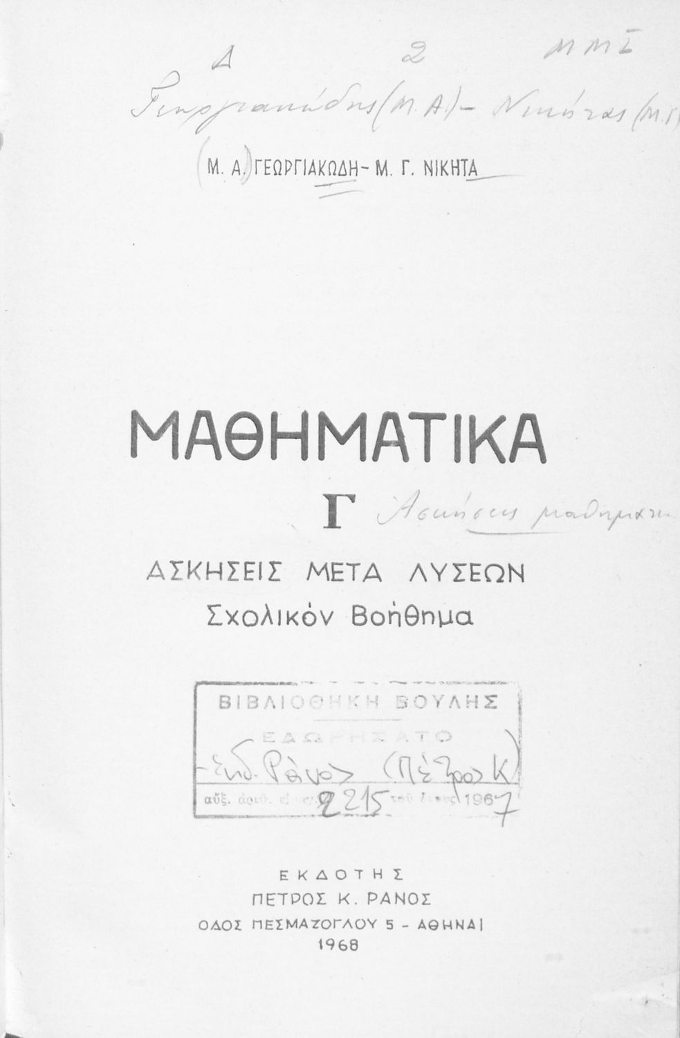 Συγγραφέας: Μ. Α. Γεωργιακώδης, Μ. Γ. Νικήτας
