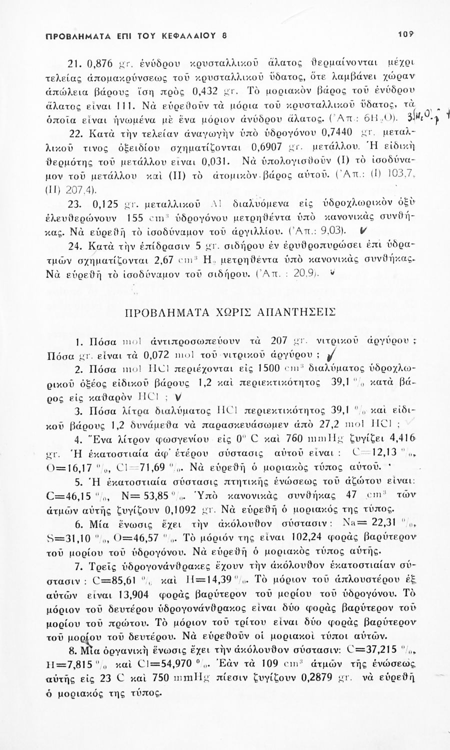 Μαθητικό βοήθημα για τους υποψηφίους των εισαγωγικών εξετάσεων των Ανωτάτων Σχολών και των μαθητών των ανωτέρων τάξεων των Σχολείων Μέσης Εκπαιδεύσεως. Το βιβλίο περιέχει λύσεις ασκήσεων ανόργανης και ...