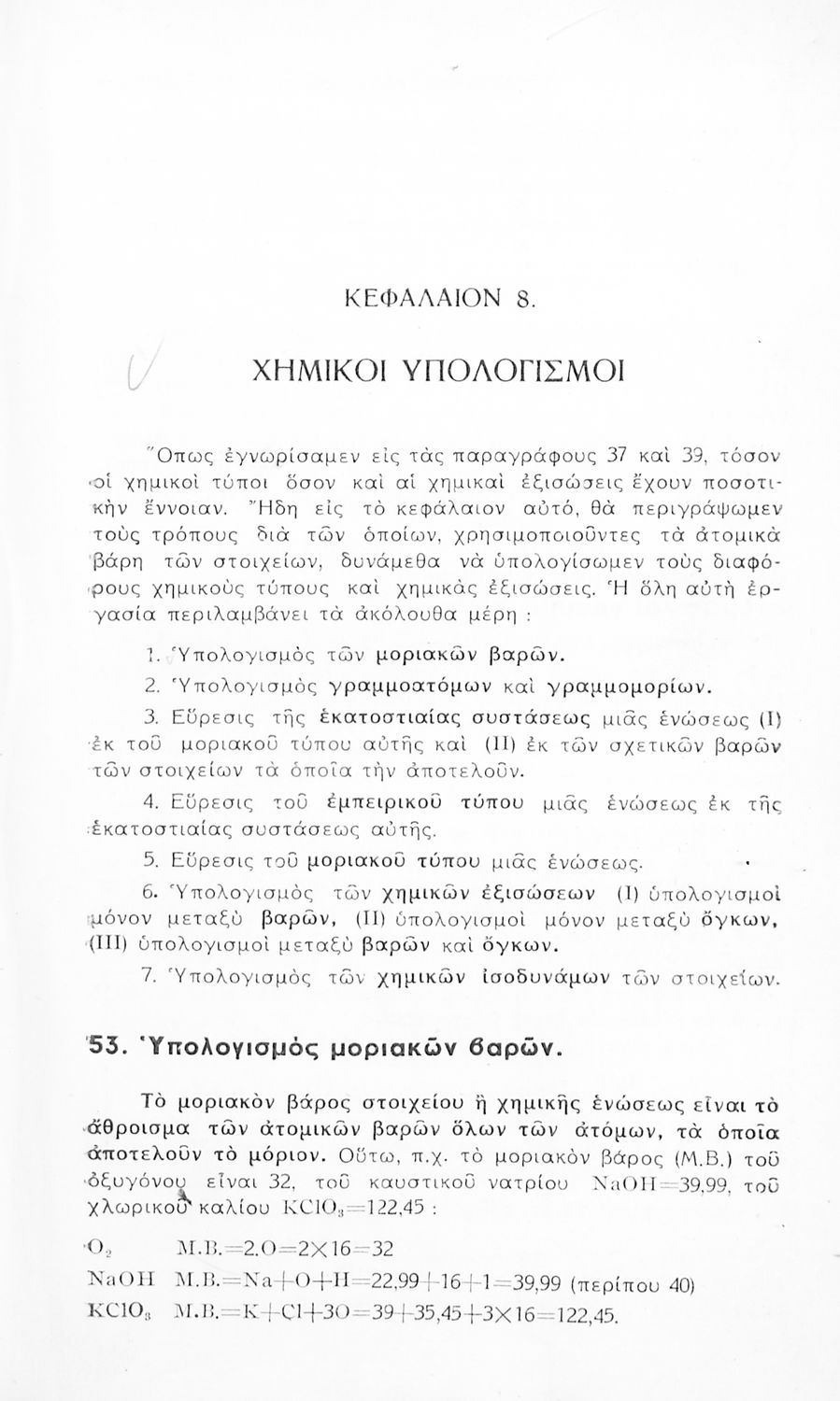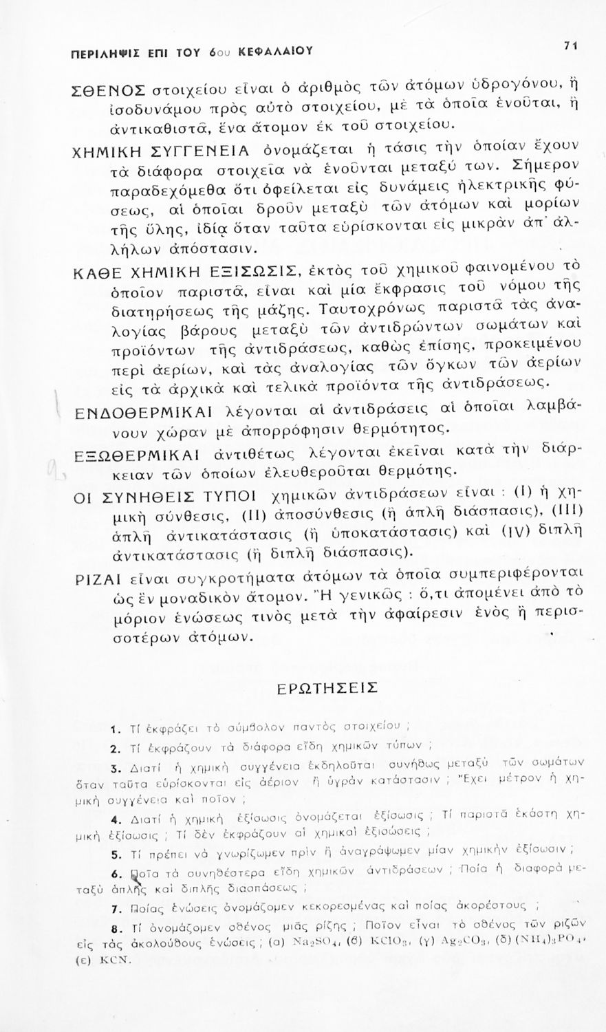 Μαθητικό βοήθημα Χημείας για τους υποψήφιους των Ανωτάτων Σχολών και των Γυμνασίων που αποτελεί μια γενική επισκόπηση της Χημείας, εστιάζει στις έννοιες της ύλης και της ενέργειας, και των χημικών στοιχείων και ενώσεων και εξετάζει τους νόμους της ατομικής και μοριακής θεωρίας.