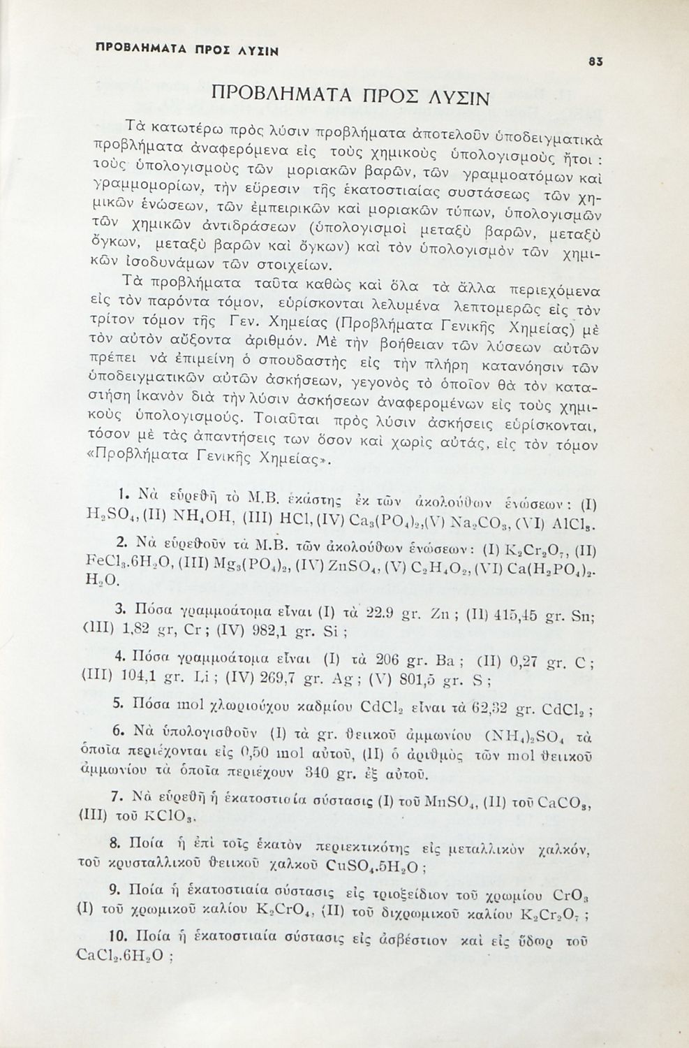 Μαθητικό βοήθημα για τους υποψηφίους των εισαγωγικών εξετάσεων των Ανωτάτων Σχολών και των μαθητών των ανωτέρων τάξεων των Σχολείων Μέσης Εκπαιδεύσεως. Το βιβλίο περιέχει λύσεις ασκήσεων ανόργανης και ...