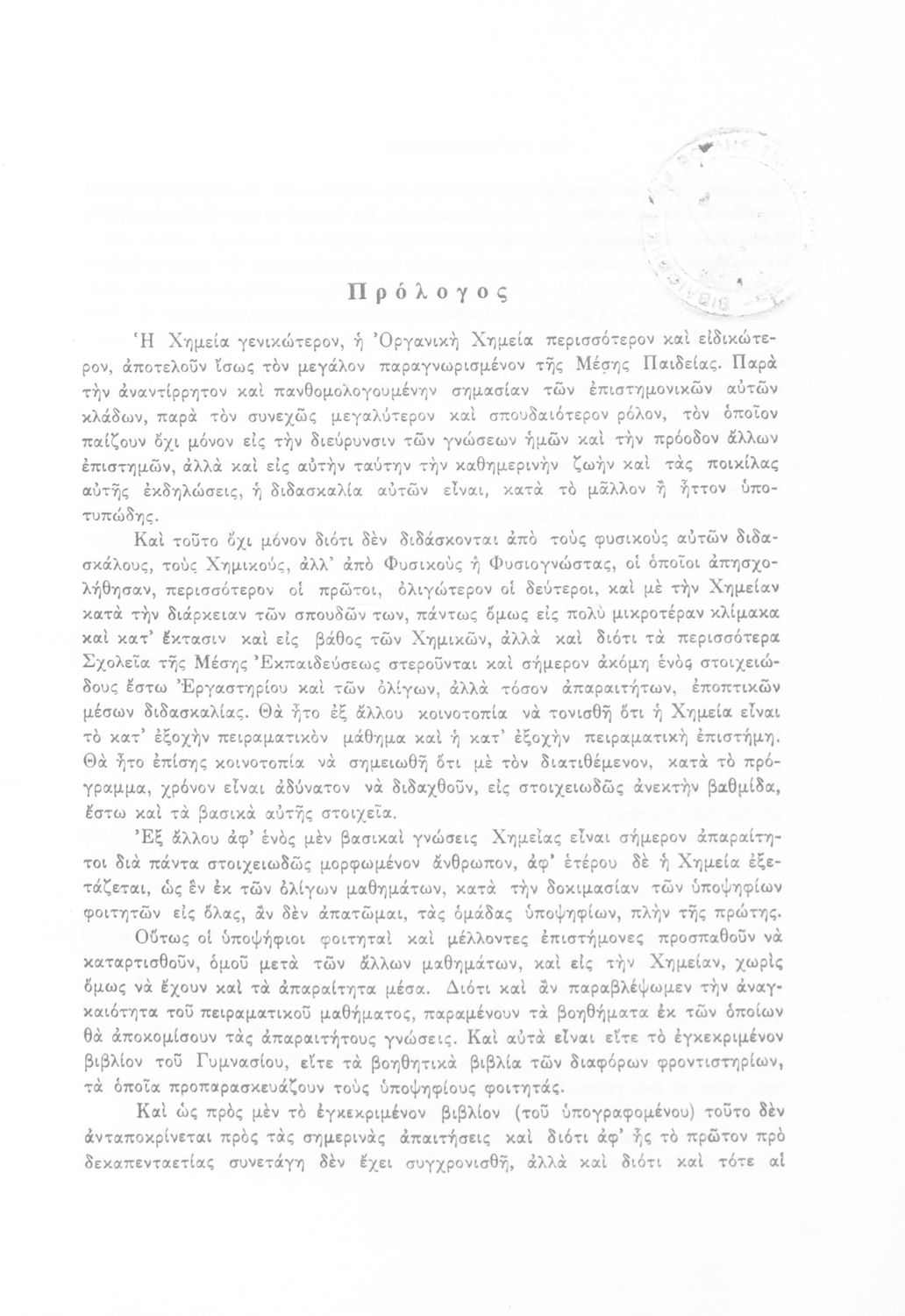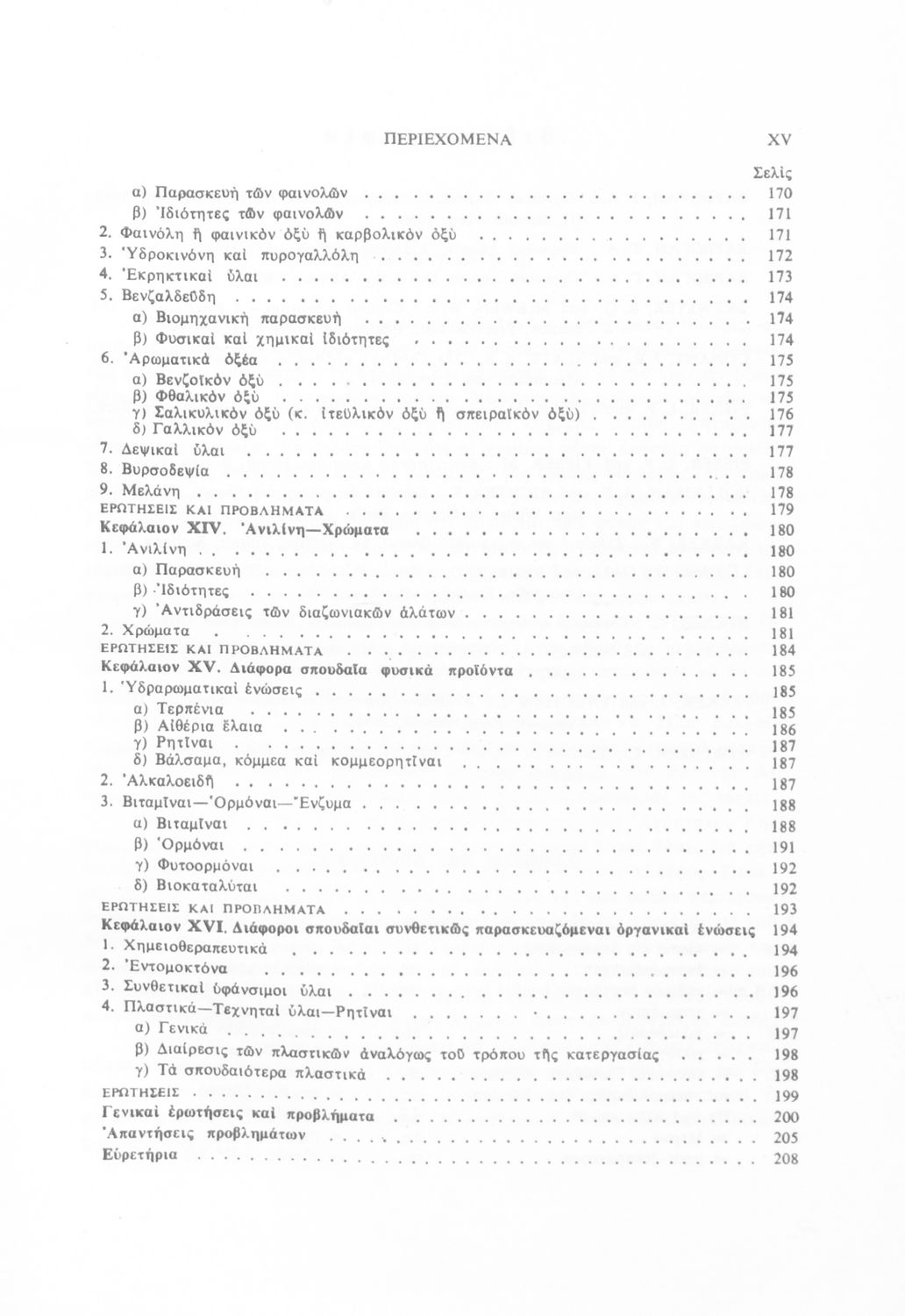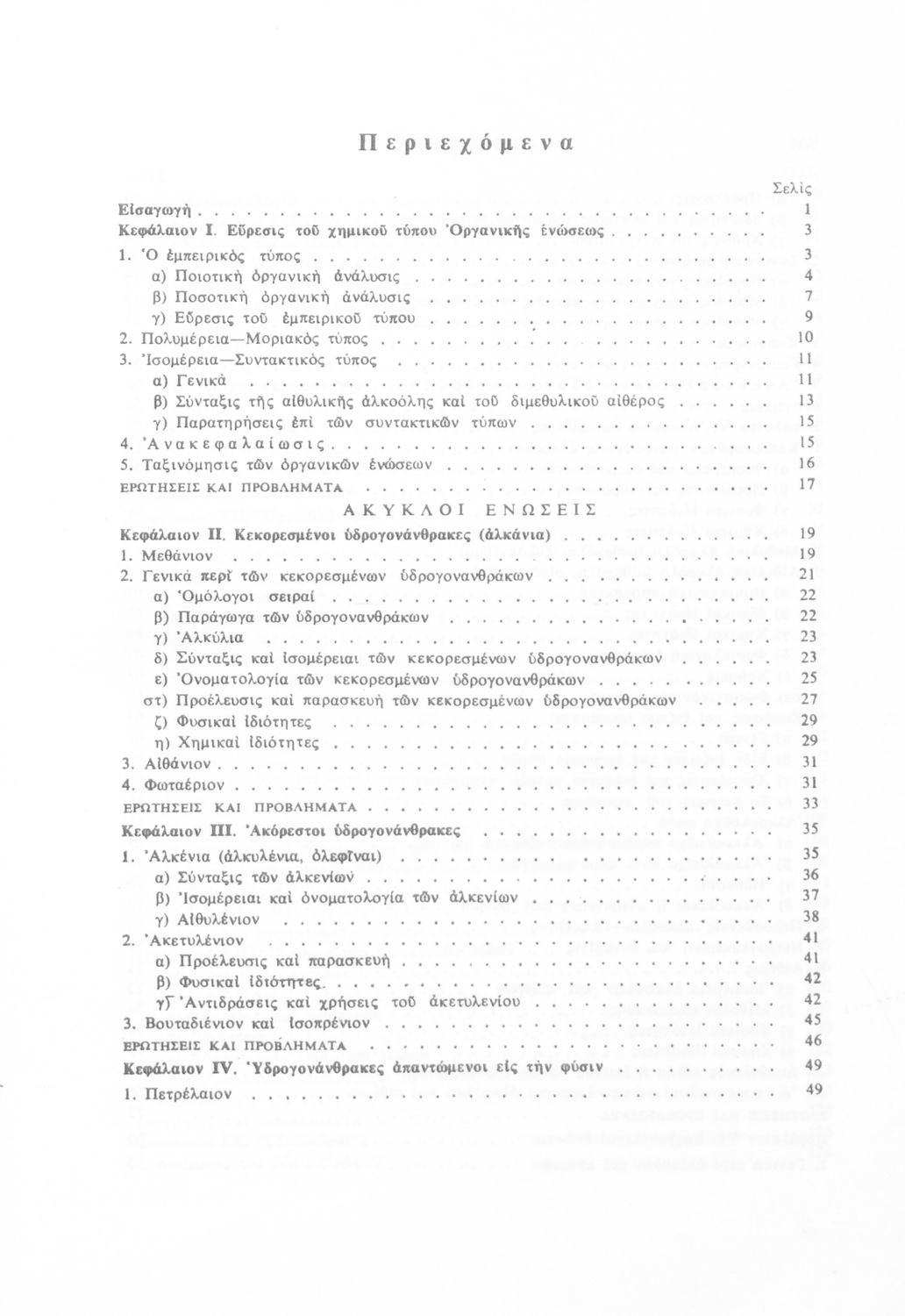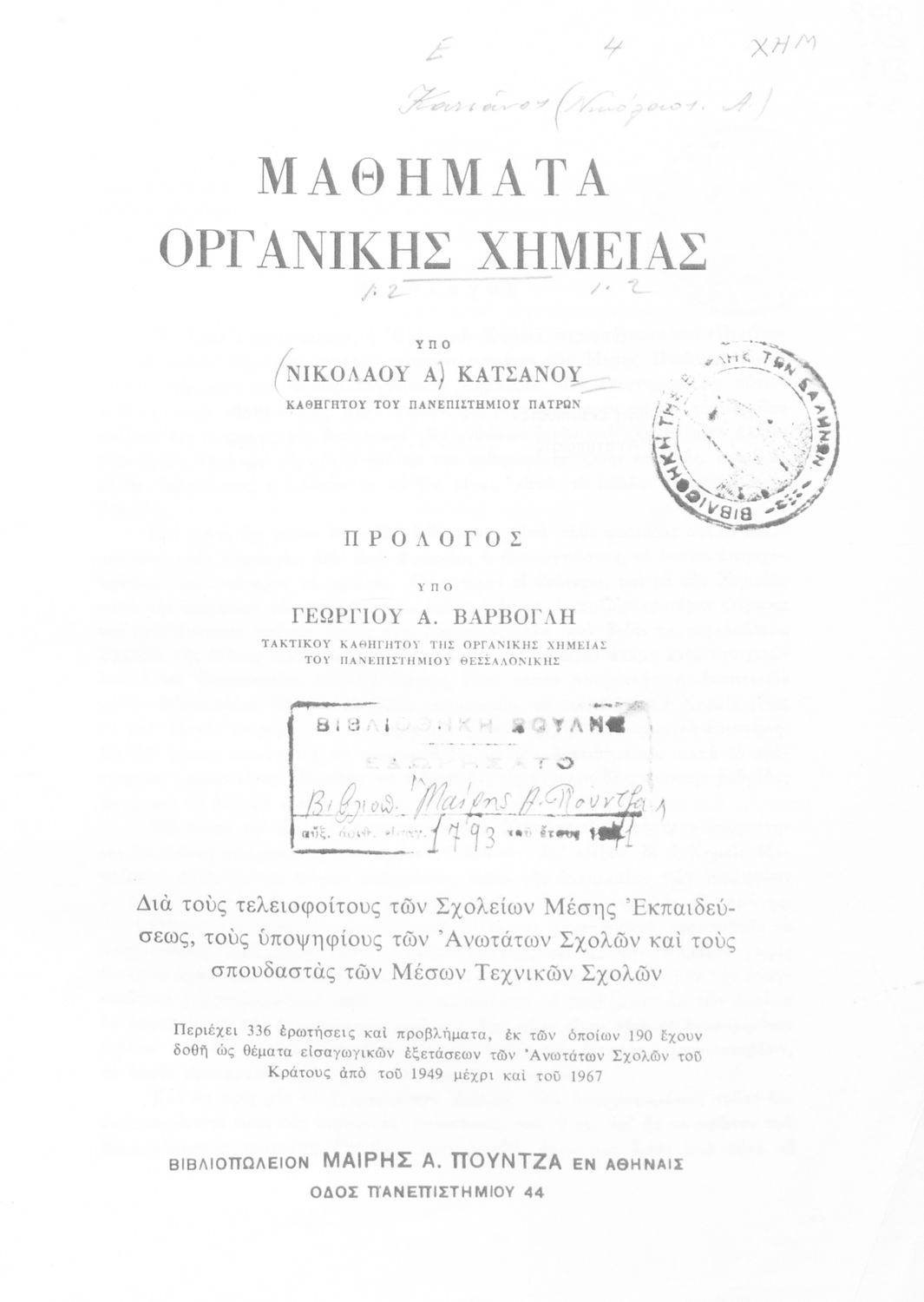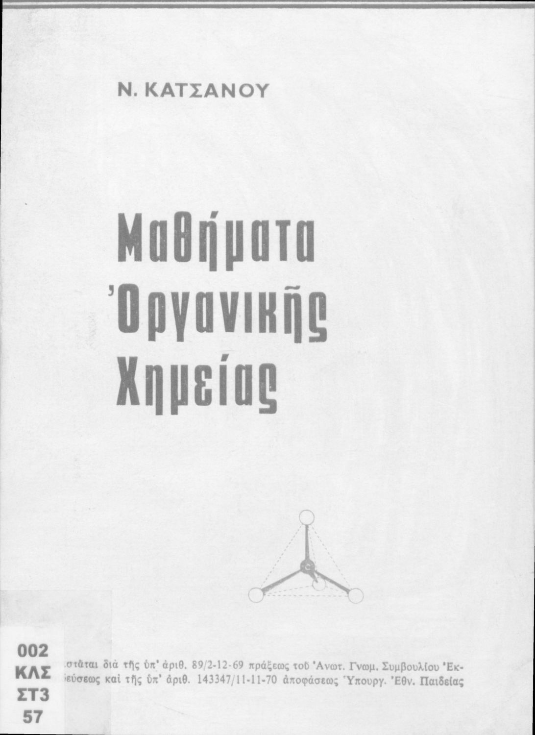 Μαθητικό βοήθημα Χημείας για τους τελειόφοιτους σχολείων μέσης εκπαίδευσης, υποψήφιους ανωτάτων σχολών και σπουδαστές μέσων τεχνικών σχολών που περιέχει χημικούς τύπους, οργανικές ενώσεις, άκυκλες ενώσεις και κάνει και μια συνοπτική παρουσίαση των στοιχείων οργανικής χημείας.