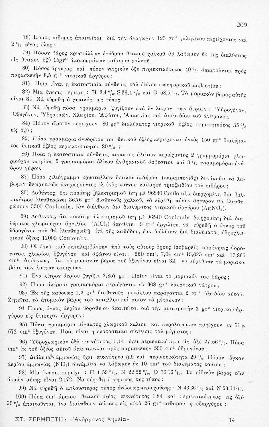 Μαθητικό βοήθημα Χημείας για τους υποψήφιους σπουδαστές των Ανωτάτων Σχολών που περιέχει γενικές έννοιες της χημείας καθώς και ιδιότητες και χαρακτηριστικά των μετάλλων και των αμέταλλων στοιχείων.